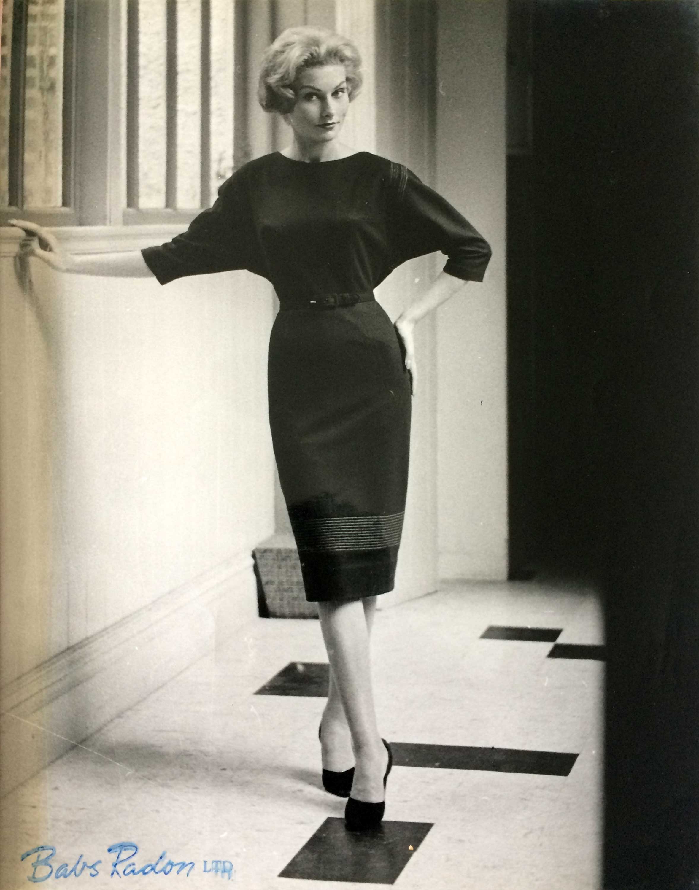 This Babs Radon dress was part of the 1963 winter collection. The deep maygar sleeves were fashionable at the time.