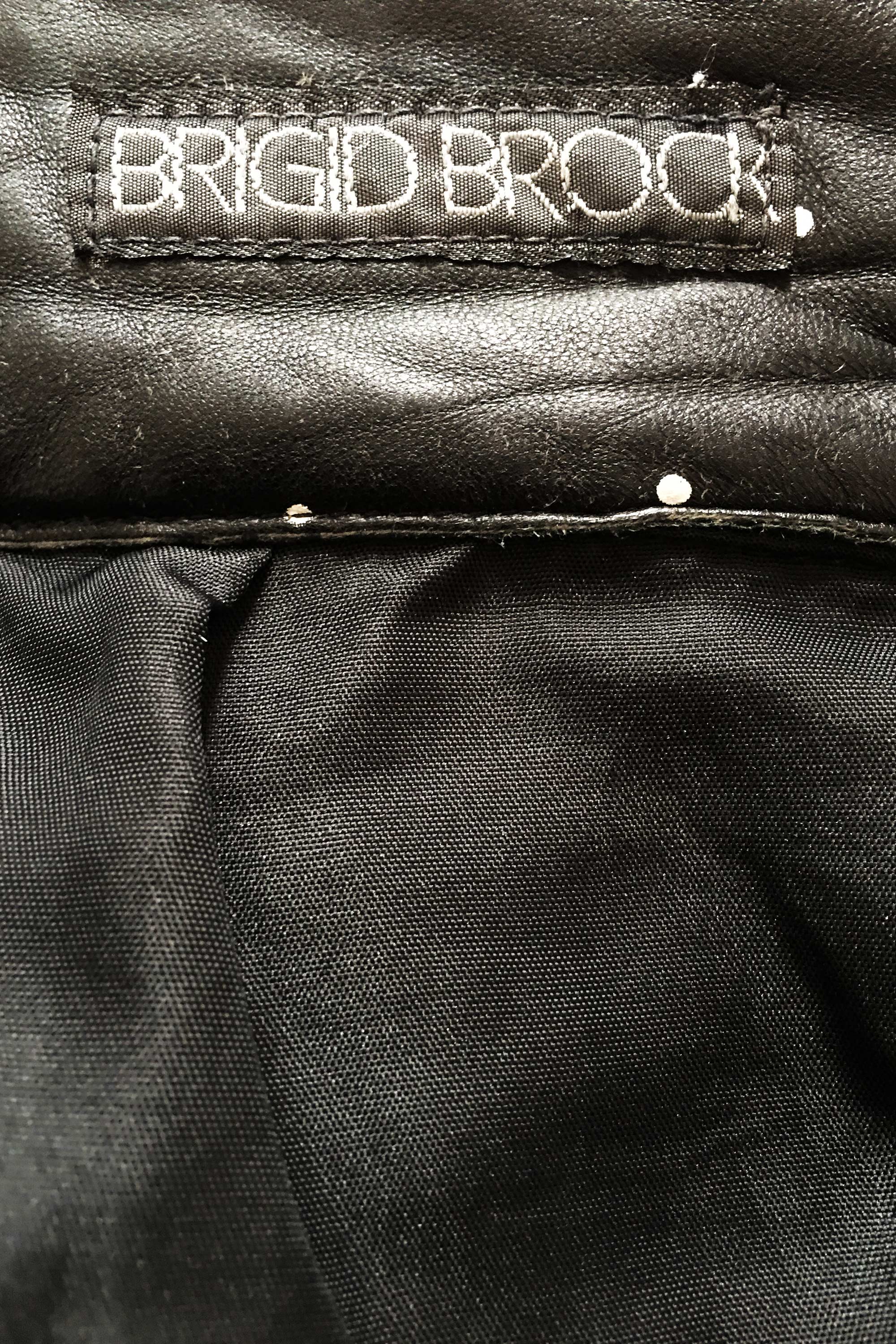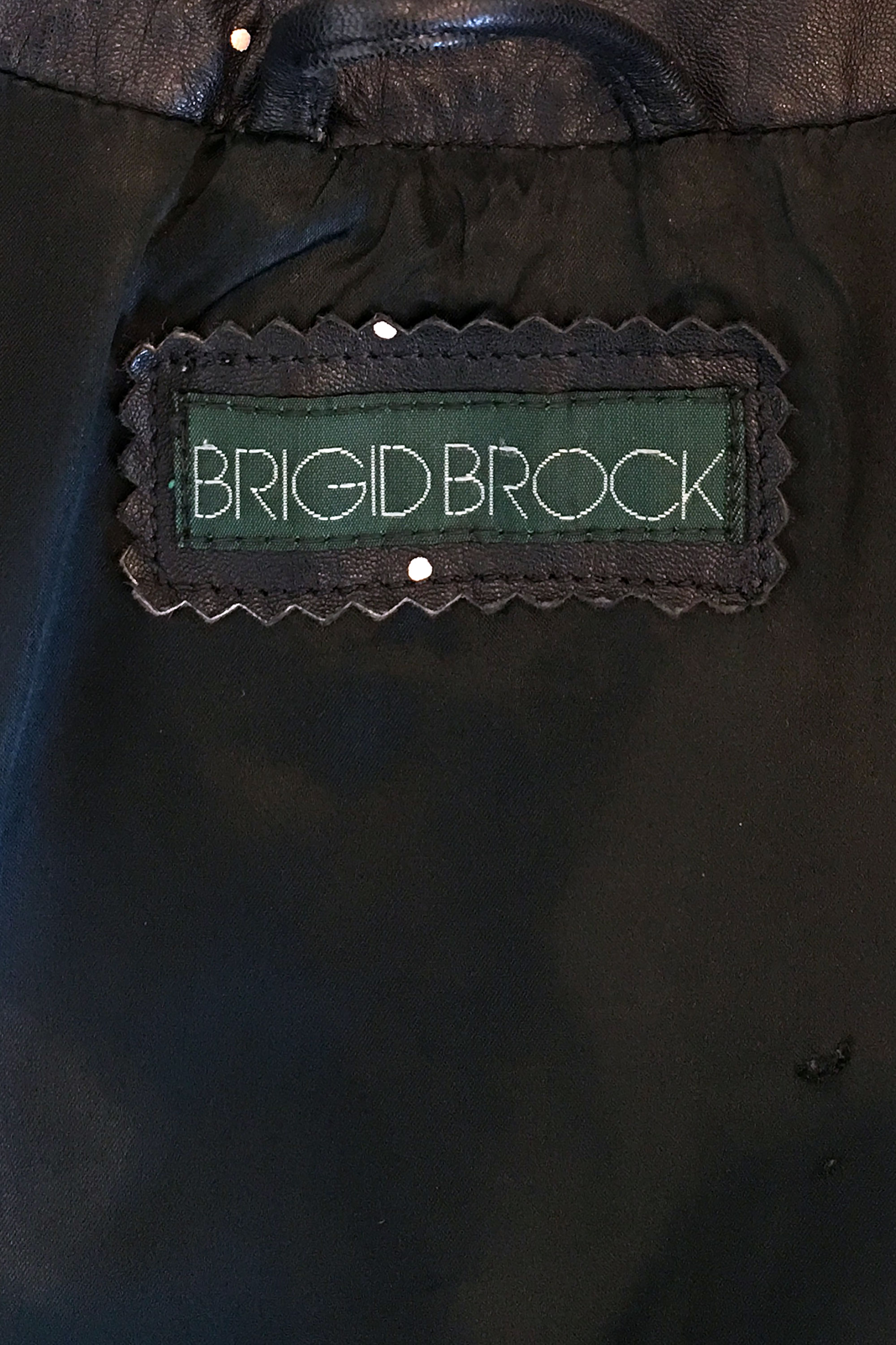 Brigid Brock began designing leatherwear under her own name for Marcol Manufacturing in Christchurch in 1982. Her approach, typified by fitted skirts, broad-shouldered jackets, matador pants, boleros and backless vests, was very modernistic and European. Screen-printed leathers were part of her signature look. Trudi Stewart-Haverkort bought this jacket in Christchurch - the delay due to the purchase caused her family to miss a flight to the United States.