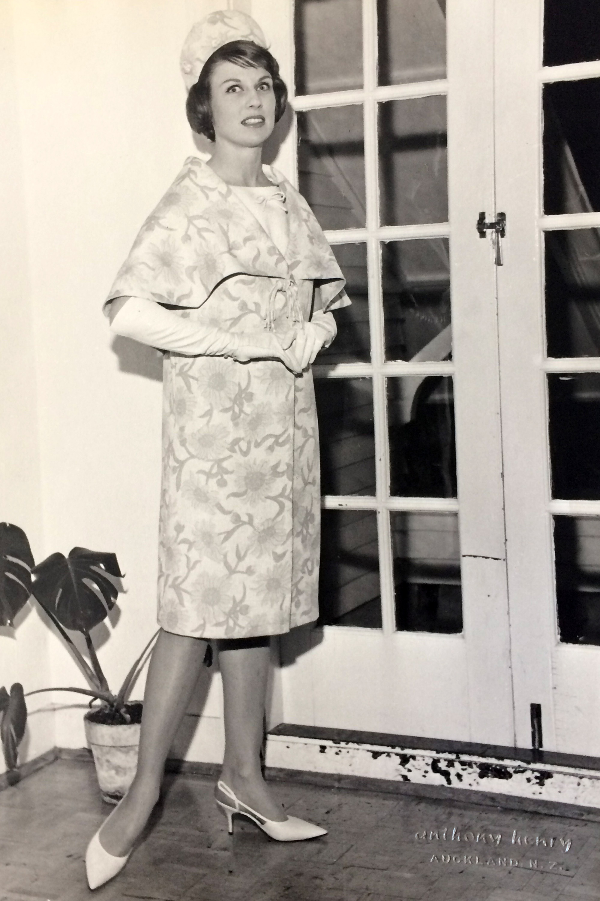 This Babs Radon dress and coat won the Silver Shears award for racewear at the Golden Shears Awards in 1964. It is modelled by Elaine Hammond who was integral in the development of the awards in her role as president of the New Zealand Professional Mannequins Association.