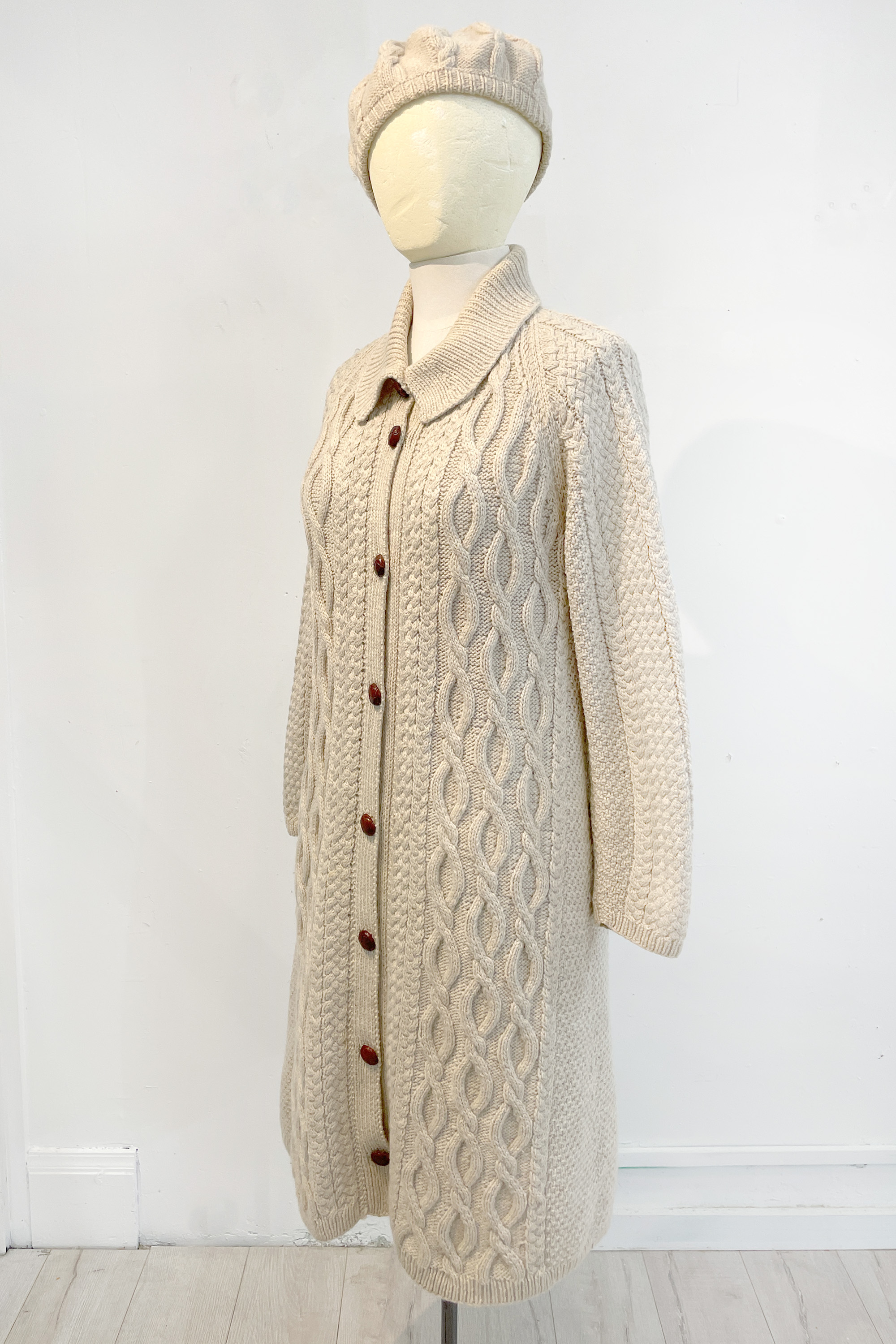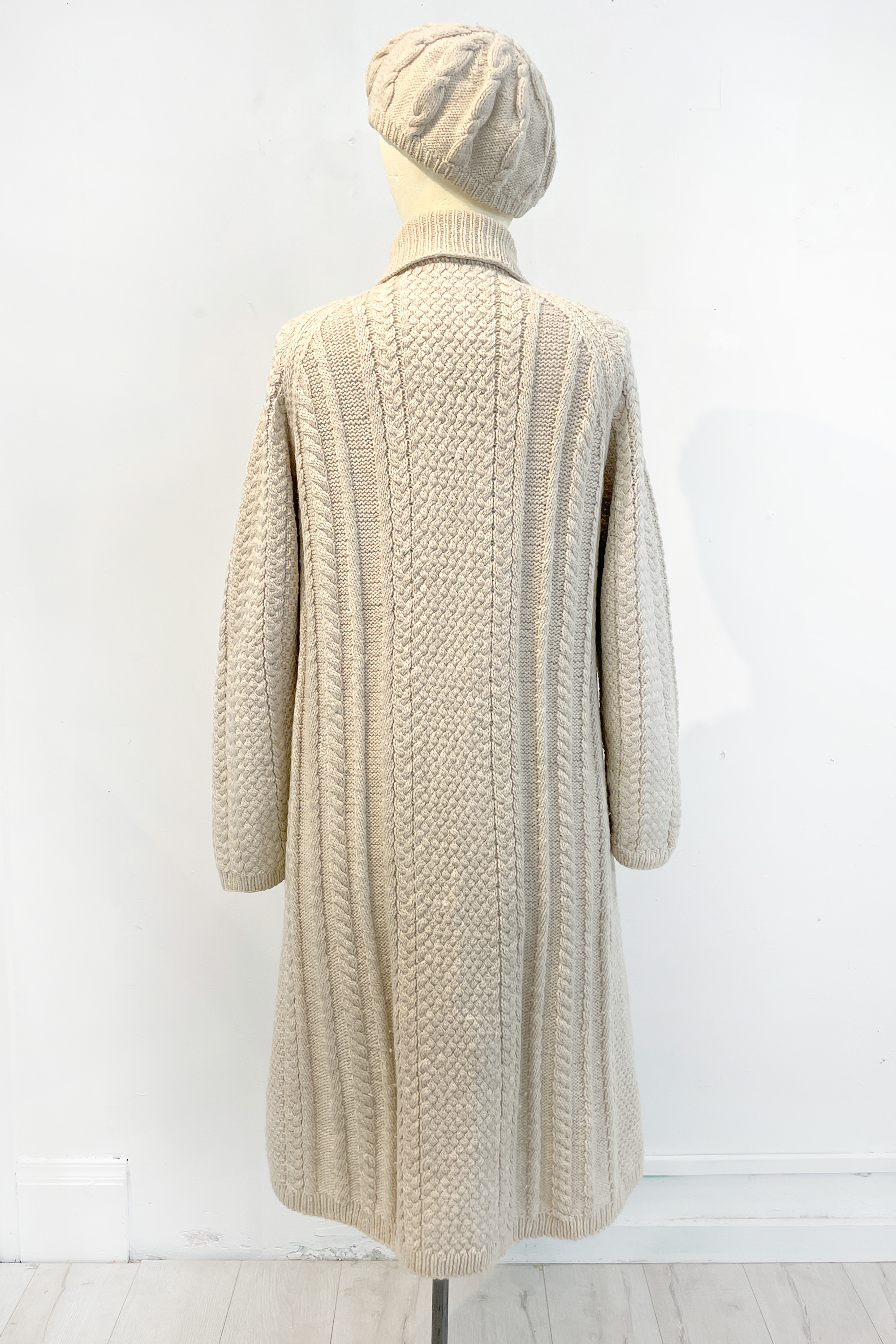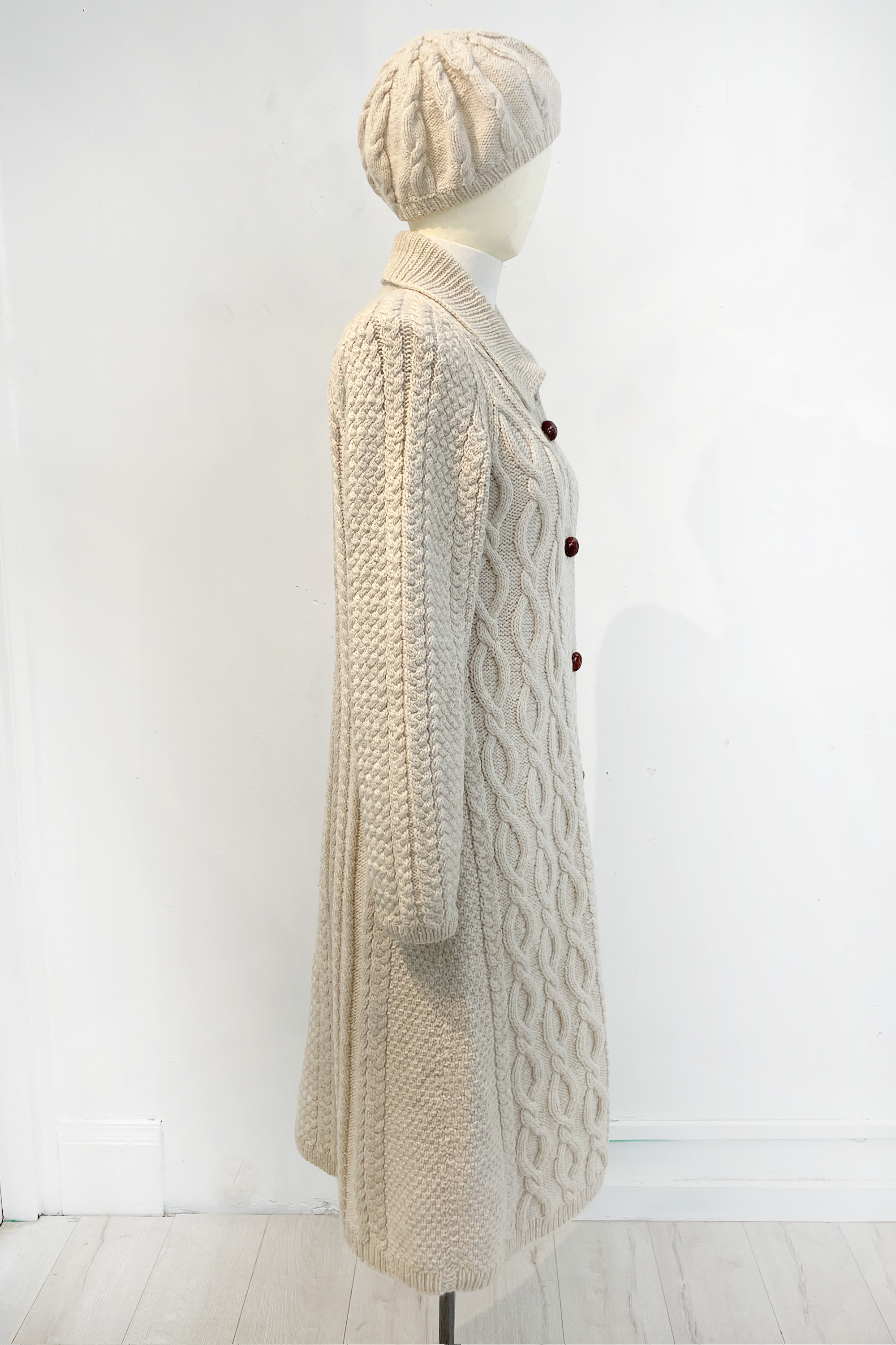 Long cardigan coat and matching hat, 1971