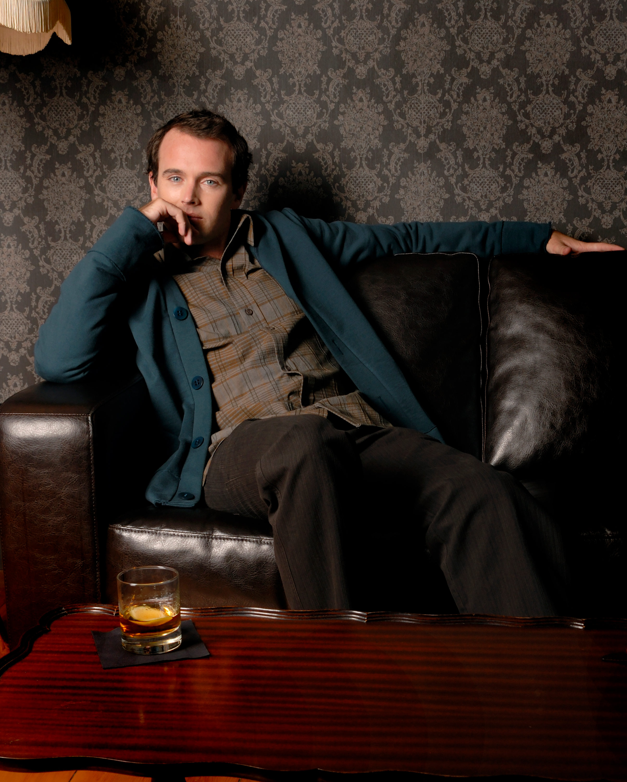 This cardigan, shirt and jeans are from Mandatory's 2009 winter range, 'The spice trader'. They are modelled by Jonny McKenzie who was part owner of a Wellington bar that later became C G R Merchants & Co.