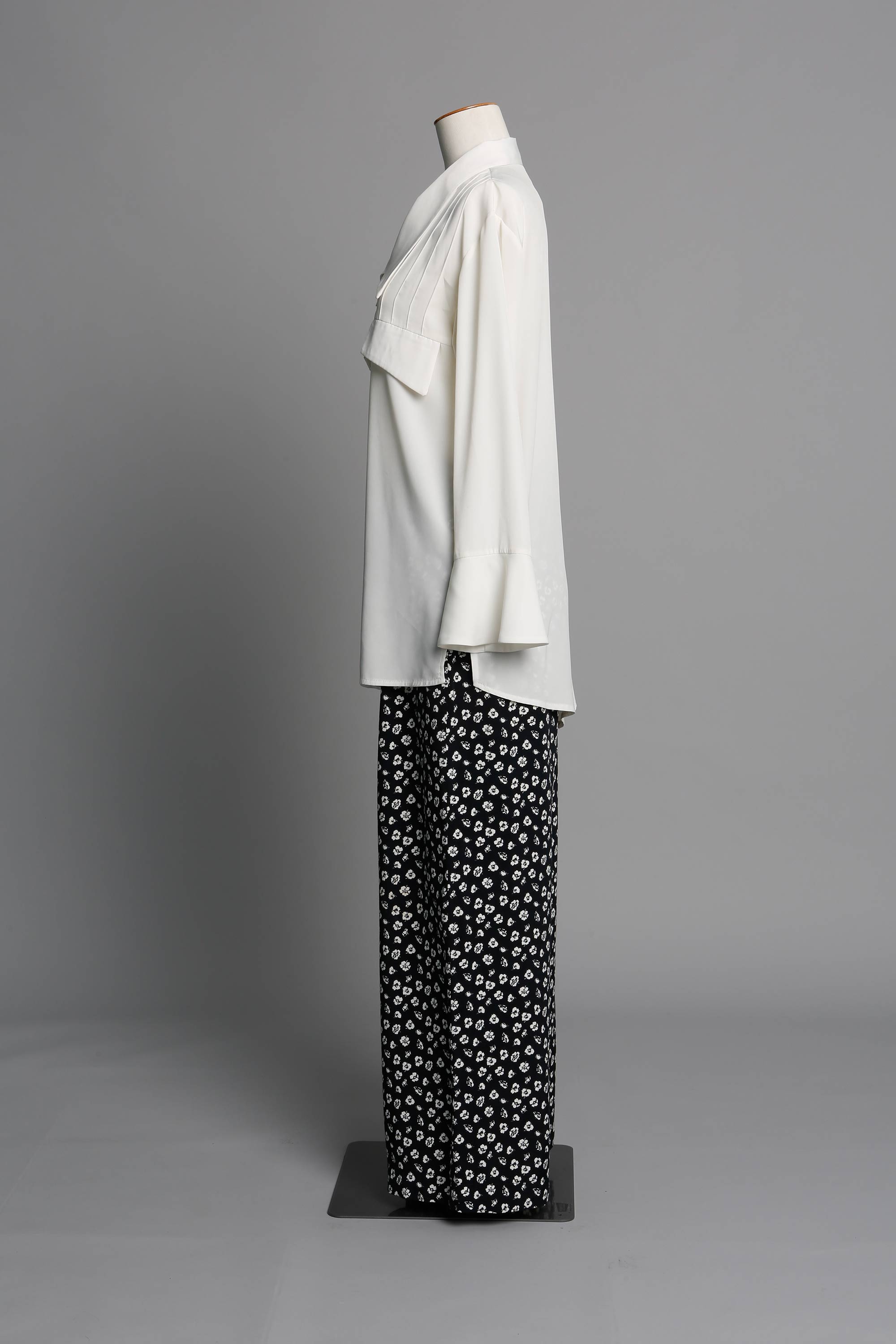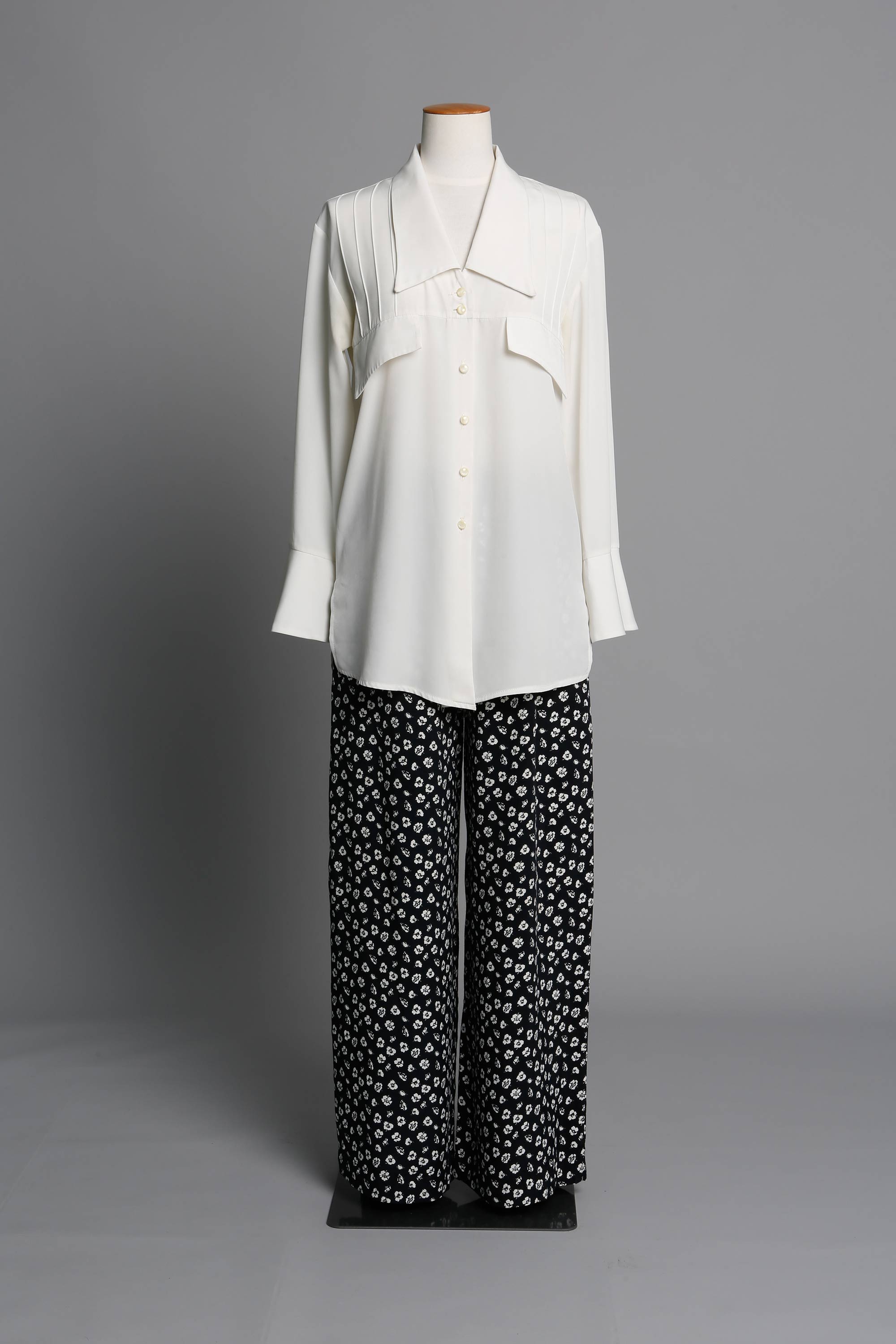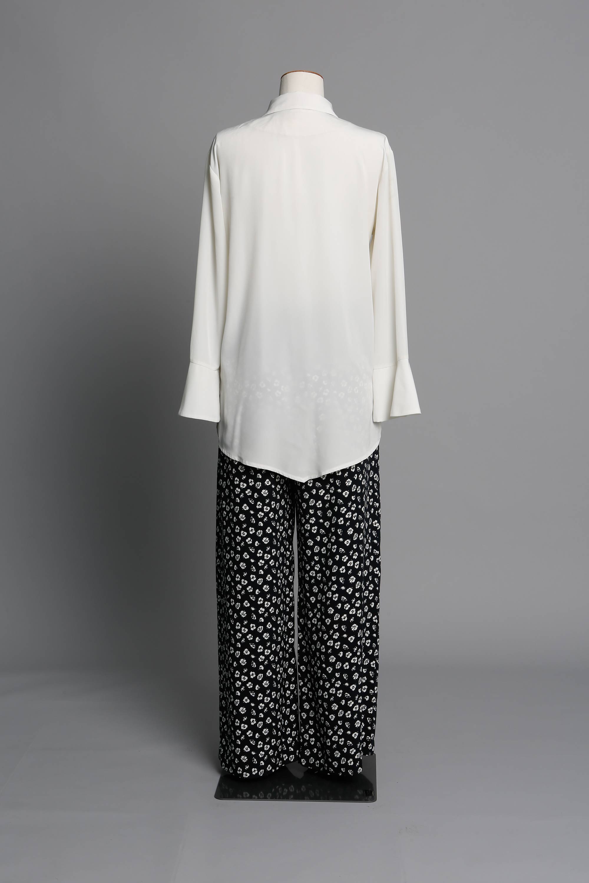 Gilet and trouser set: rayon print; shirt: micro fibre