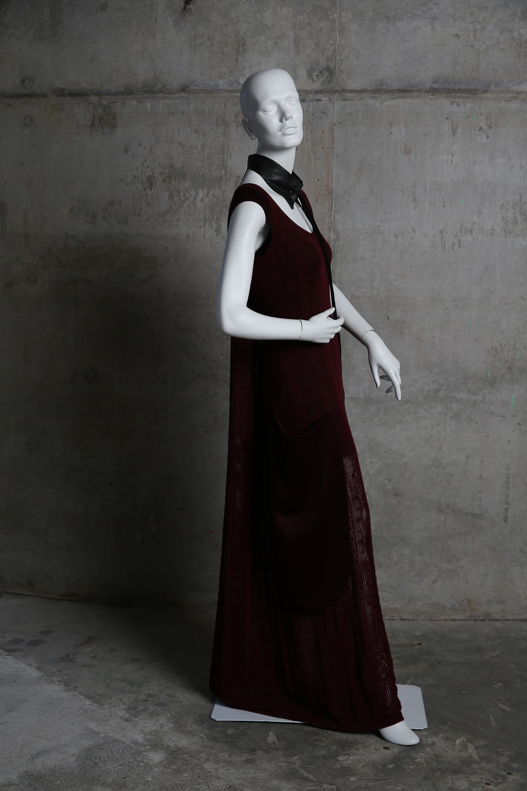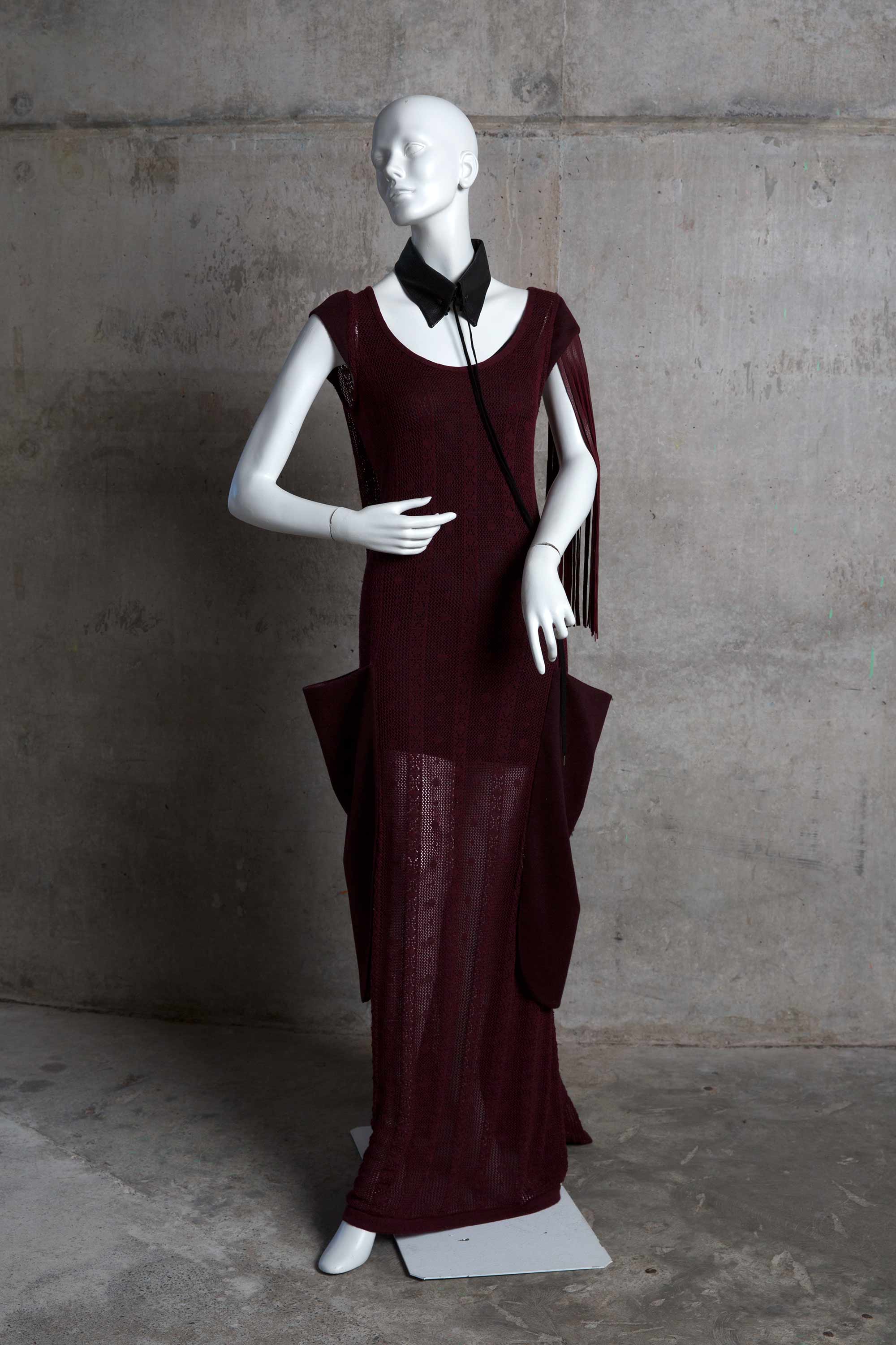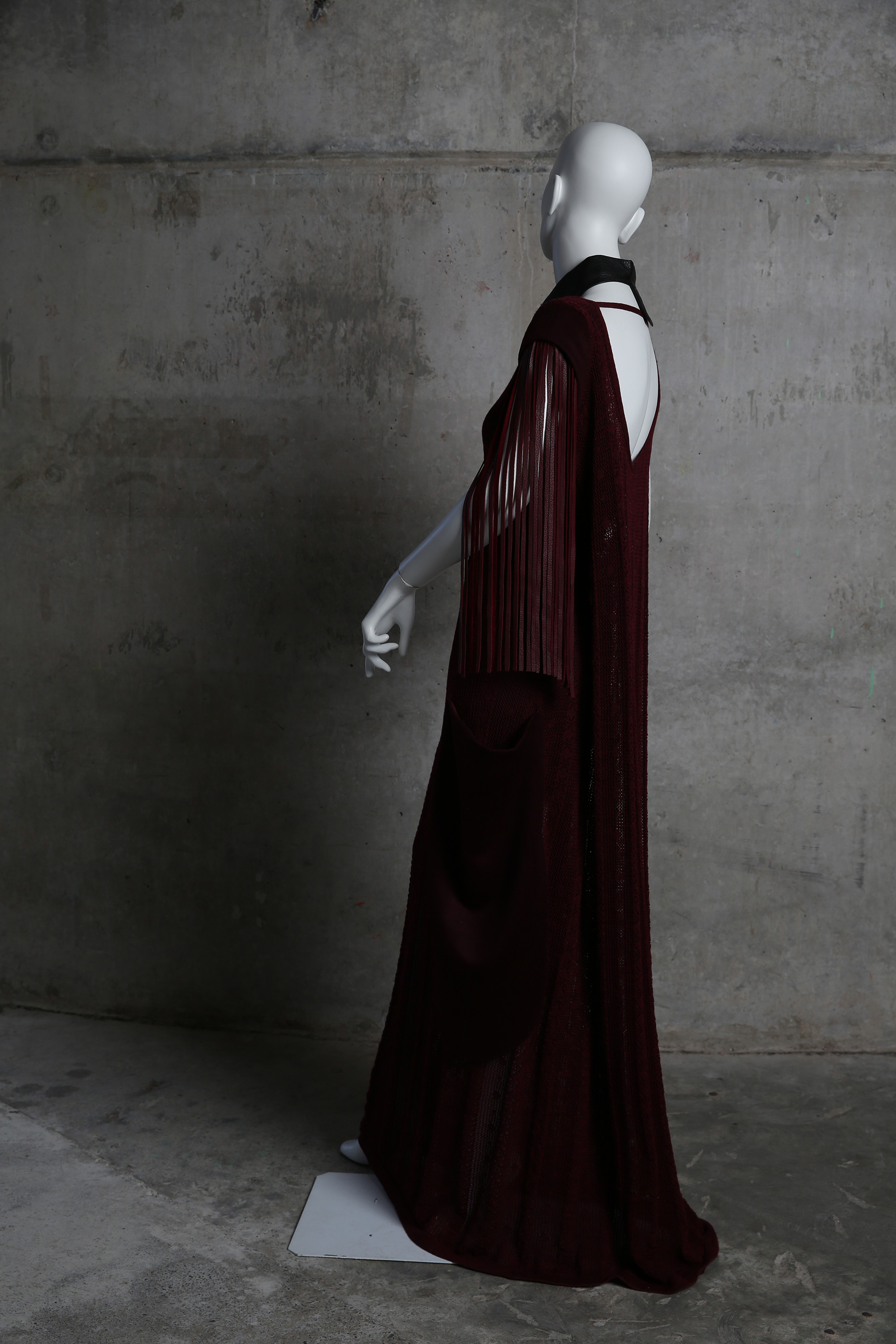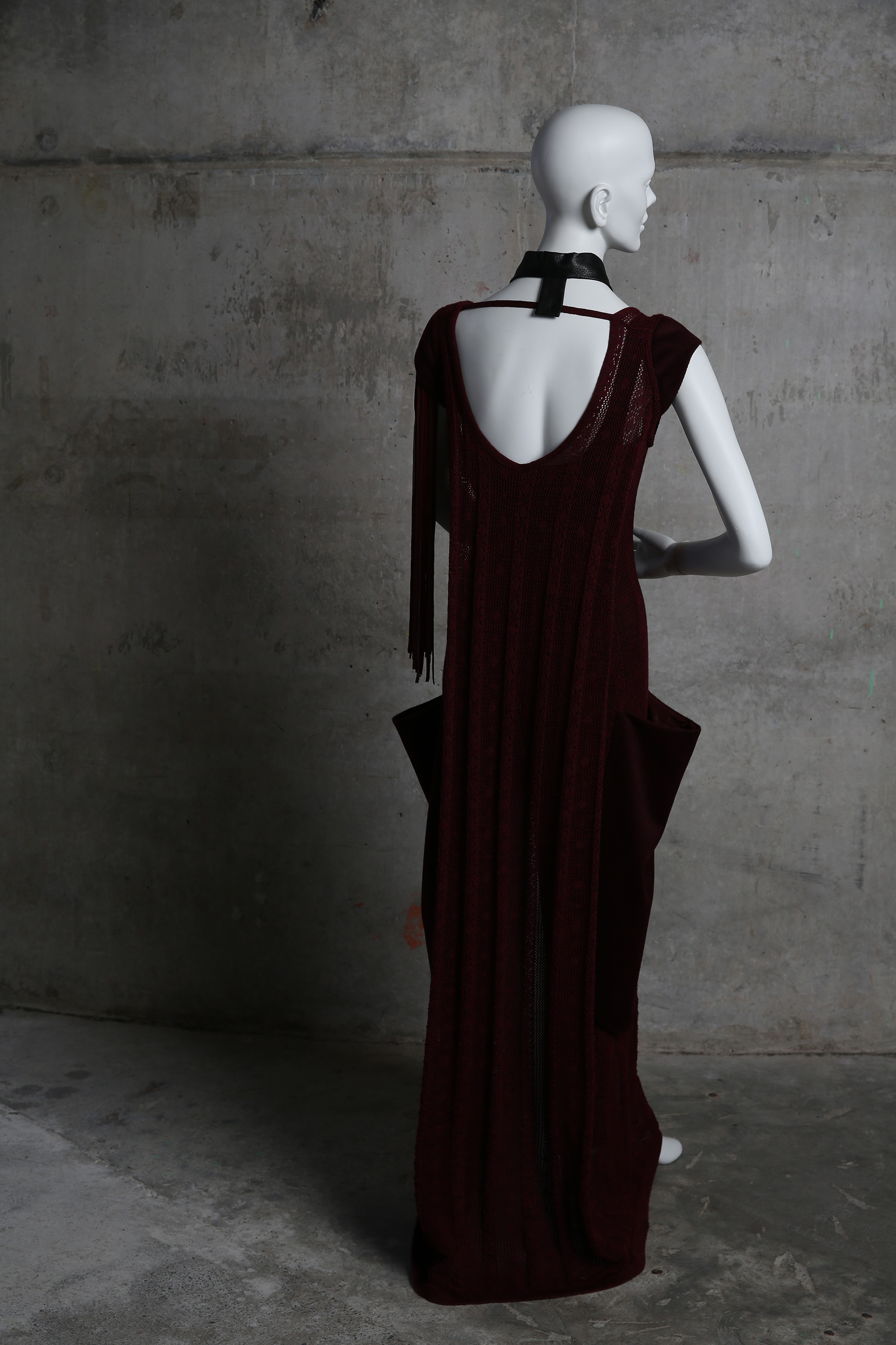 Long knit dress with leather tassle trim