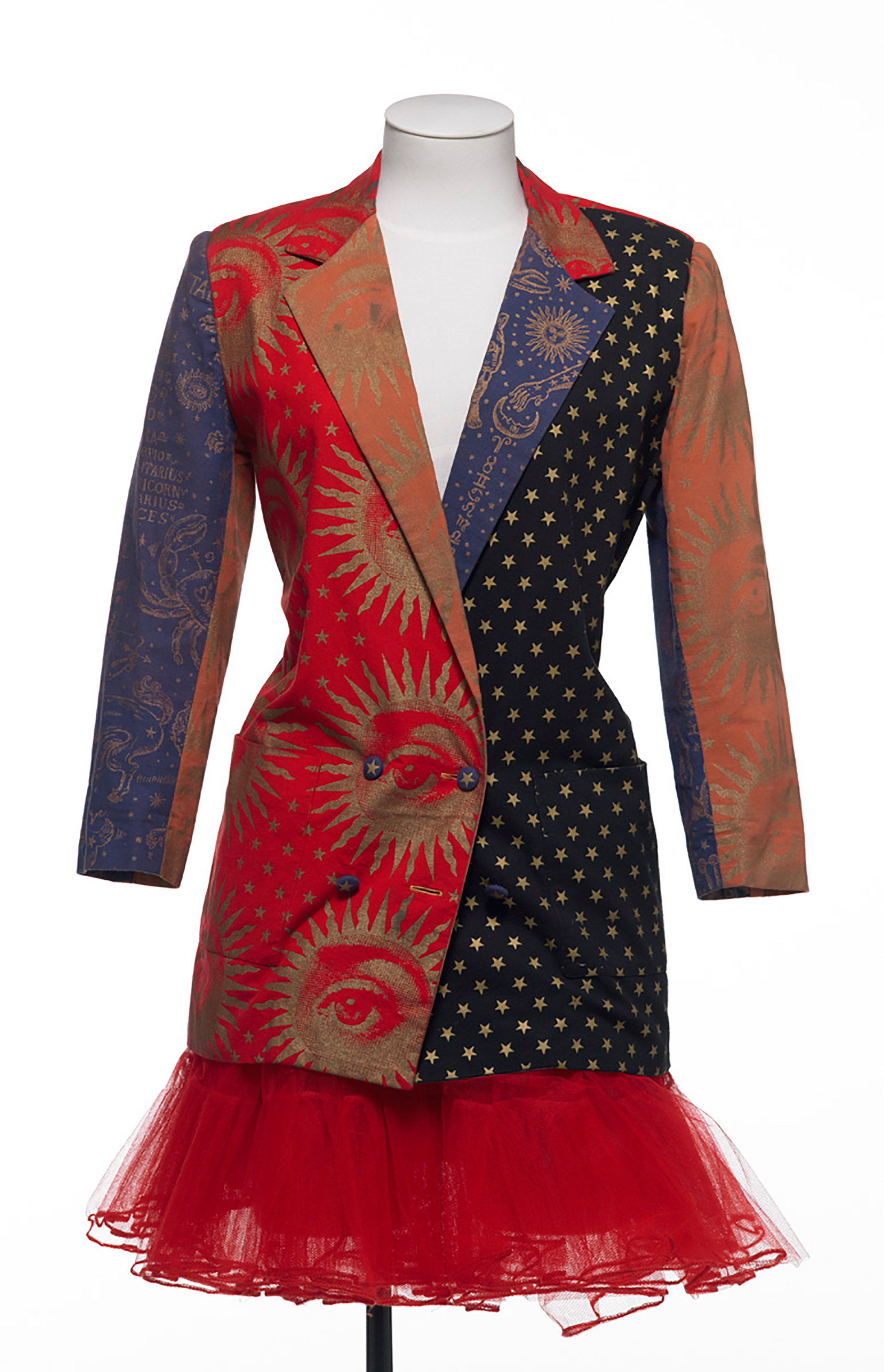 Doris de Pont had the fabric for this jacket screenprinted by Adrienne Foote (Footeprints). In 1994 they established a label together called DNA. Doris made a lot of tutus in the 1980s and variations of these continued to be part of her collections.