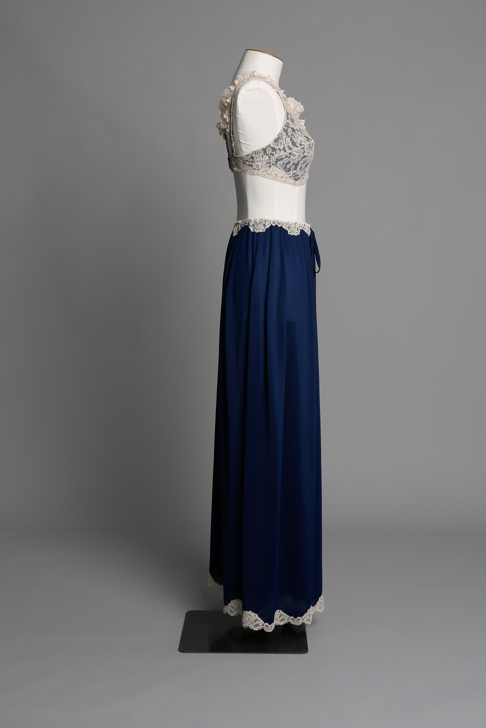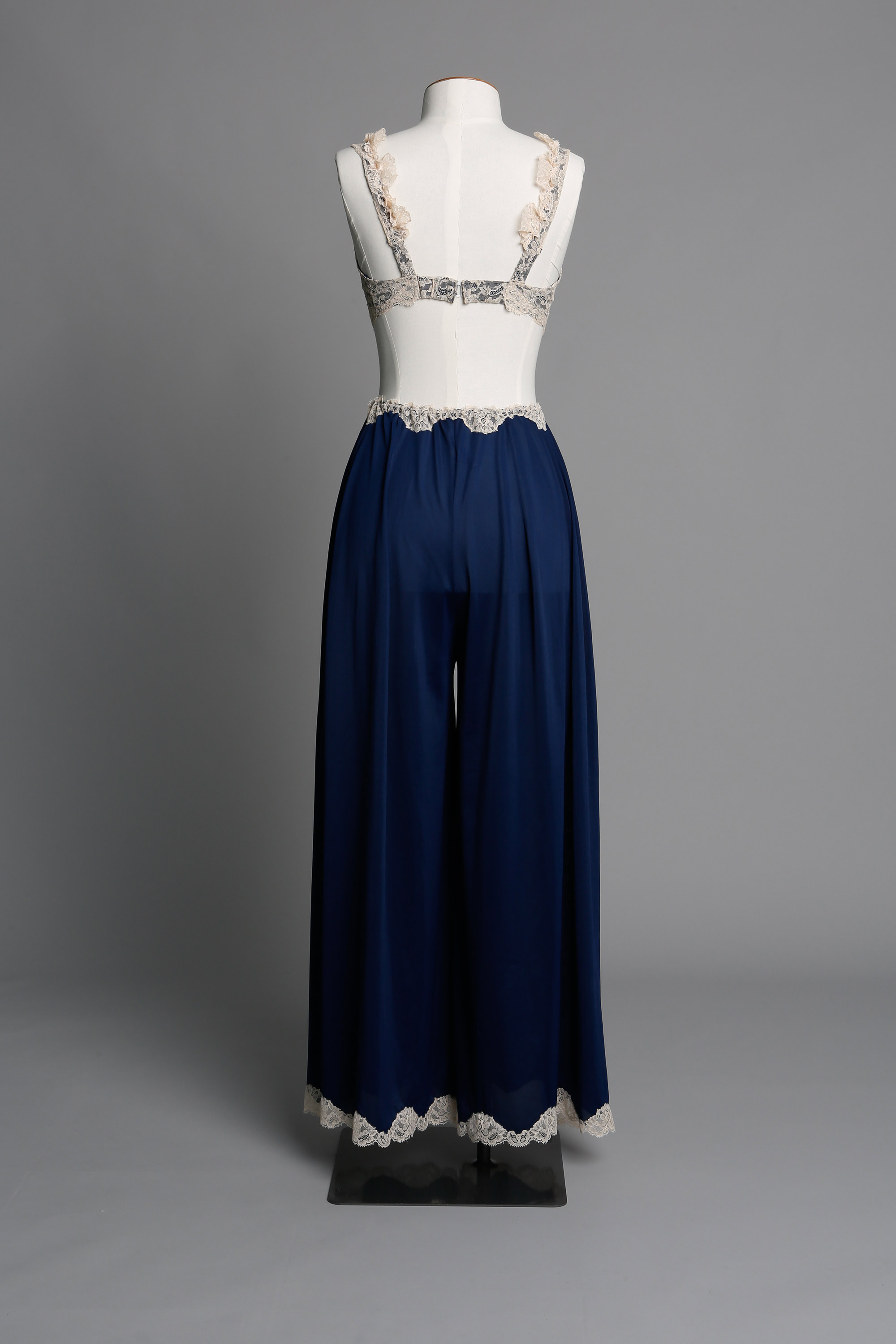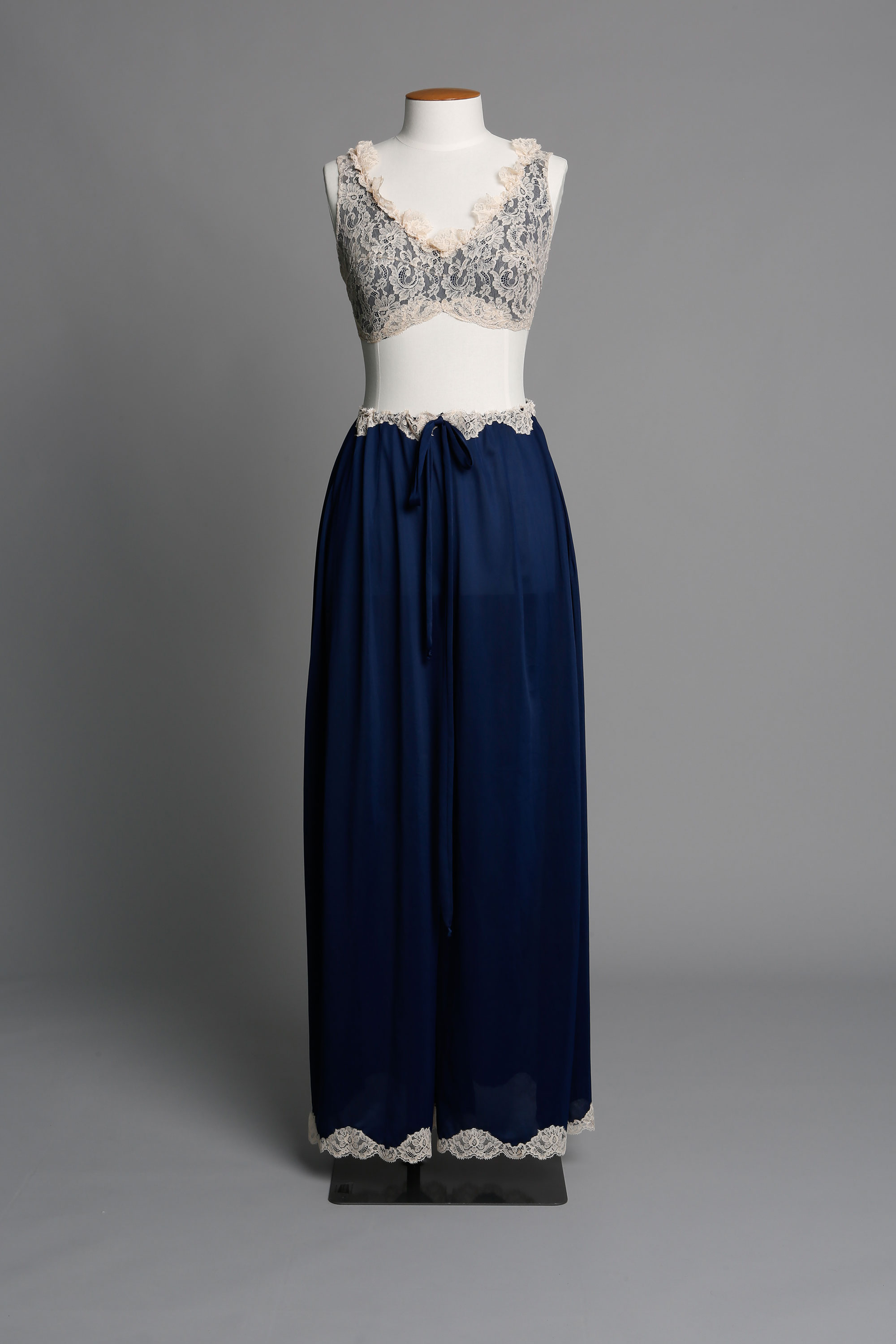 Adele Dallimore (nee Smith) worked for Bendon as a house model from 1968 to 1971. This is a set she purchased for herself. The women's liberation movement of the late 1960s and 1970s changed a lot about women's opportunities and their social status, but it also changed how they dressed. While not all women burnt their bras there were many who eshewing the wearing of a bra or if they did still wear one it was often a softer version. Smart bra manufacturing companies like Bendon responded by producing what the market wanted and extending their offering to include leisure wear and 'at home' styles such as this and the At-home gown in floral print. Read more about 1970s fashion in the New Zealand Fashion Museum publication The Age of Aquarius: A 70s Revolution in Fashion.