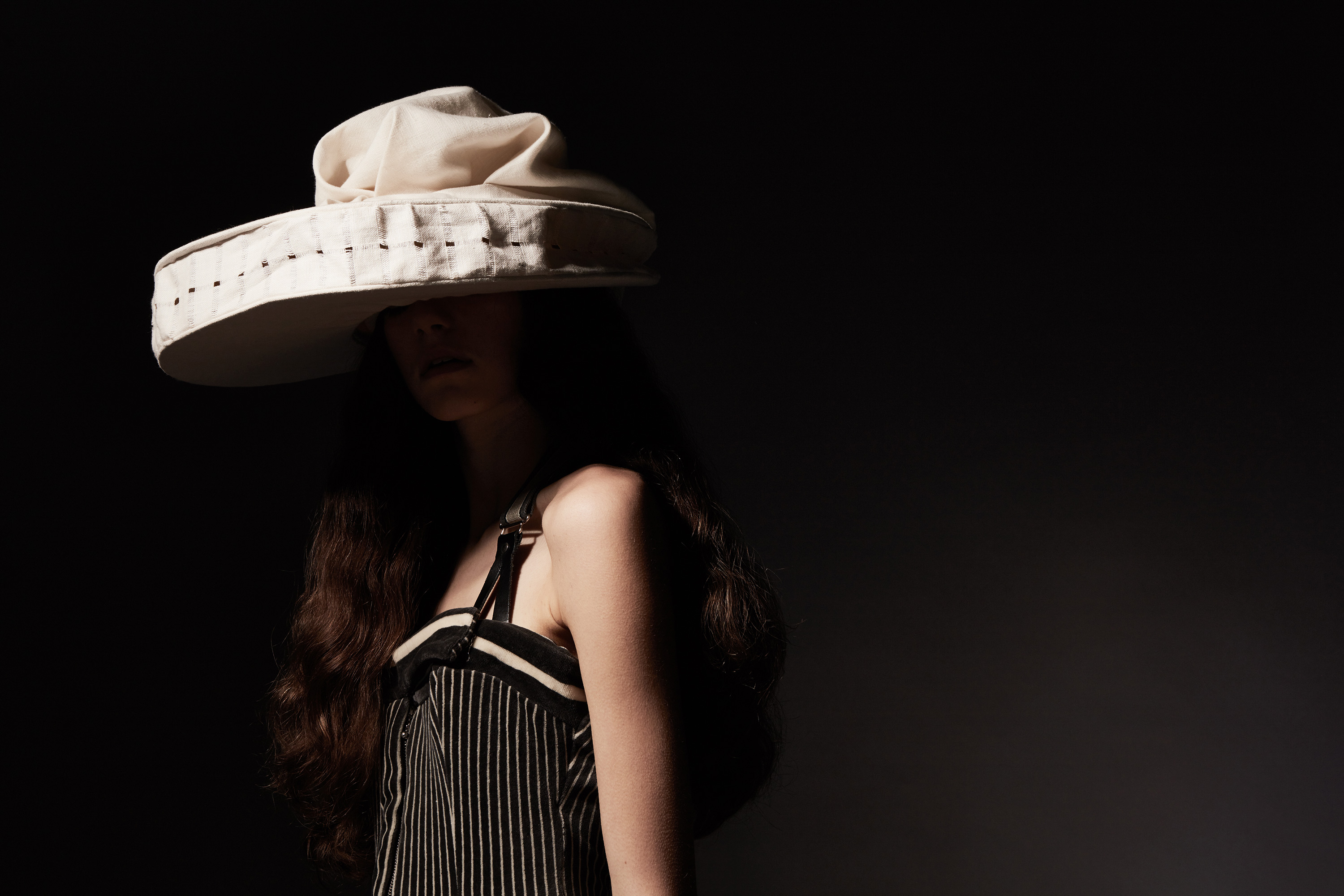 Margo Barton interpreted June Black's 'Costume to face the world of the commonplace'. Margo wrote about her costume: "Millinery, possibly more than any other article of clothing or accessory can both attract and deflect attention. The hat can act as a disguise or a costume to enable the self to adopt an identity, an 'other' personality, both for the world to observe and for the self to occupy; the hat shields the self from the world and shields the world from the self. The well-considered hat can also assuage the troubled mind by providing a haven, a secure place to face the tediously dull world of the commonplace, and to celebrate the uncommon by wearing millinery. It is fair to assume that the hat was commonplace when June Black initiated her project in 1959, with photographic evidence of seas of hats adorning the masses; however that is not the position of millinery in 2016."