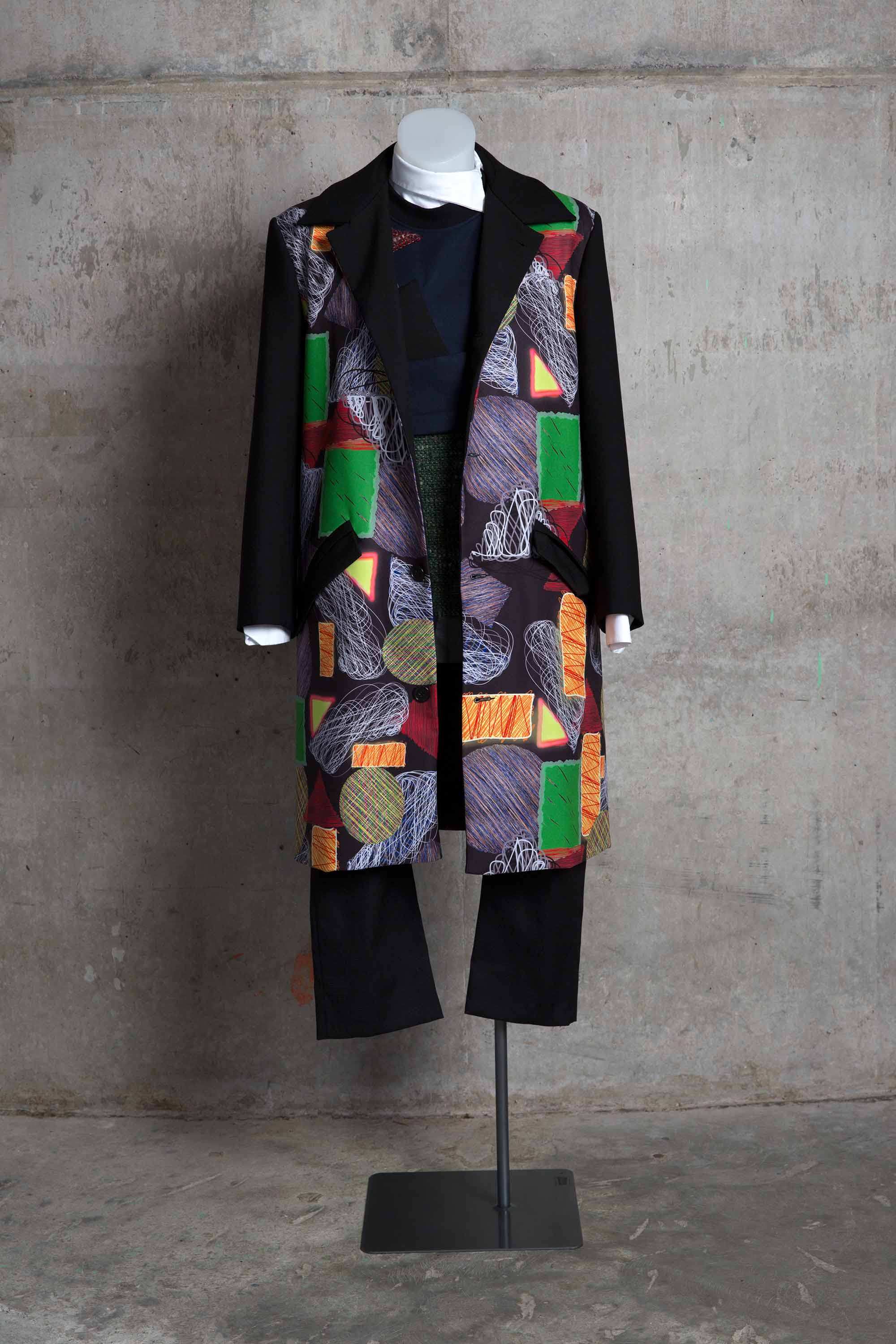 Men's coat with scribble print