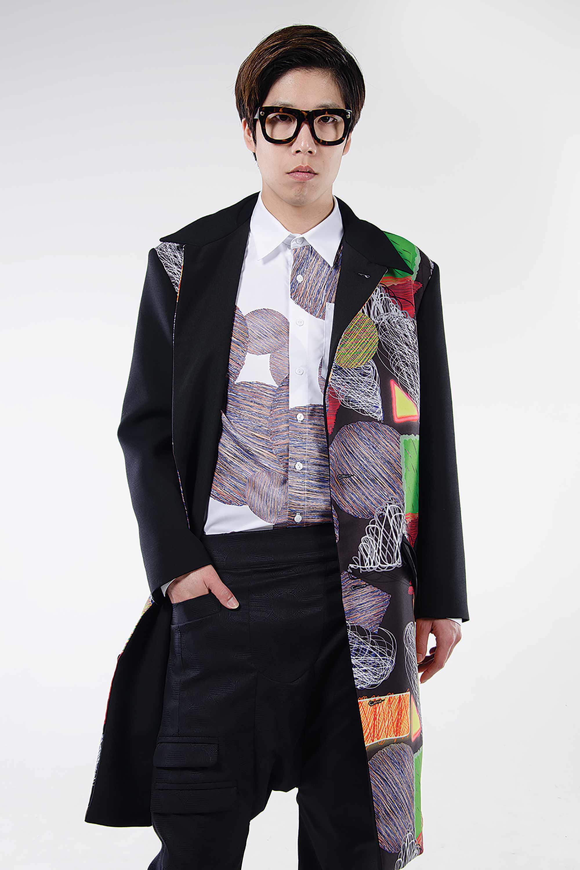 Marc Jun was inspired by his upbringing when he designed his Otago Polytechnic graduate collection. Aware of the impact on his family of the traditional culture where the “head of the household” works long hours, Marc designed a “groovy” outfit for men. "I have incorporated the quality compassion' into my design. This inspiration came from the problems deeply rooted into our contemporary working society. This garment would act as a reminder to the wearer of the fun times they have had with their children."