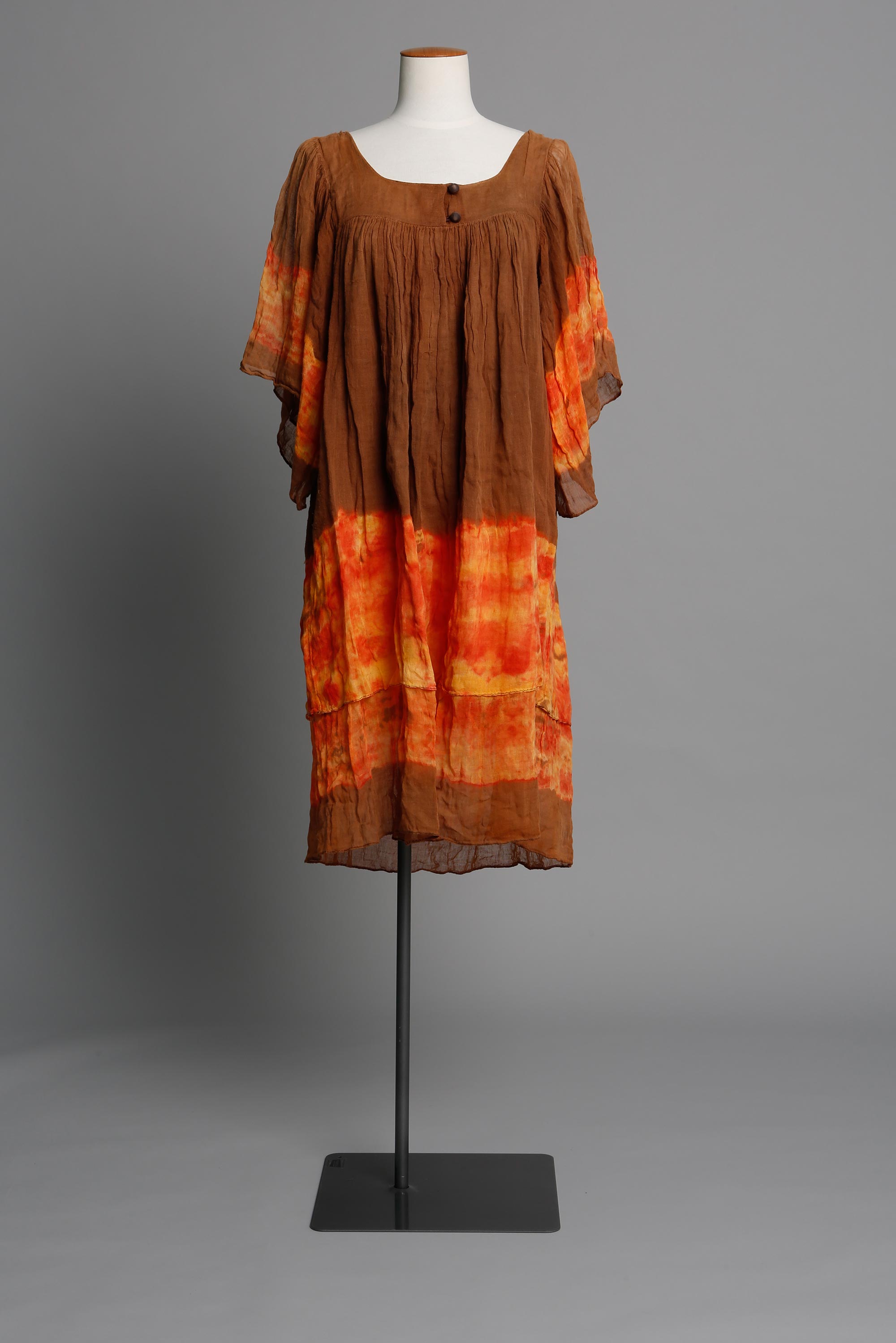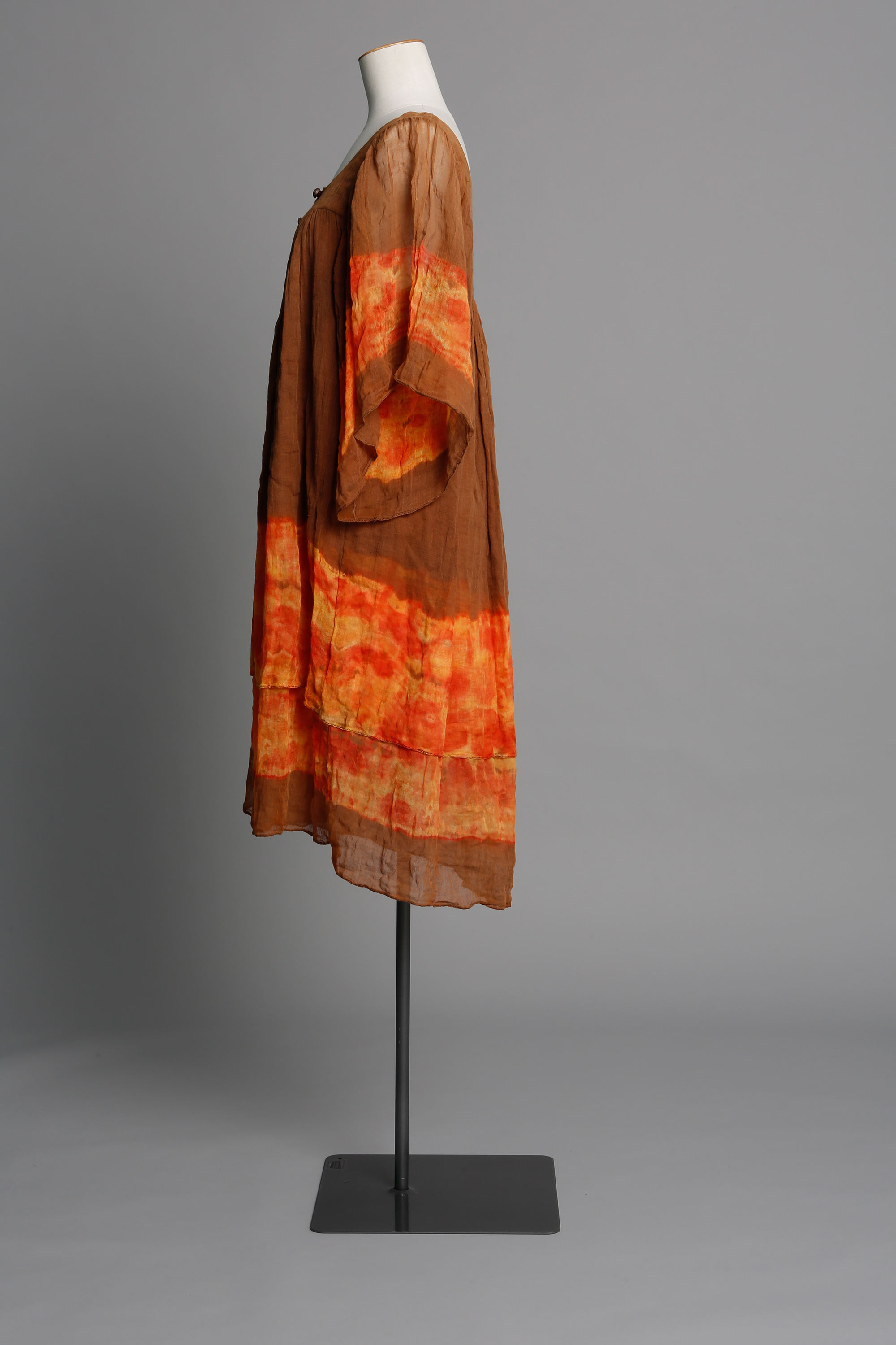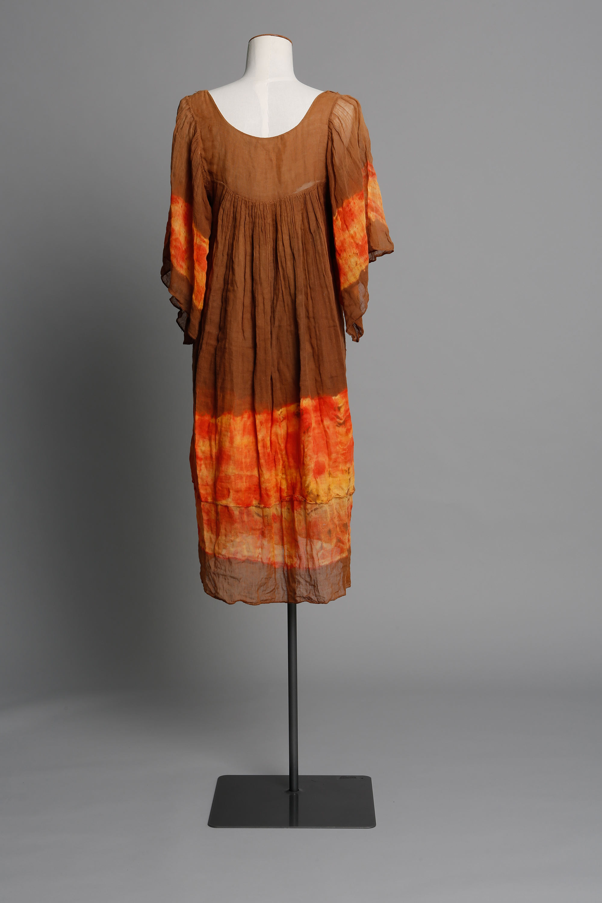 Neridah brown & orange hand-dyed muslin dress, 1975