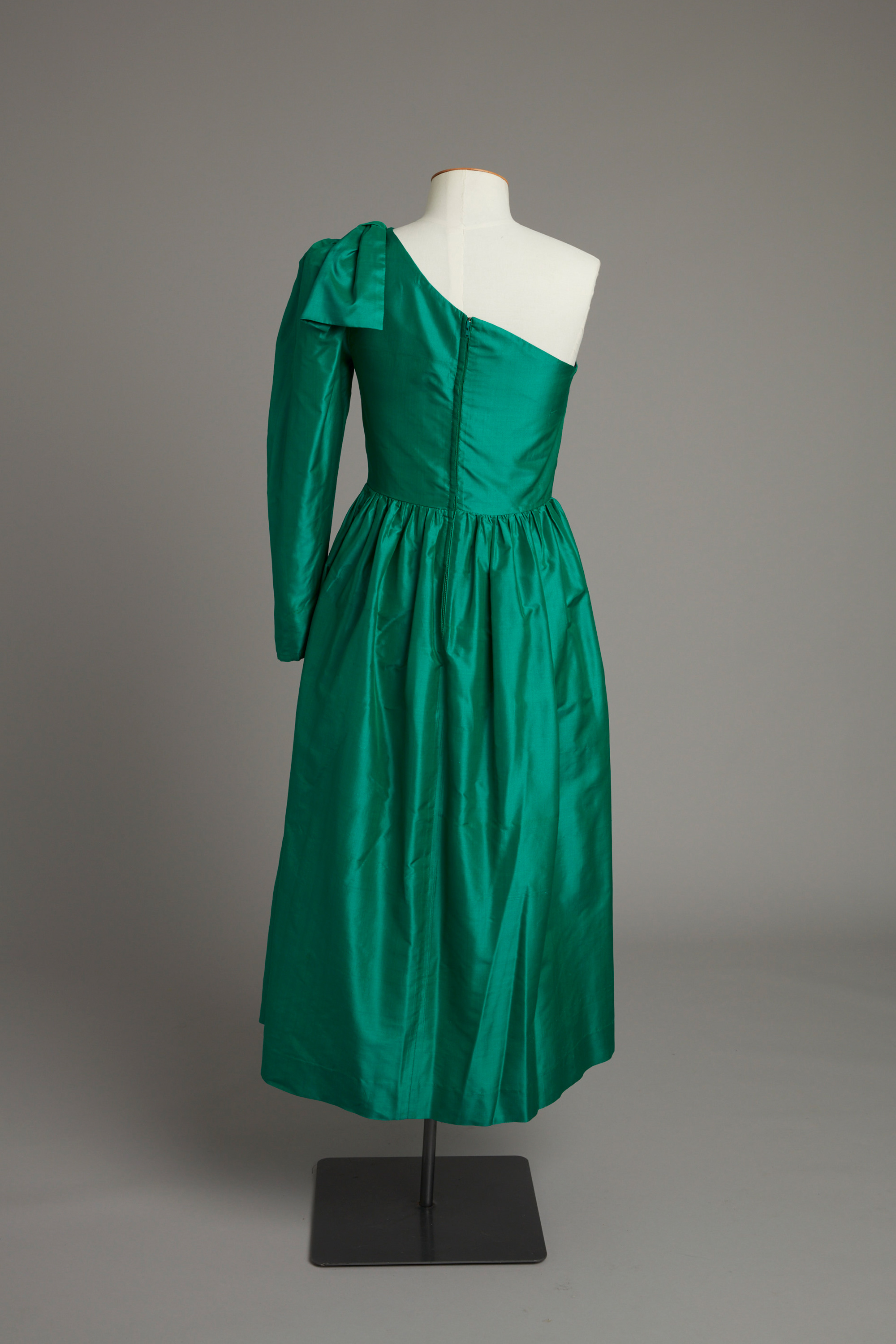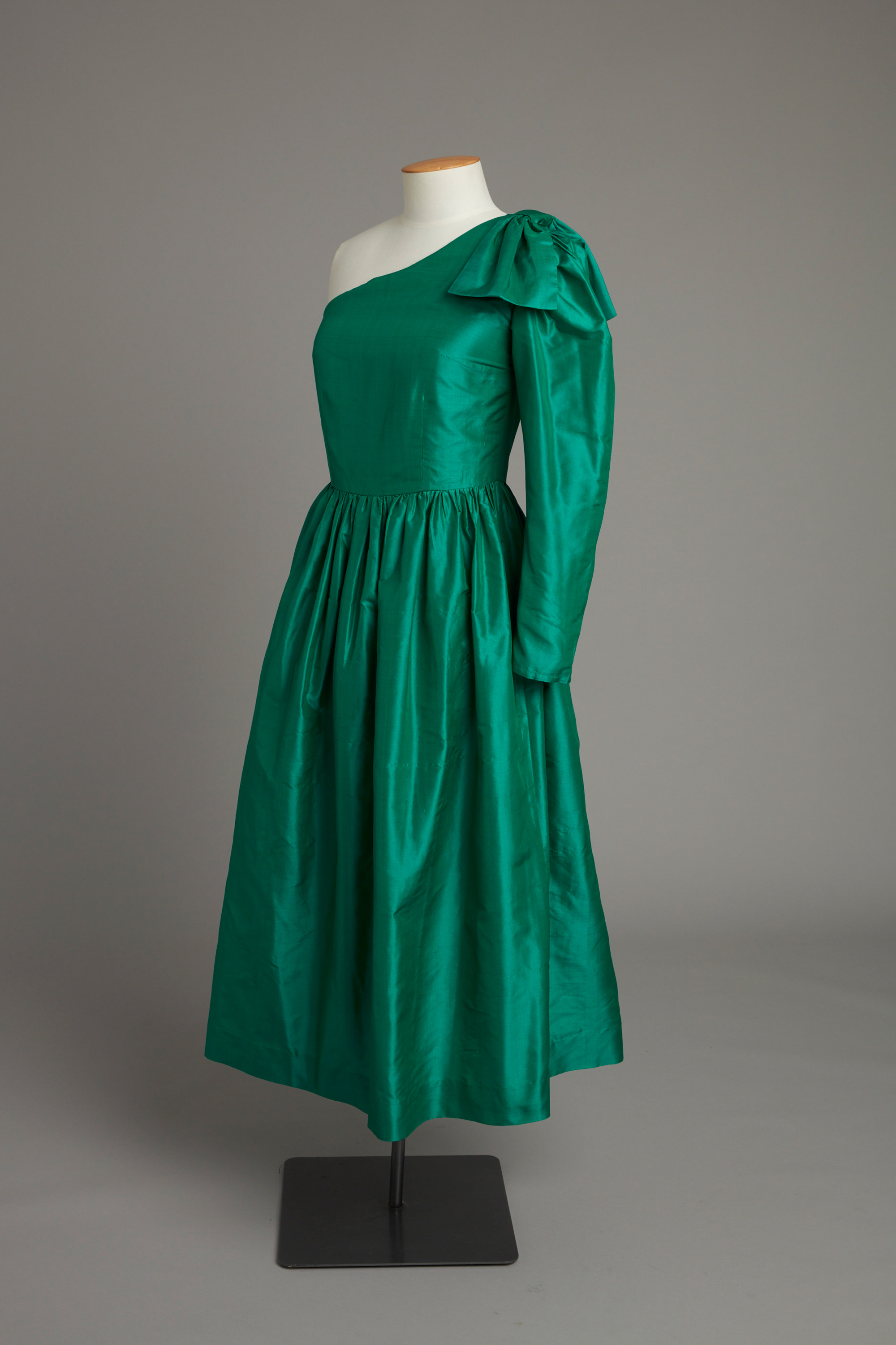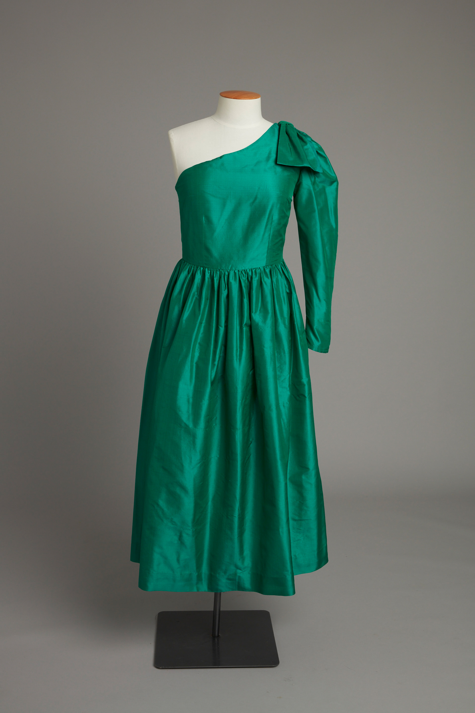 One-shouldered evening dress with gathered skirt