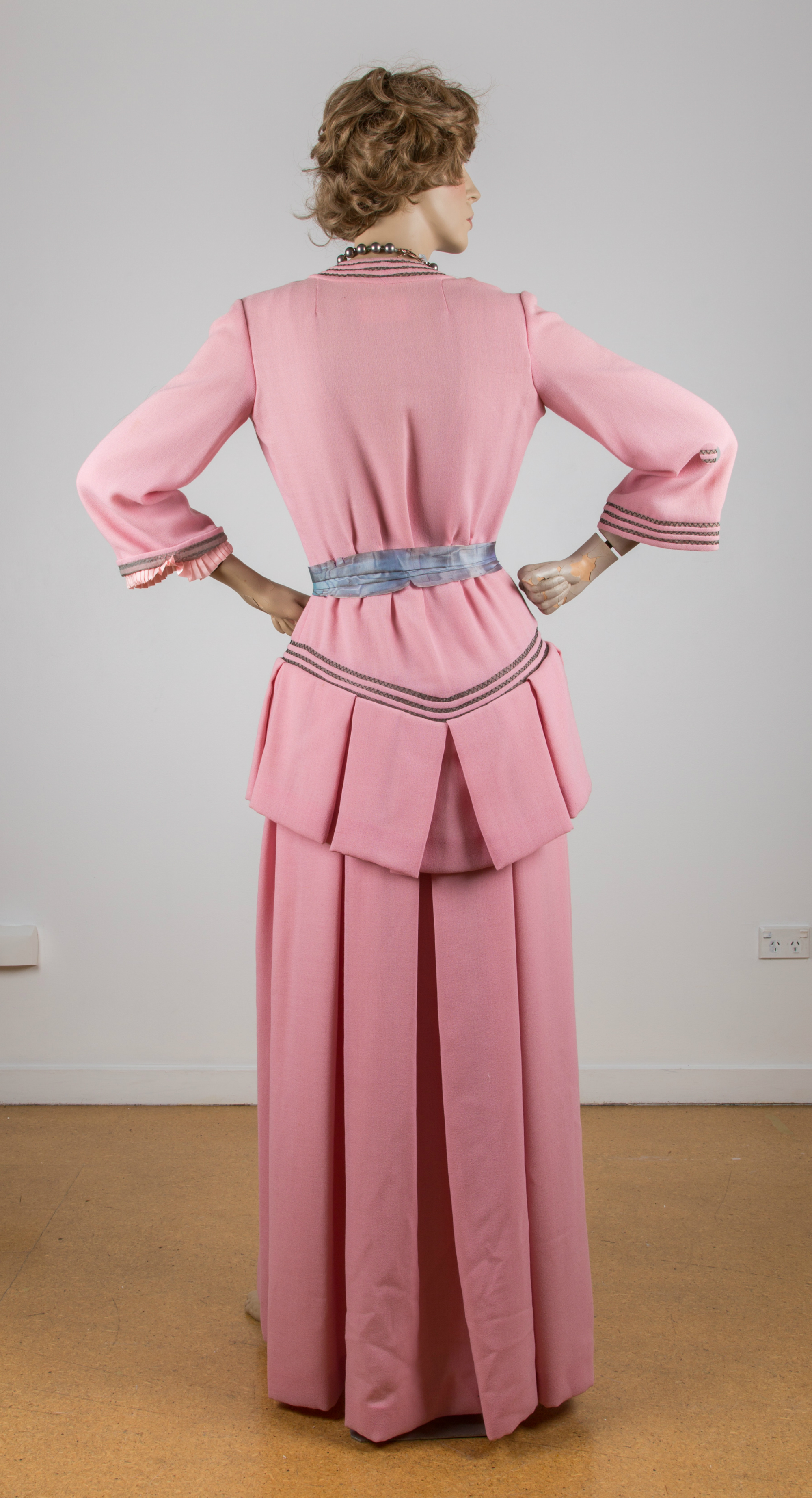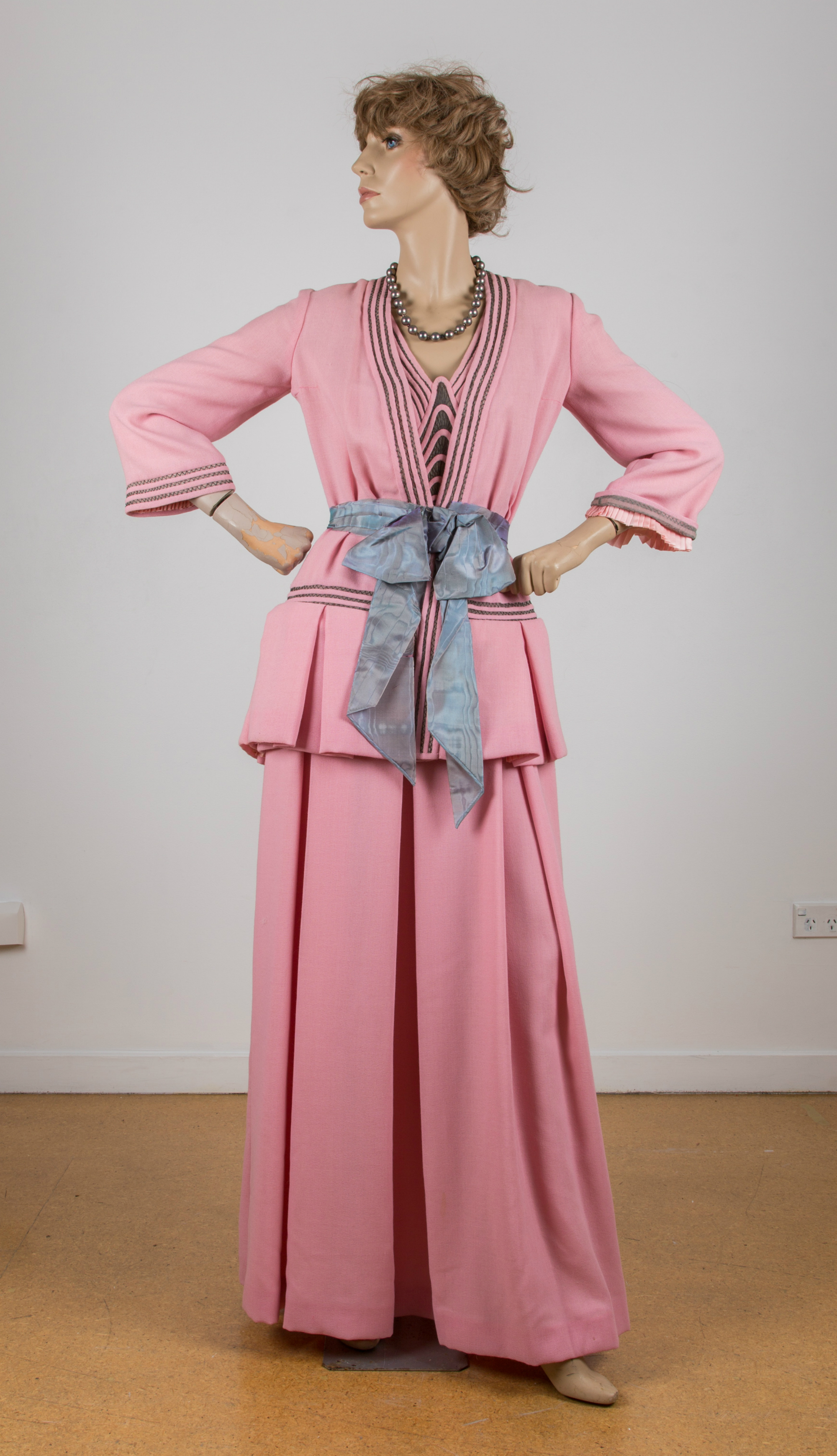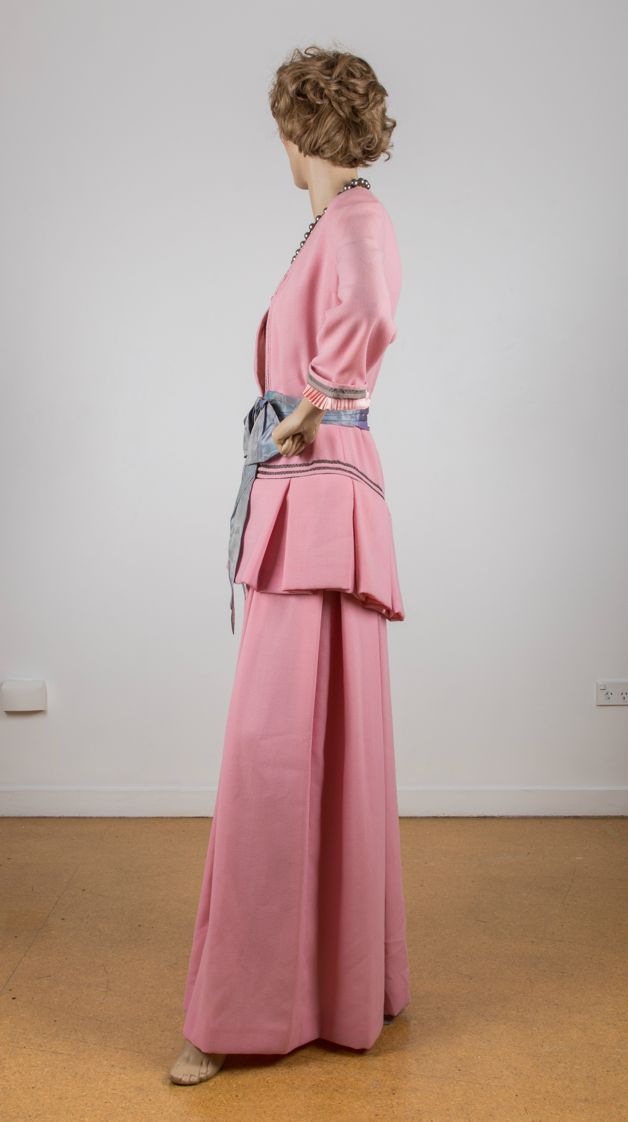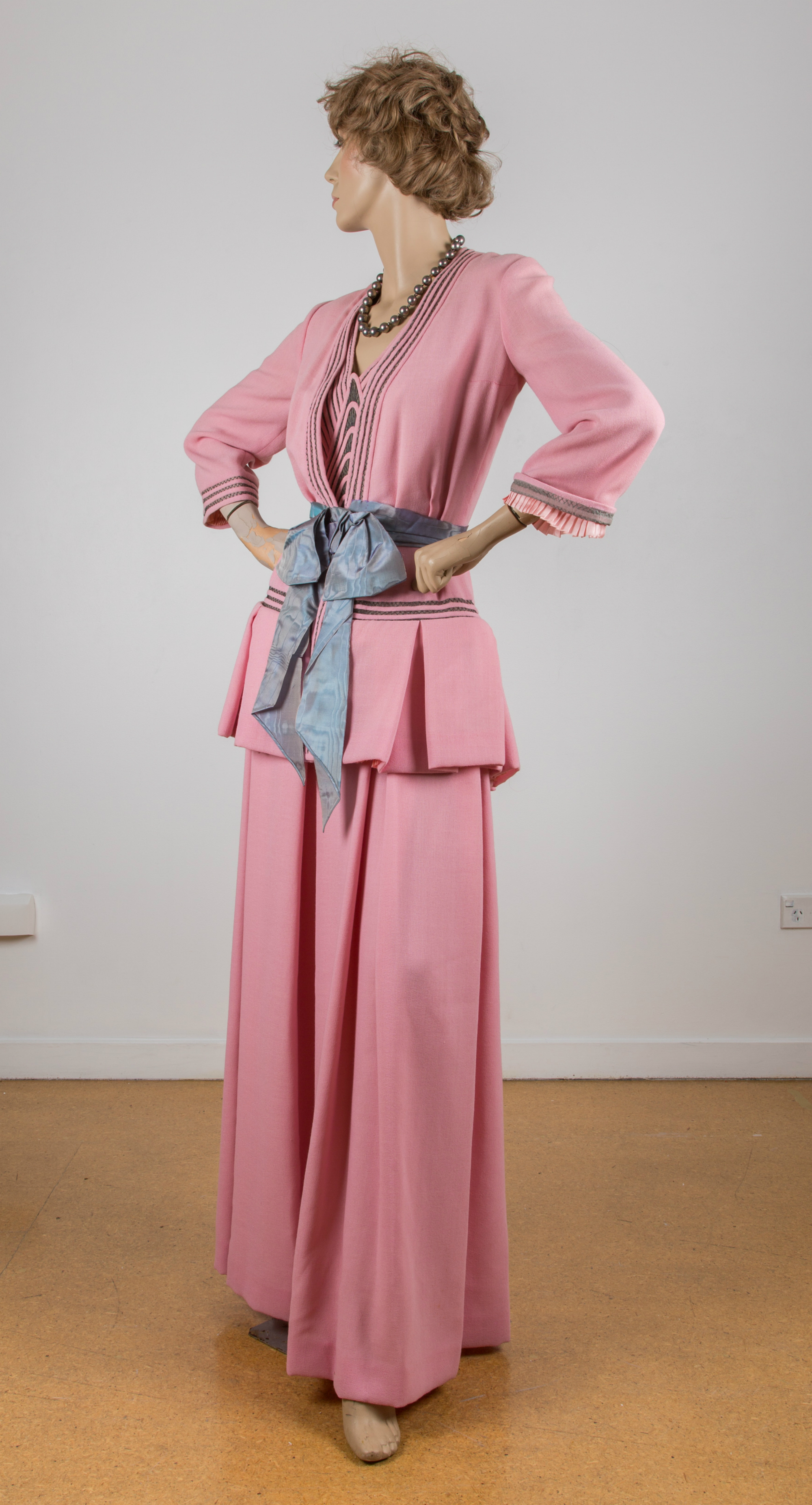 Pink wool crepe evening suit