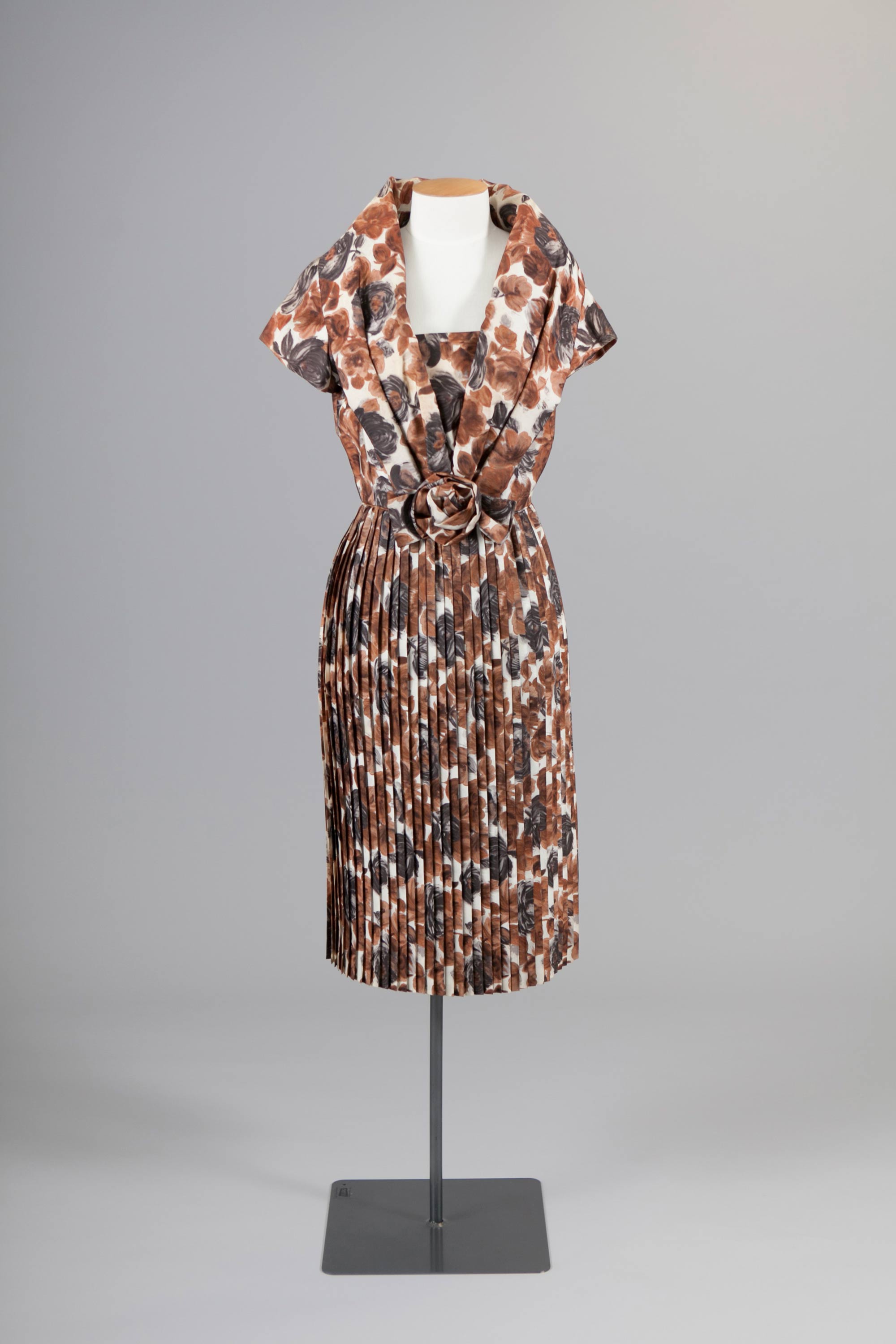 Pleated dress with handmade rose