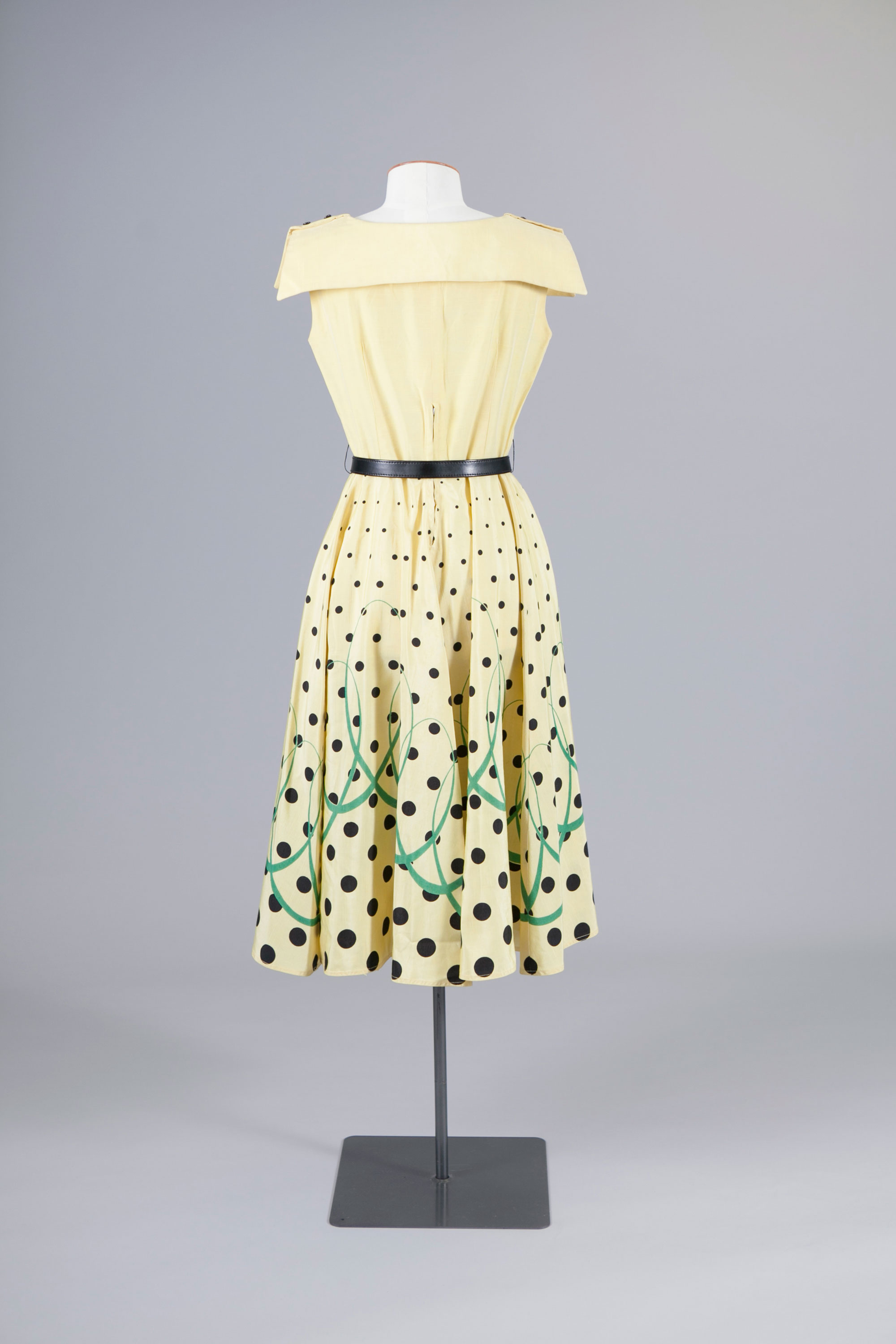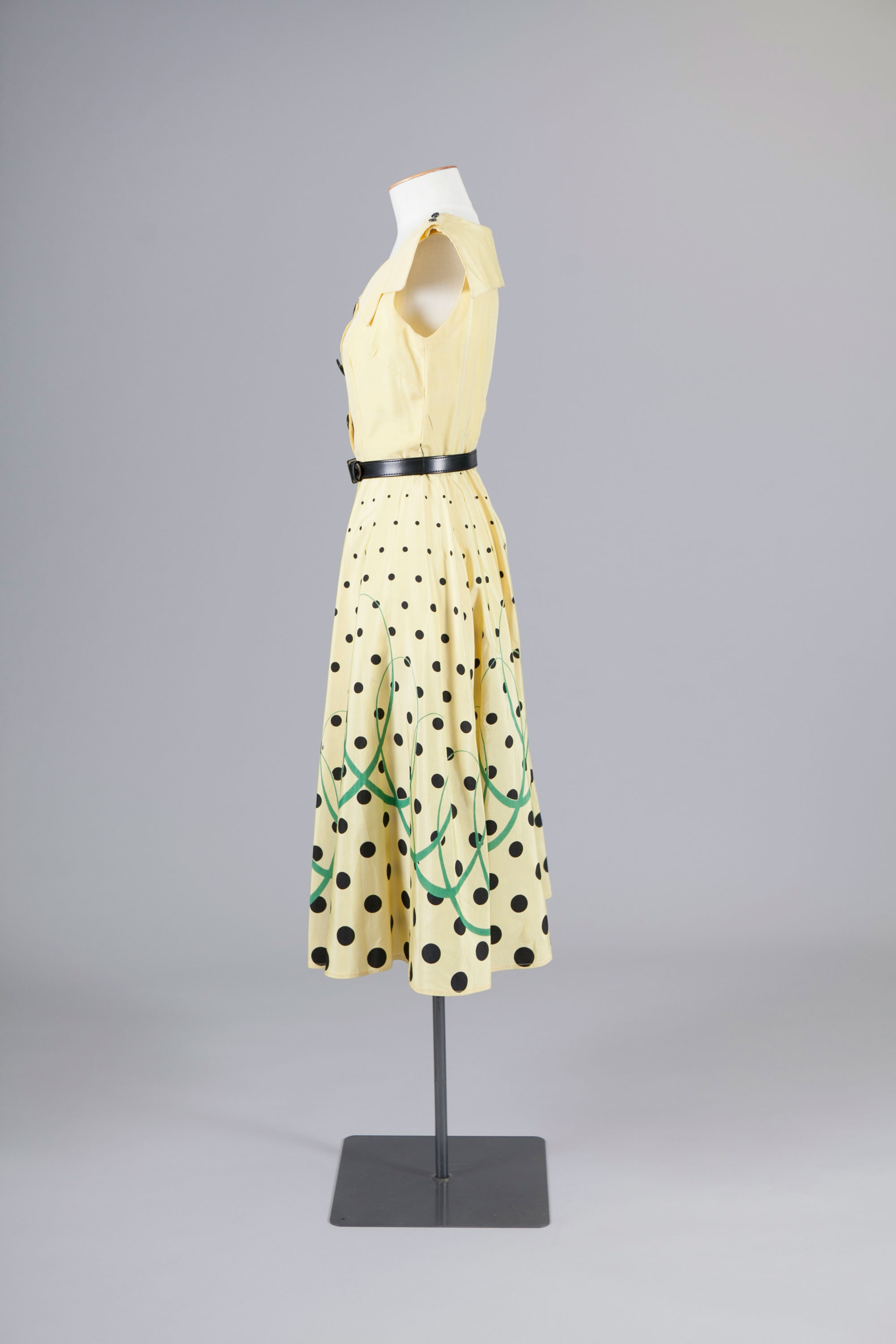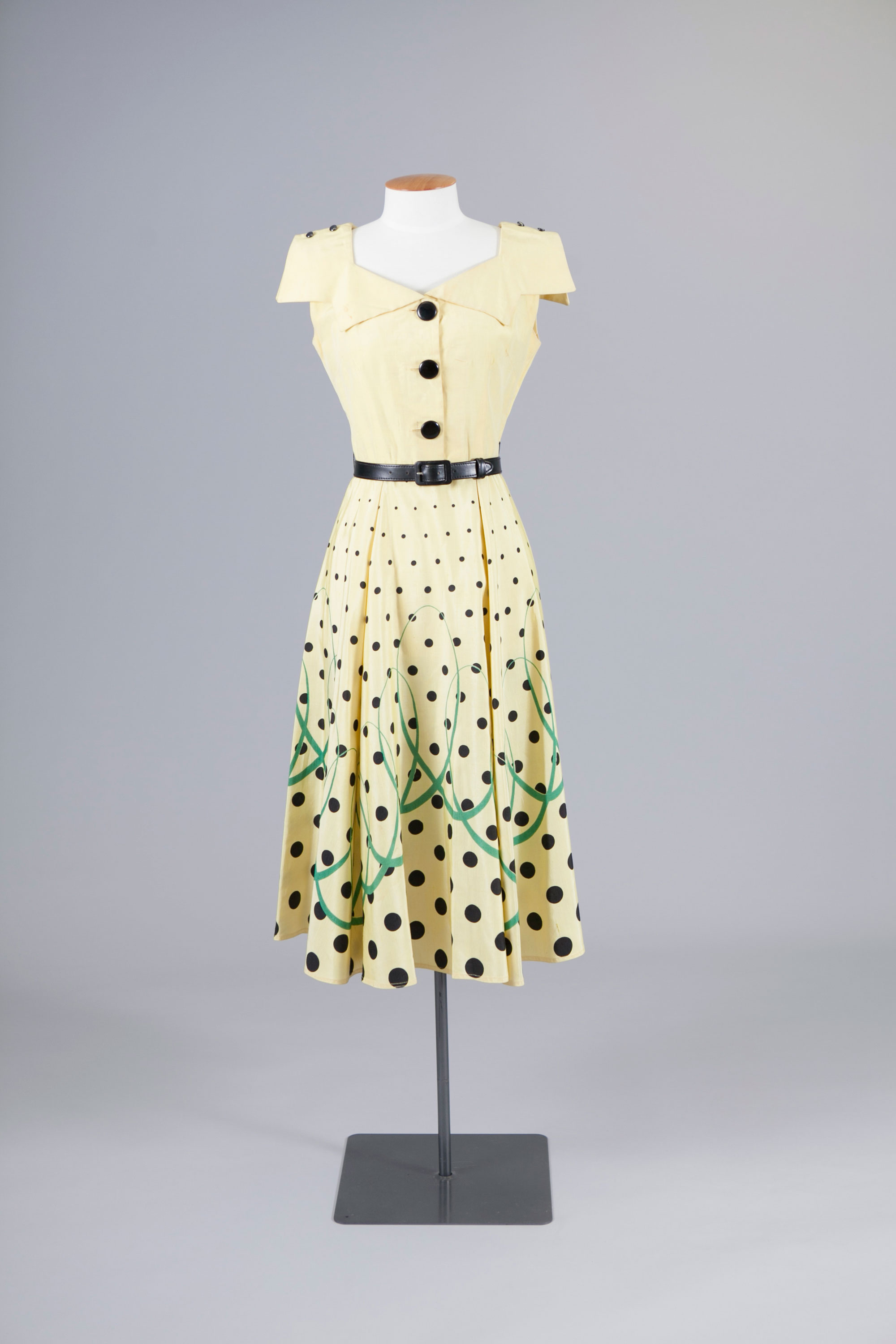 Polka dot dress with belt & buttons