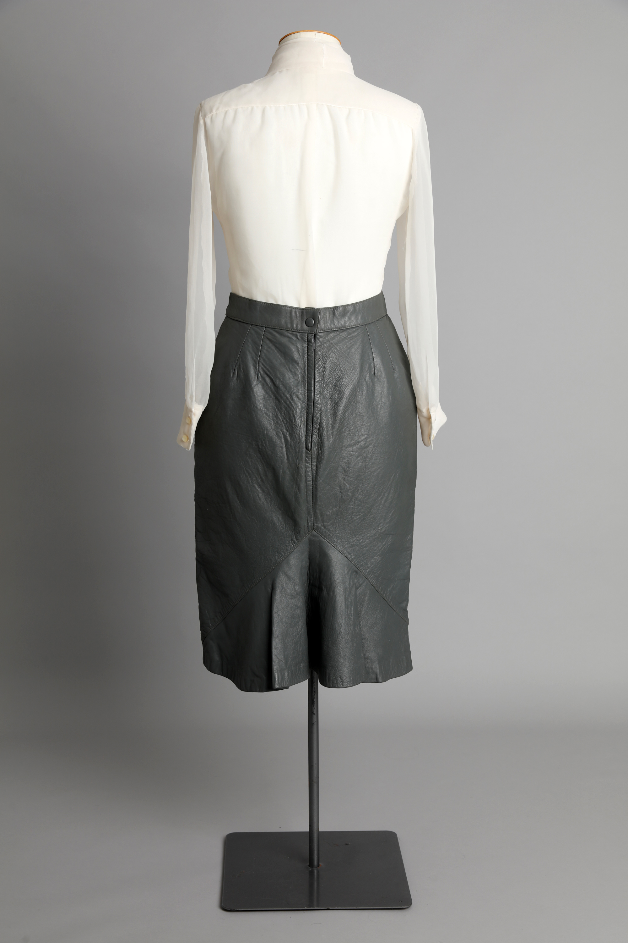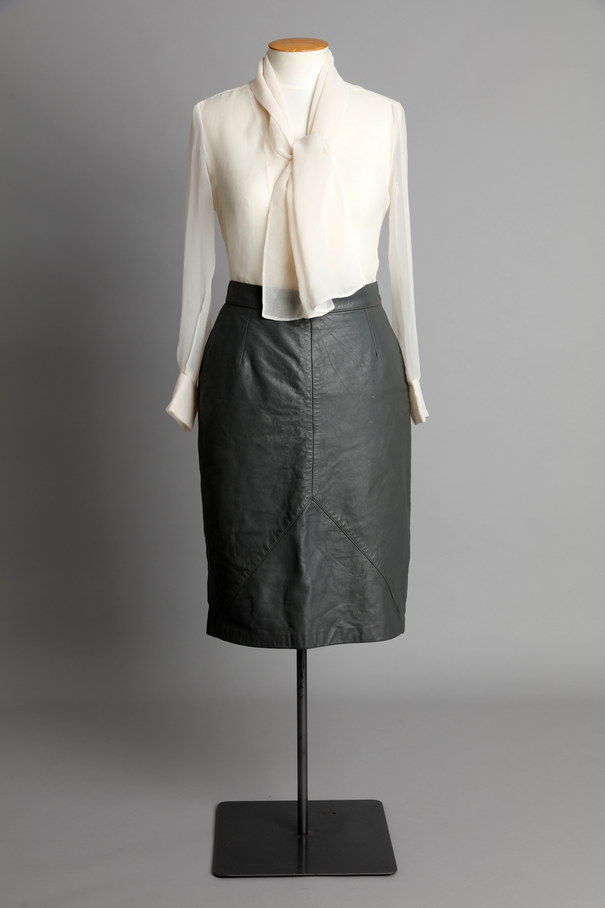 Pussy bow blouse & leather skirt