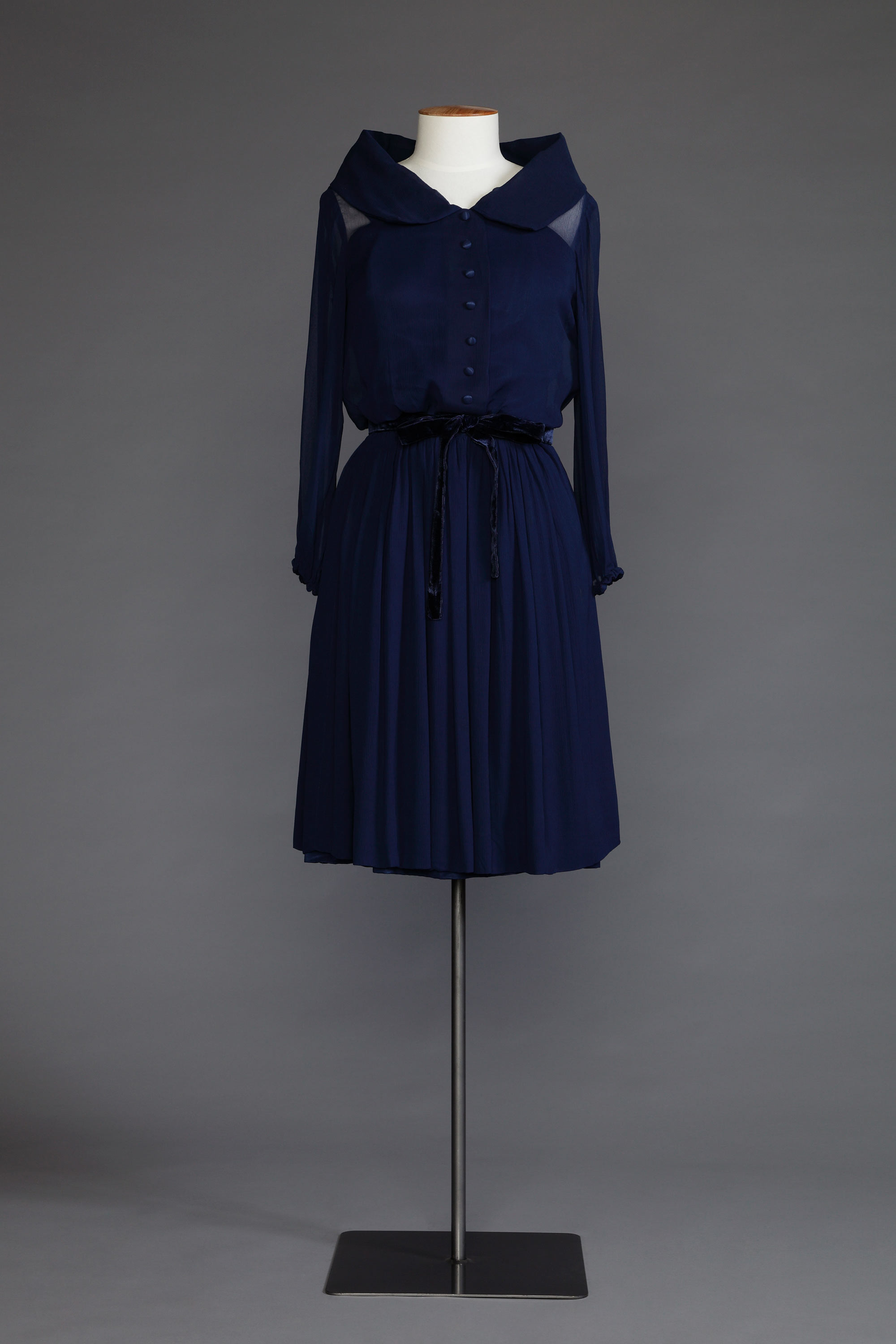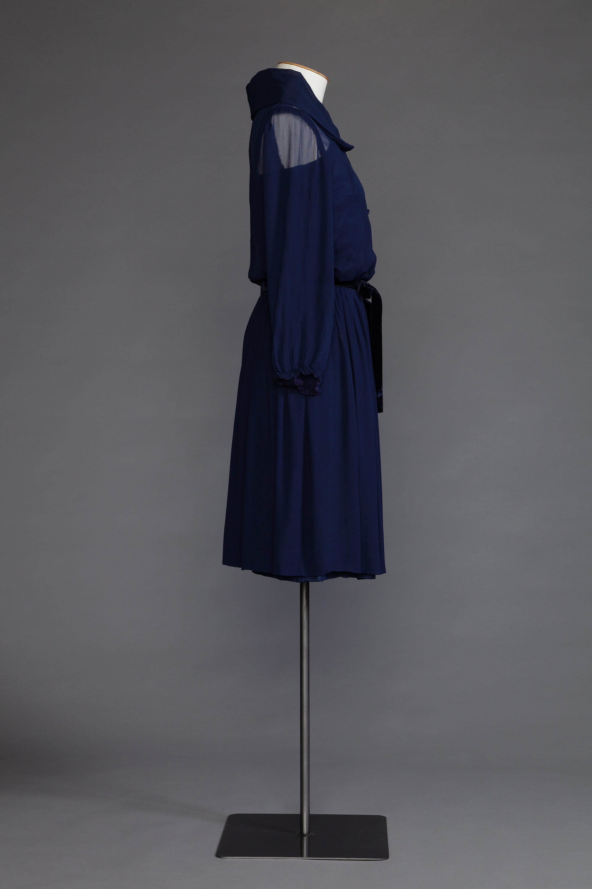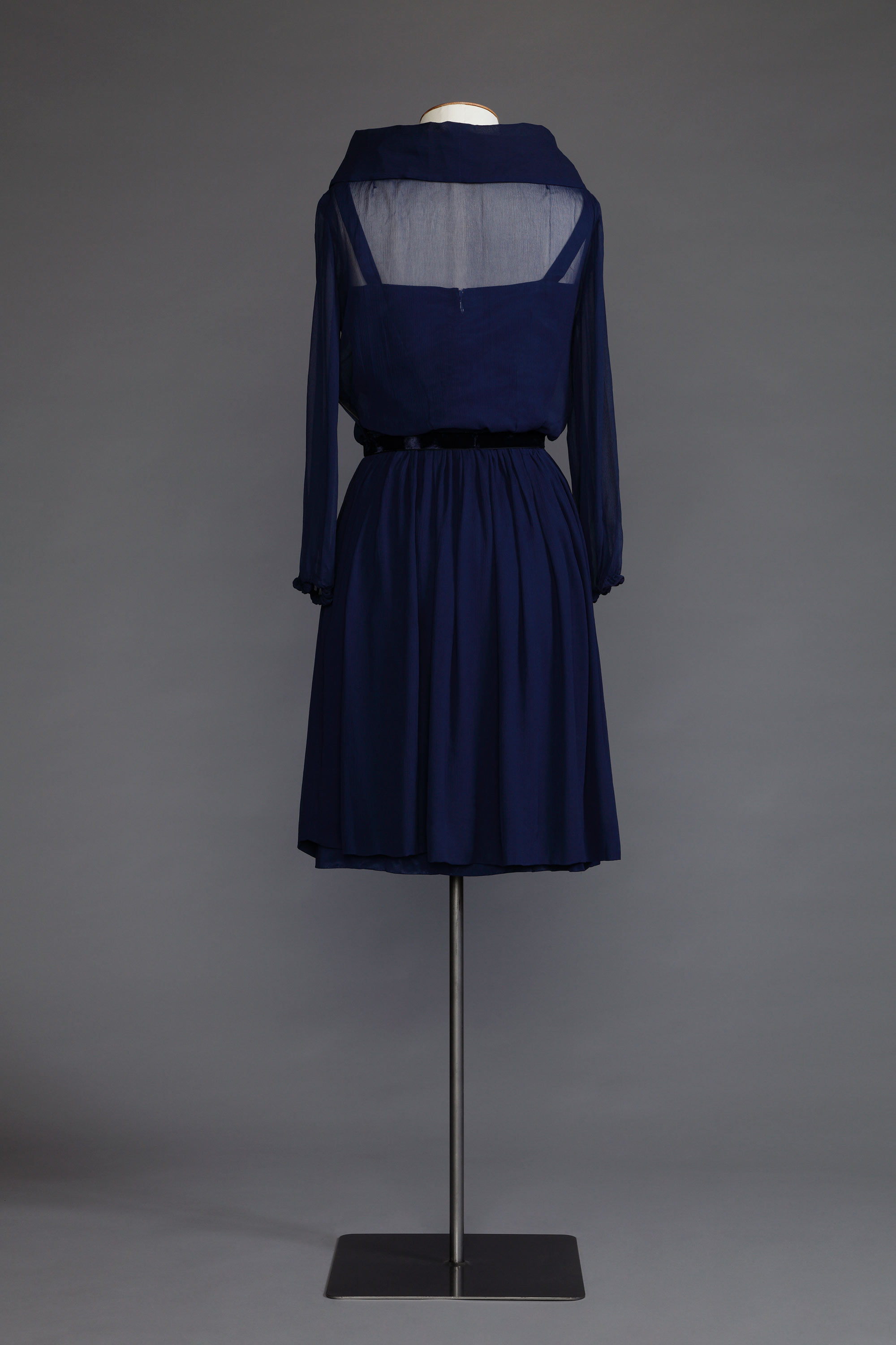 Brought up in Southland in a family of sewers, the allure of being able to produce well-finished, quality items of clothing attracted Barbara Brinsley to sew garments like this silk dress, originally worn to her sister’s wedding in Invercargill. Barbara was highly influenced by her well-dressed parents and the polished presentation of people around her at a time when even school girls in uniform would wear panama hats and gloves. Barbara’s enormous love of fashion and belief in fashion as a wearable art form would find her pouring over the latest magazines and Vogue pattern books in H & J Smith. She appreciates being bought up during a time of good craftsmanship and non-throw away fashion. Read more about the history of home sewing in the New Zealand Fashion Museum publication Home Sewn.