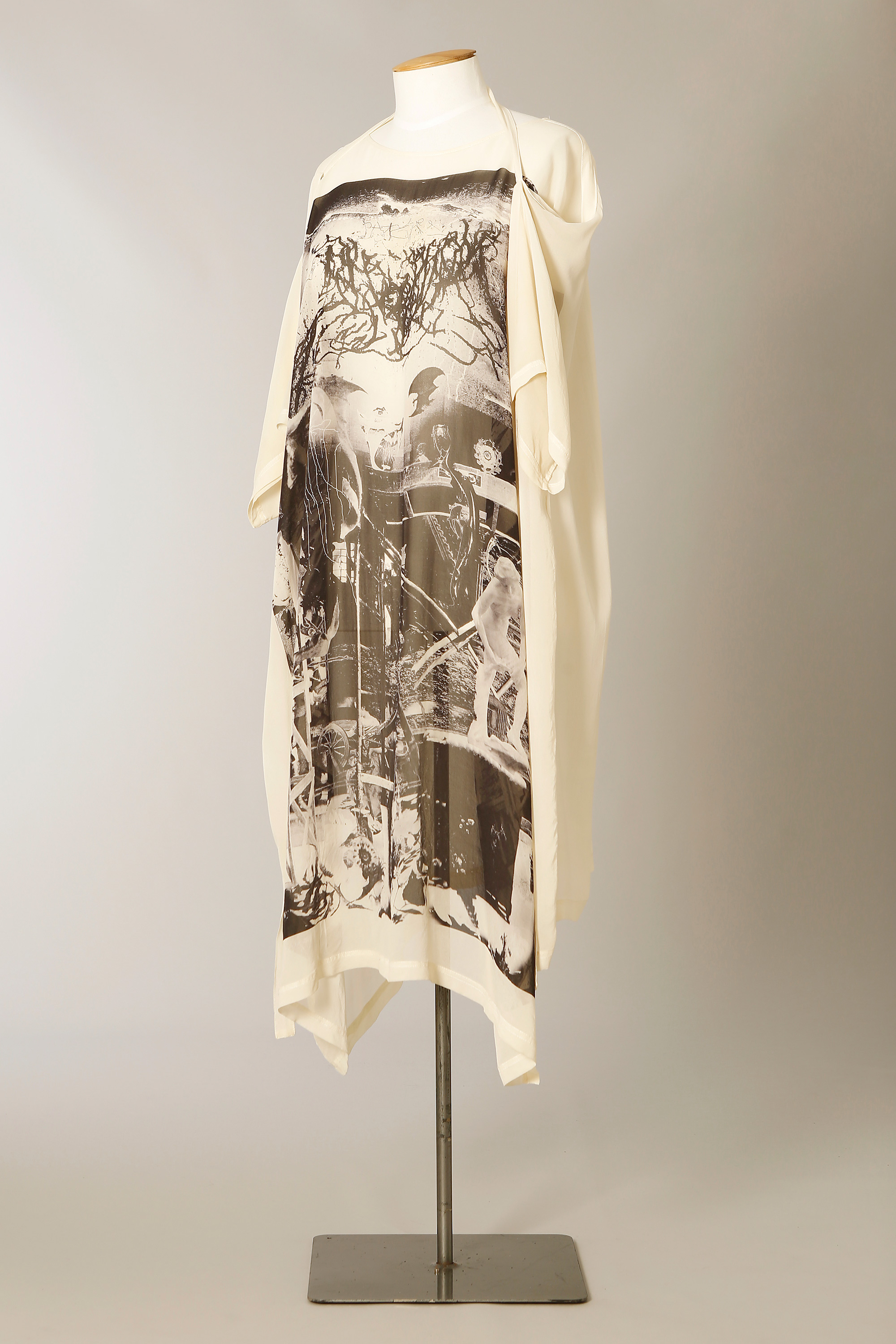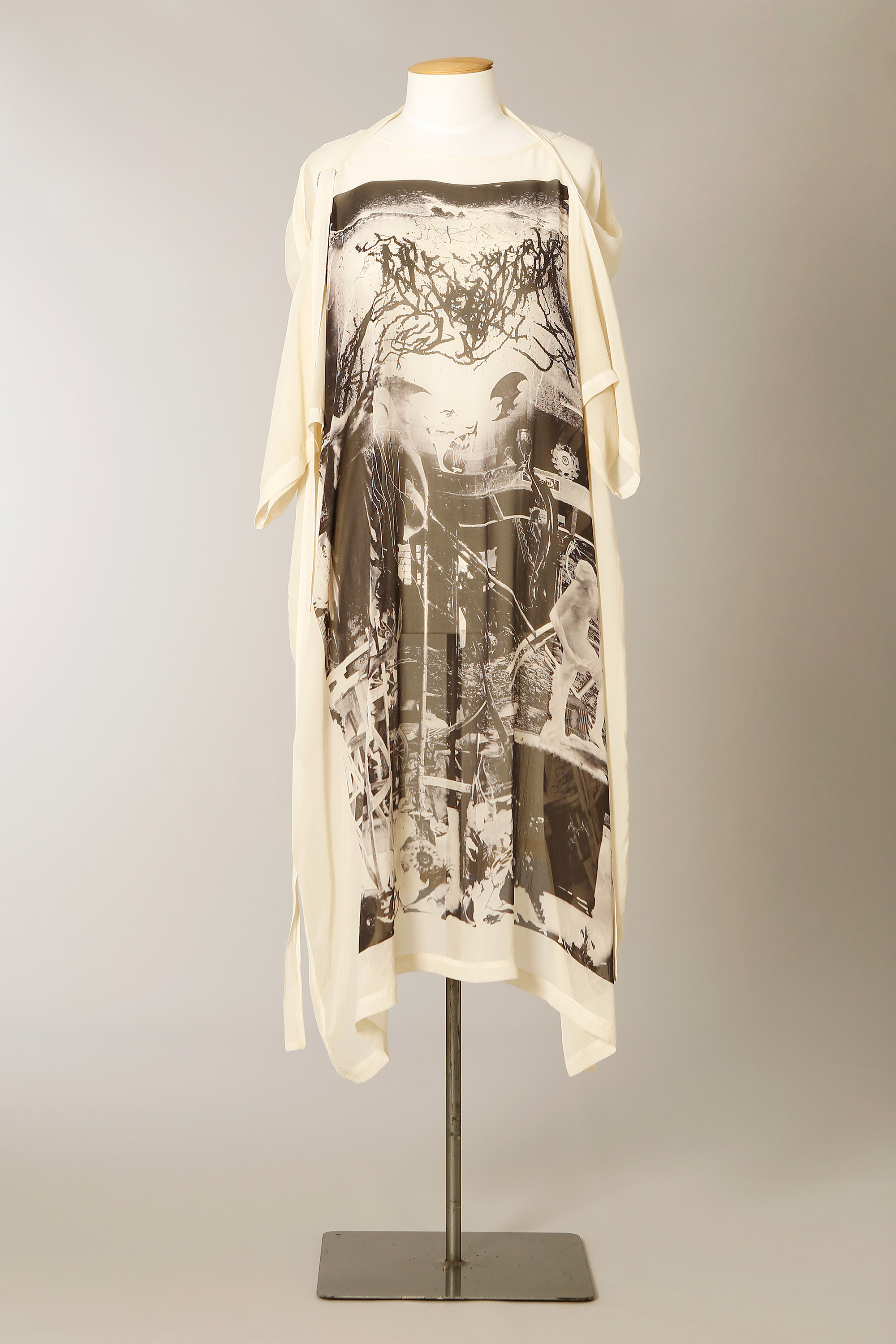 This dress is from the Autumn/Winter 2011 collection titled Until the Light Takes Us. The print captures a gothic world of black metal imagery and alchemy and is an original artwork by Andrew McLeod with who James has had a number of successful collaborations. It was part of the collection that was shown on the runway at NZ Fashion Week in 2010.