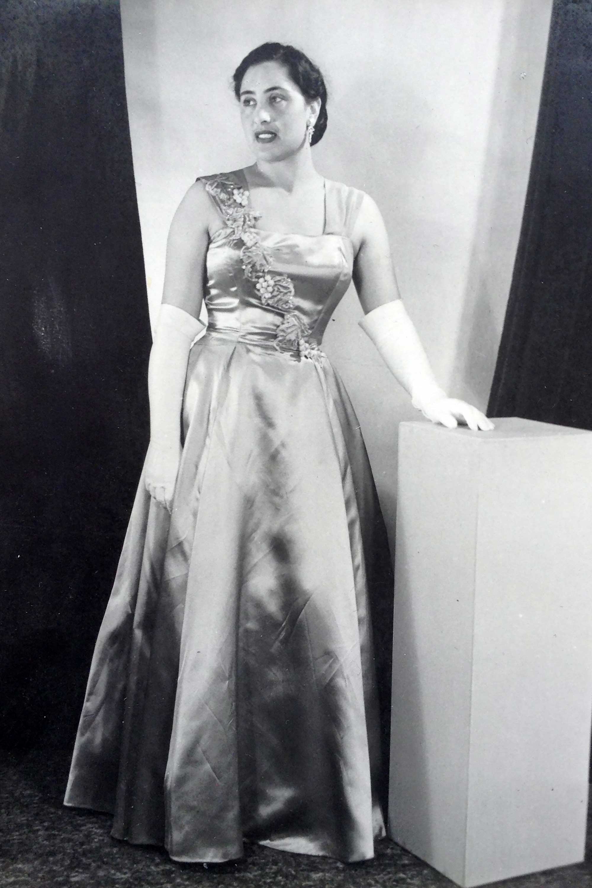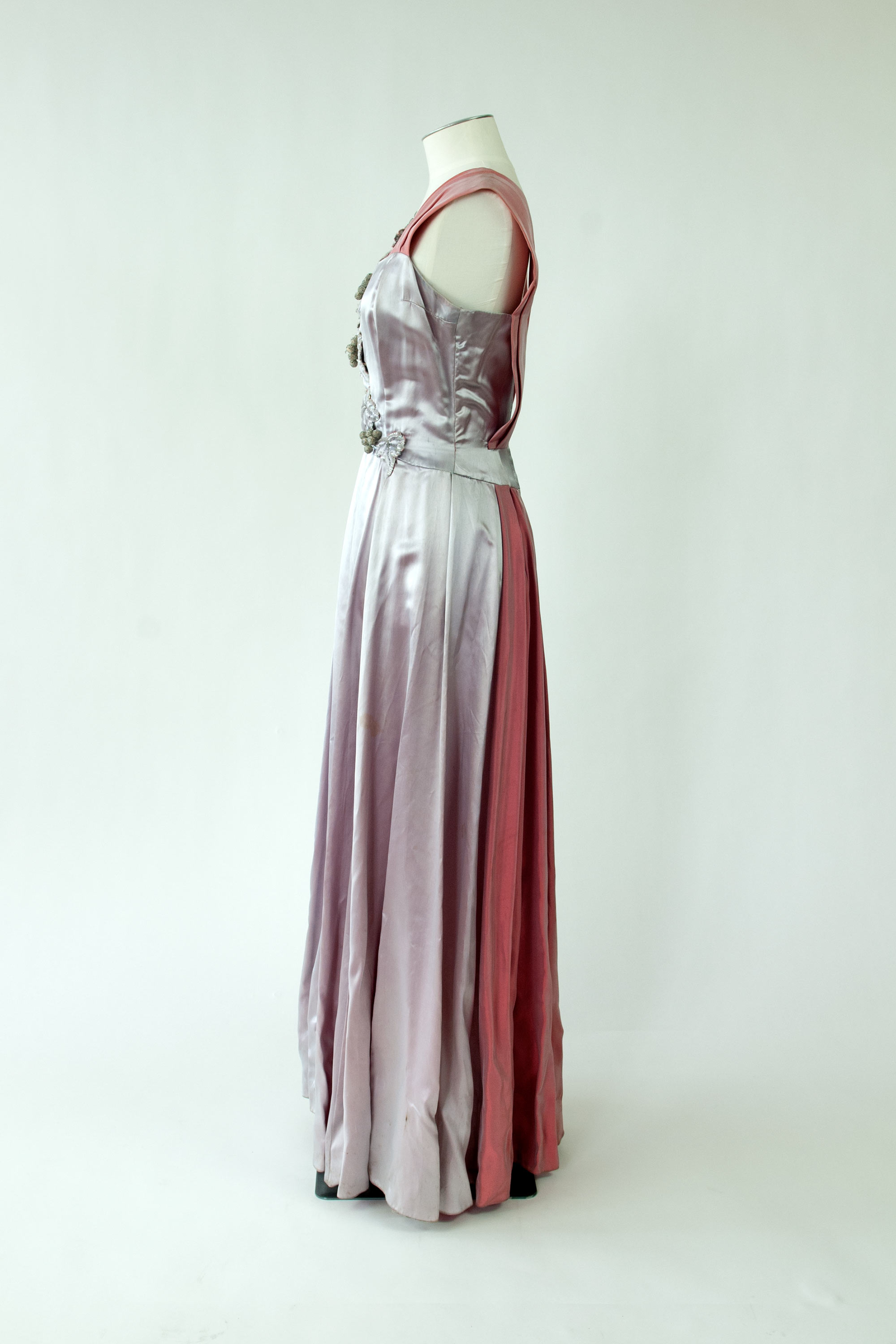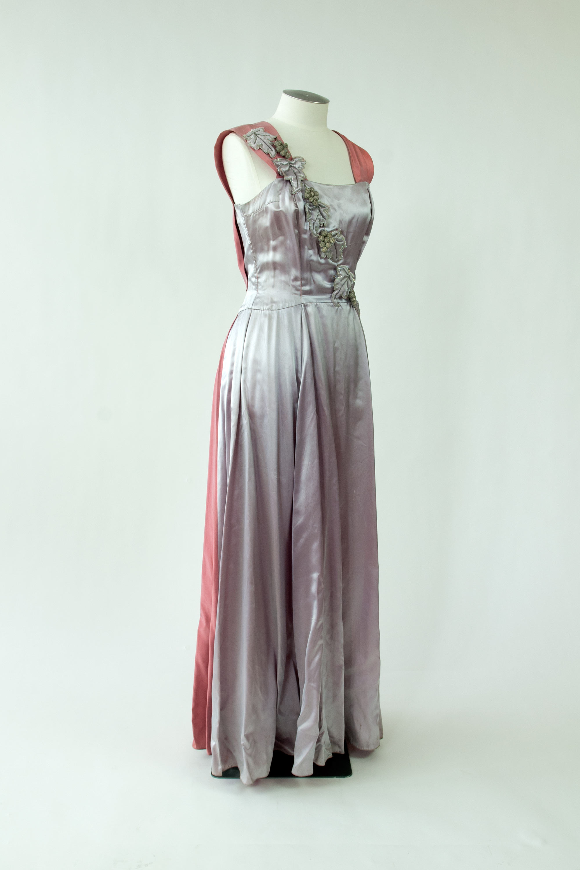 This Chrismodel ball gown was bought for Margaret Mohi from Waimarama, Hastings. Her daughter Adele Mohi McGoverin says that when her Mum was in her late teens living in Rotorua, a movie producer came to town and wanted to take Mum back to Hollywood. "Mum and her sister and cousin Nora appeared in several publicity photos for Rotorua and Mum was also on the cover of a cruise ship itinerary in 1939."