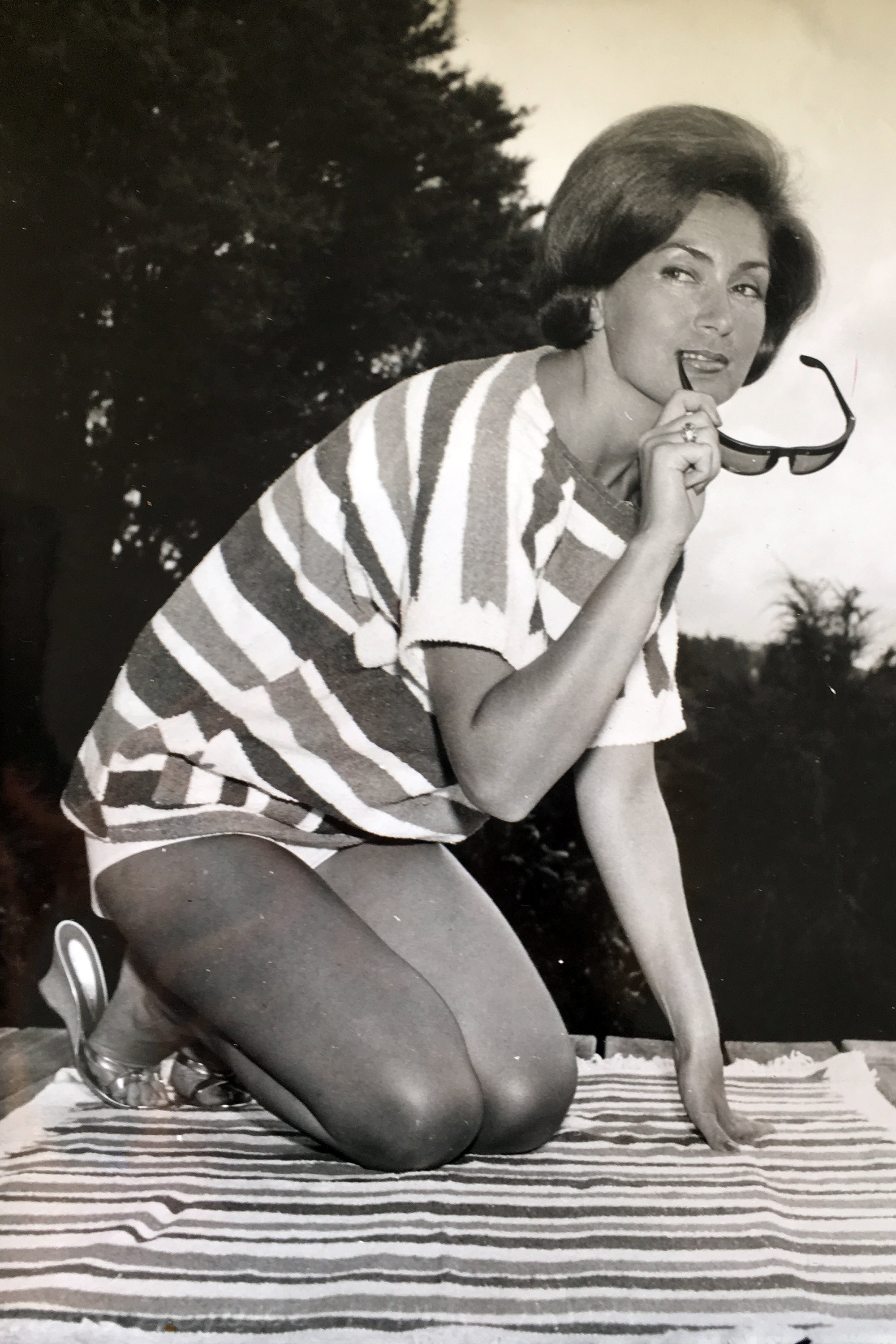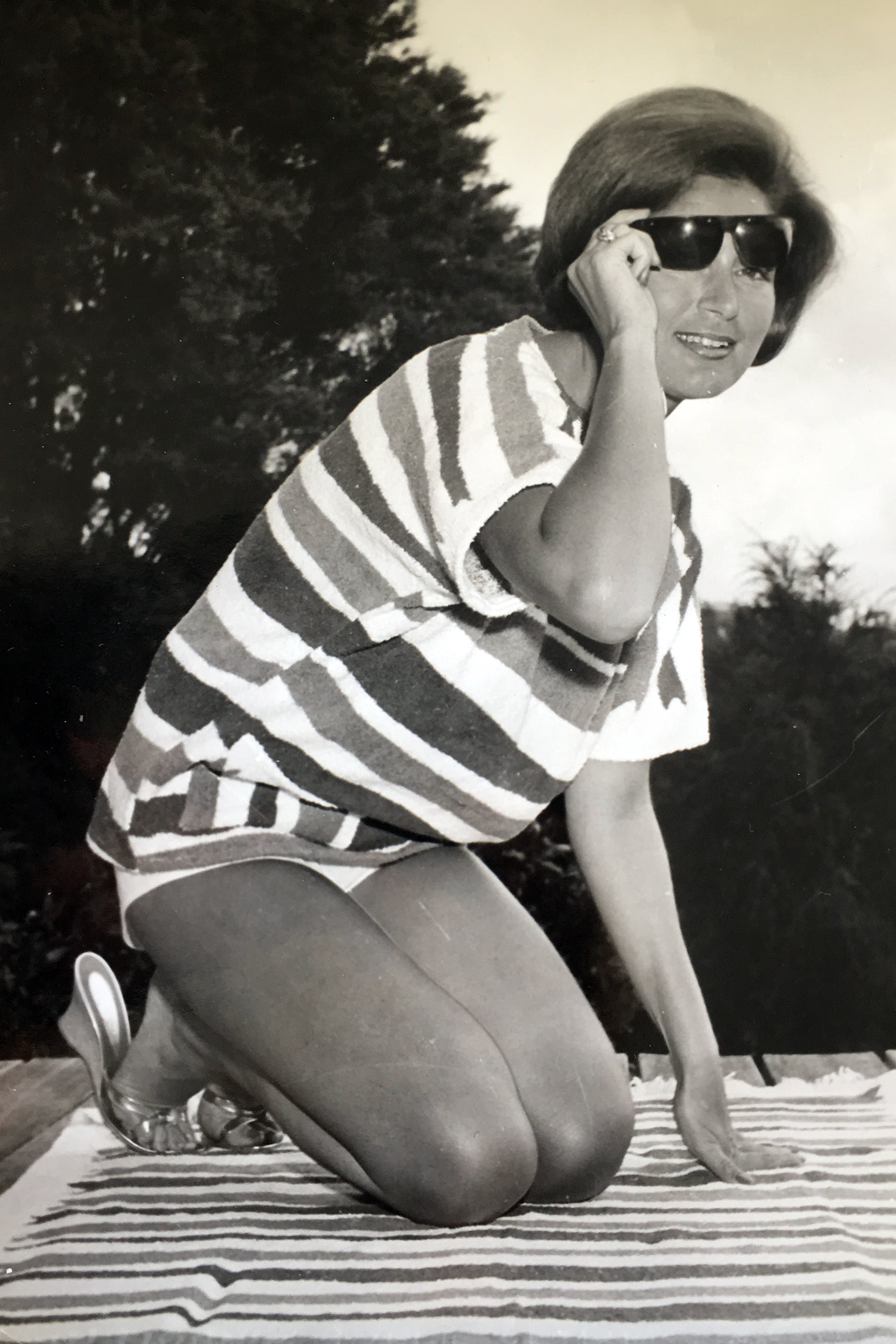 Frank Carpay began experimenting with screenprinting on white towelling in the early 1960s. He worked with his wife Carla to make and sell beach towels printed with modern motifs and geometric patterns. The success of the prints prompted the Carpays to invite their friend, Robert Leek, to design a range of beach clothing using their printed towelling. Robert's sister Else van den Muysenbergh modelled Carpay garments during a photoshoot in 1965.