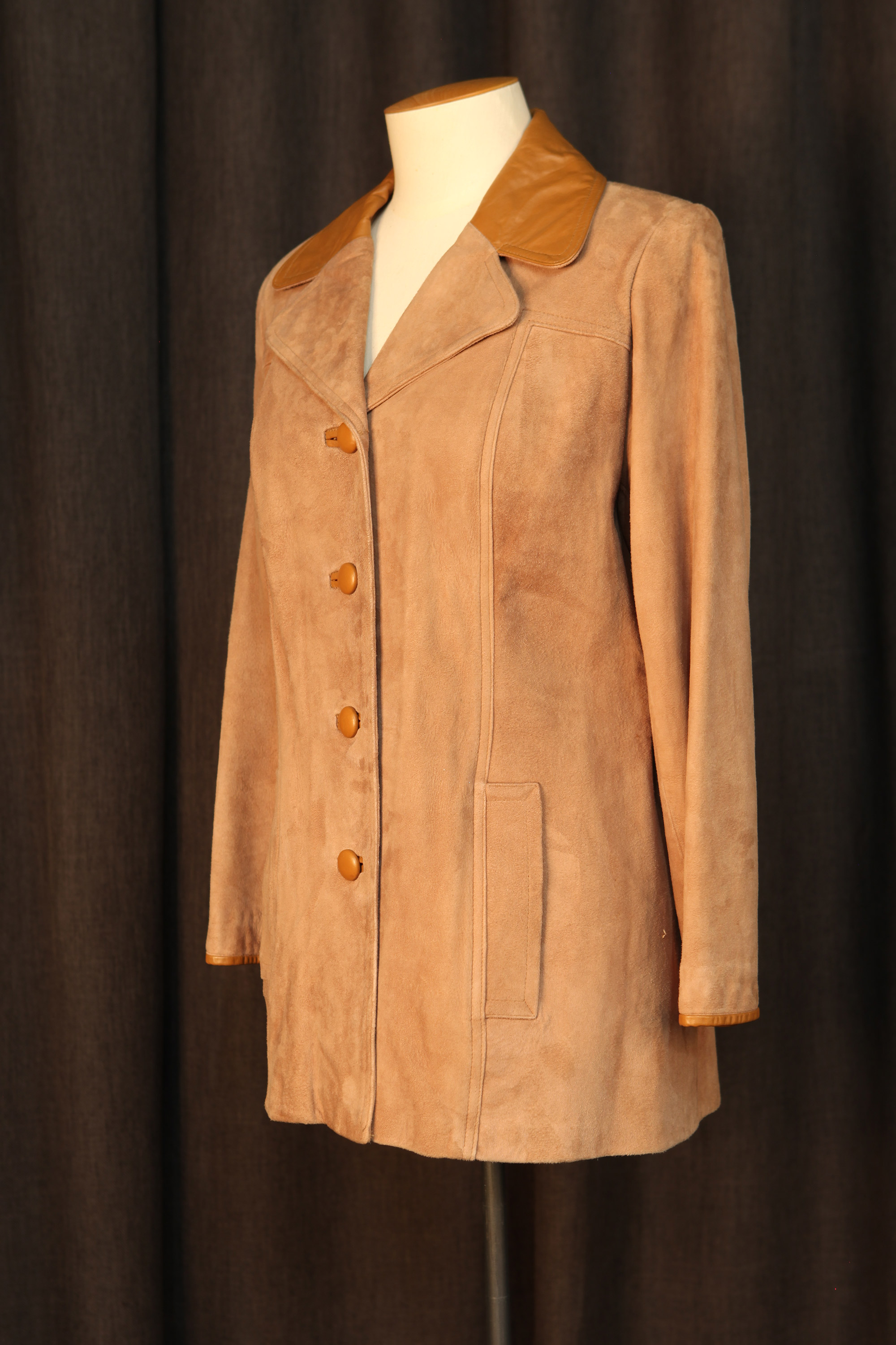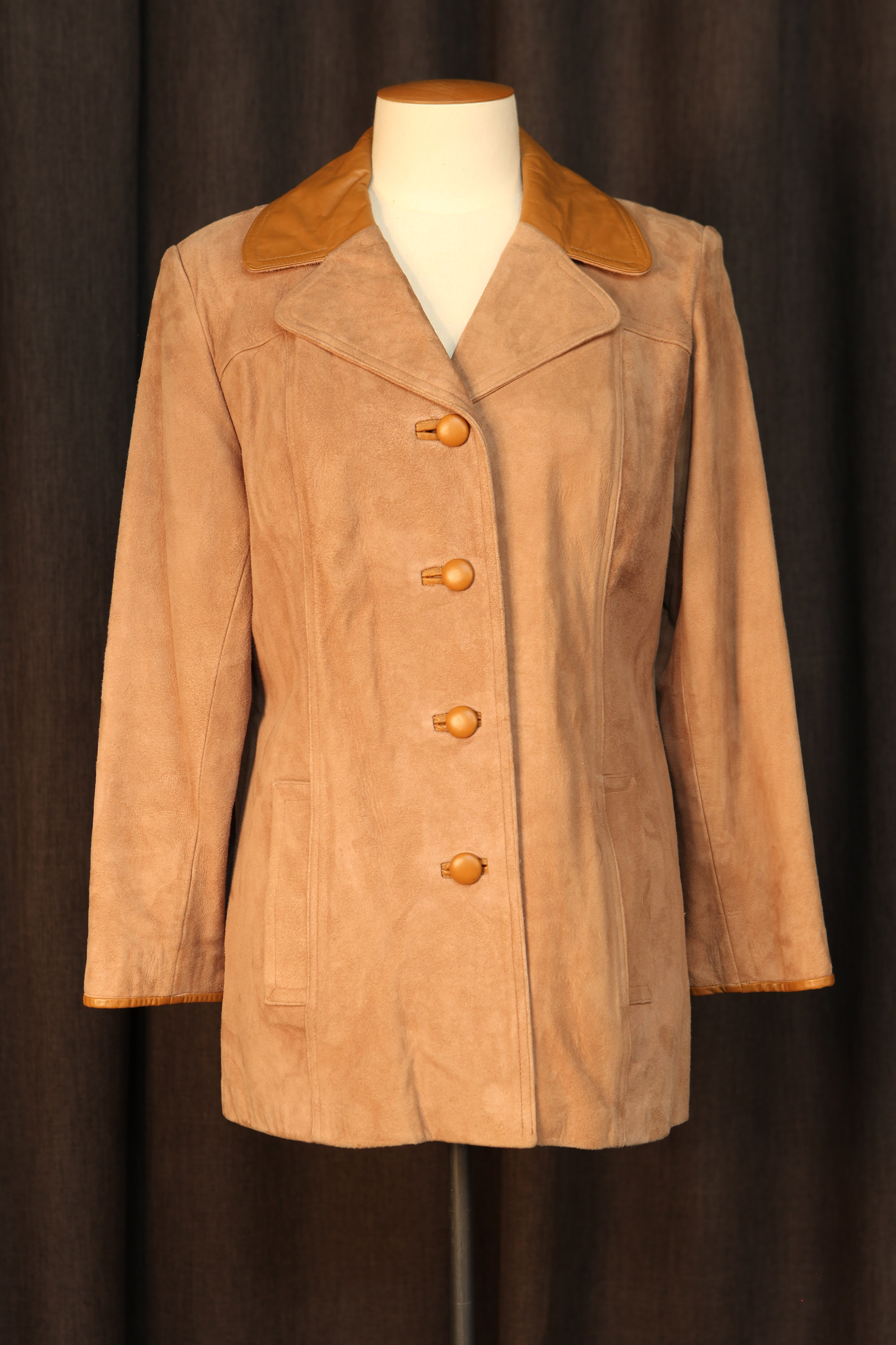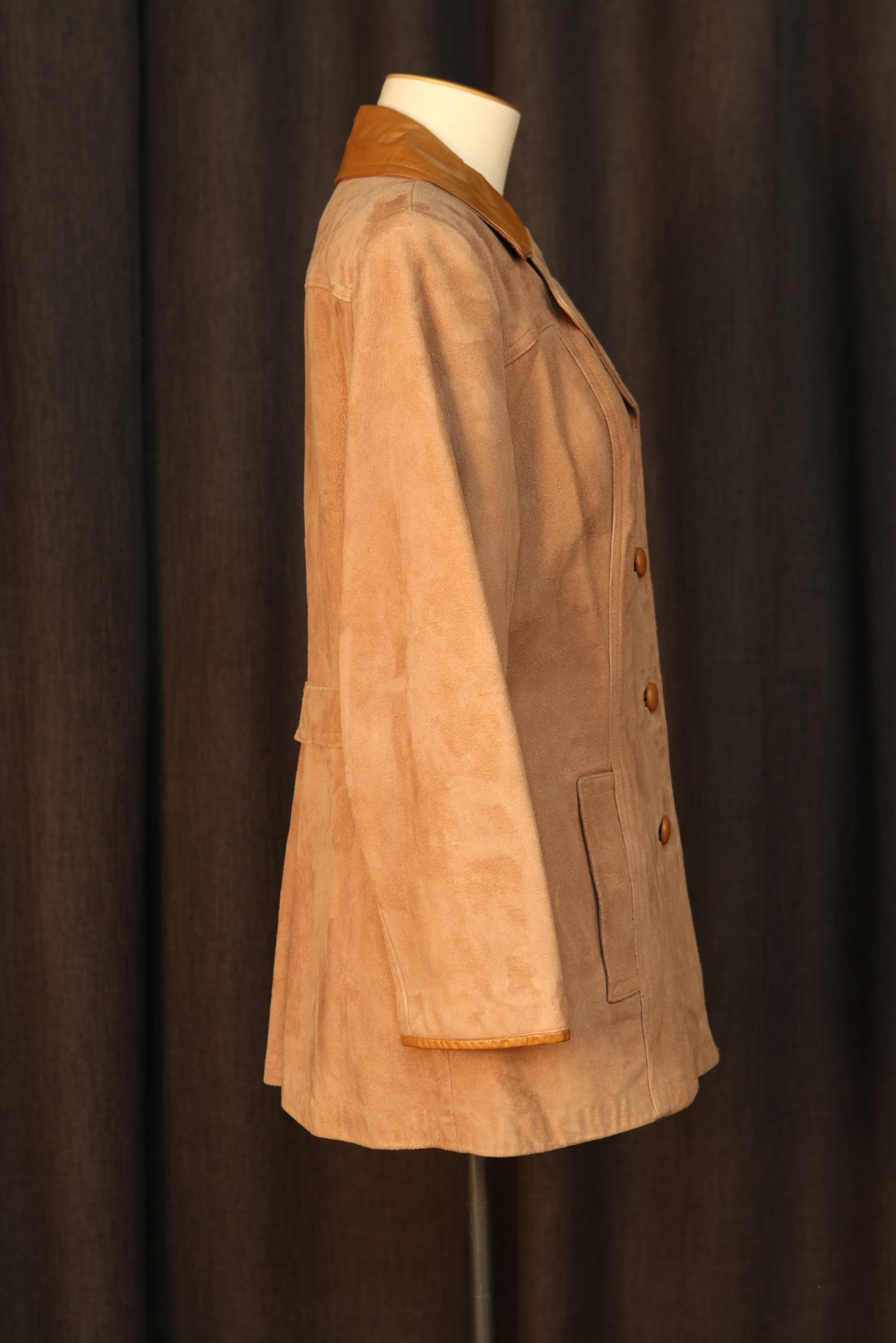 When Heather Kirk joined Mooneys Furs as a cutter in Dunedin in the 1970s, the fur scene was changing. Young alternative dressers were seeking out vintage fur coats and fox fur stoles which they wore ironically with op shop clothing or jeans, while many traditional fur coat wearers wanted a more contemporary look. Mooneys diversified by making suede and leather garments such as this 1970s era jacket.