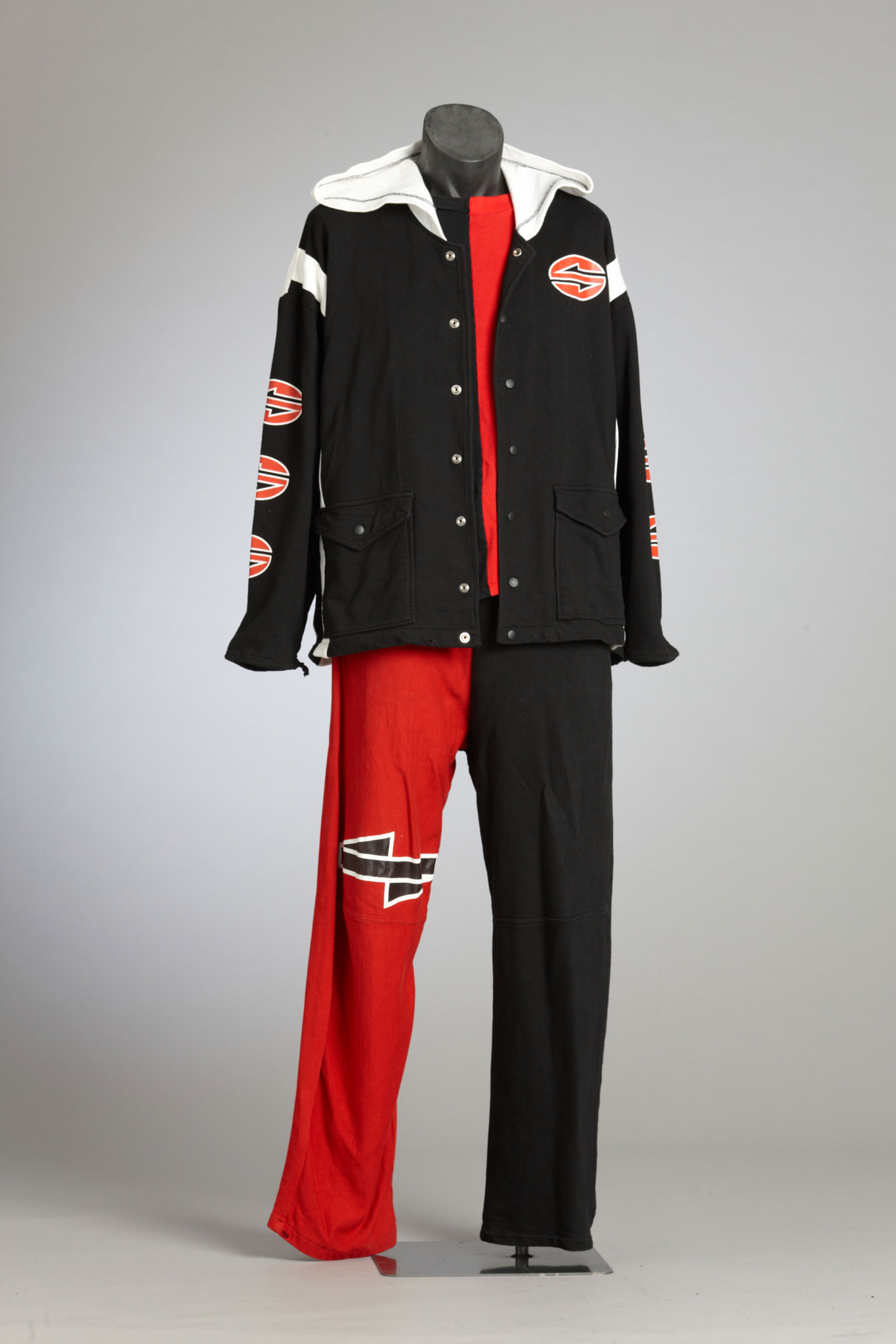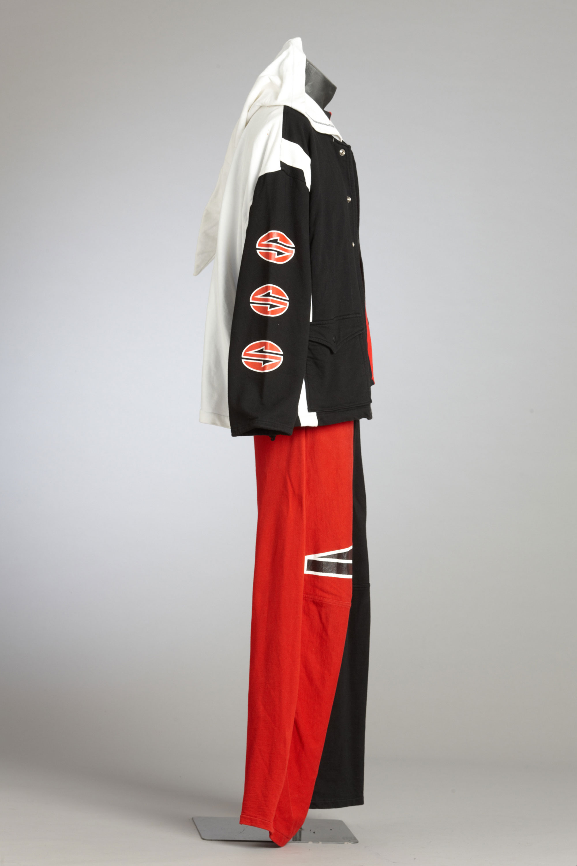 In the early 1990s when Auckland band Supergroove began their musical careers, the mainstream airwaves favoured the music of foreign artists over that of New Zealand musicians, meaning that bands had to garner their own fan base before they got any radio play. One of Supergroove’s strategies to set themselves apart was to create a very strong brand for themselves, which they did using colour. Guitarist Ben Sciascia created their red, white and black logo based on the Airfix logo, which prominently adorns their stage attire. Feline made a hoody, sweater and trousers for each member of the group. Their distinctive mix of colours was carried over to their tour posters and album covers. They even stuck to this colour palette for their music videos – watch the music video for 'You Gotta Know' on NZ On Screen. Clearly their strategies were effective as their debut album went platinum in New Zealand in 1994. Read more about wearing the colour black in the New Zealand Fashion Museum publication Black: The history of black in fashion, society and culture in New Zealand.