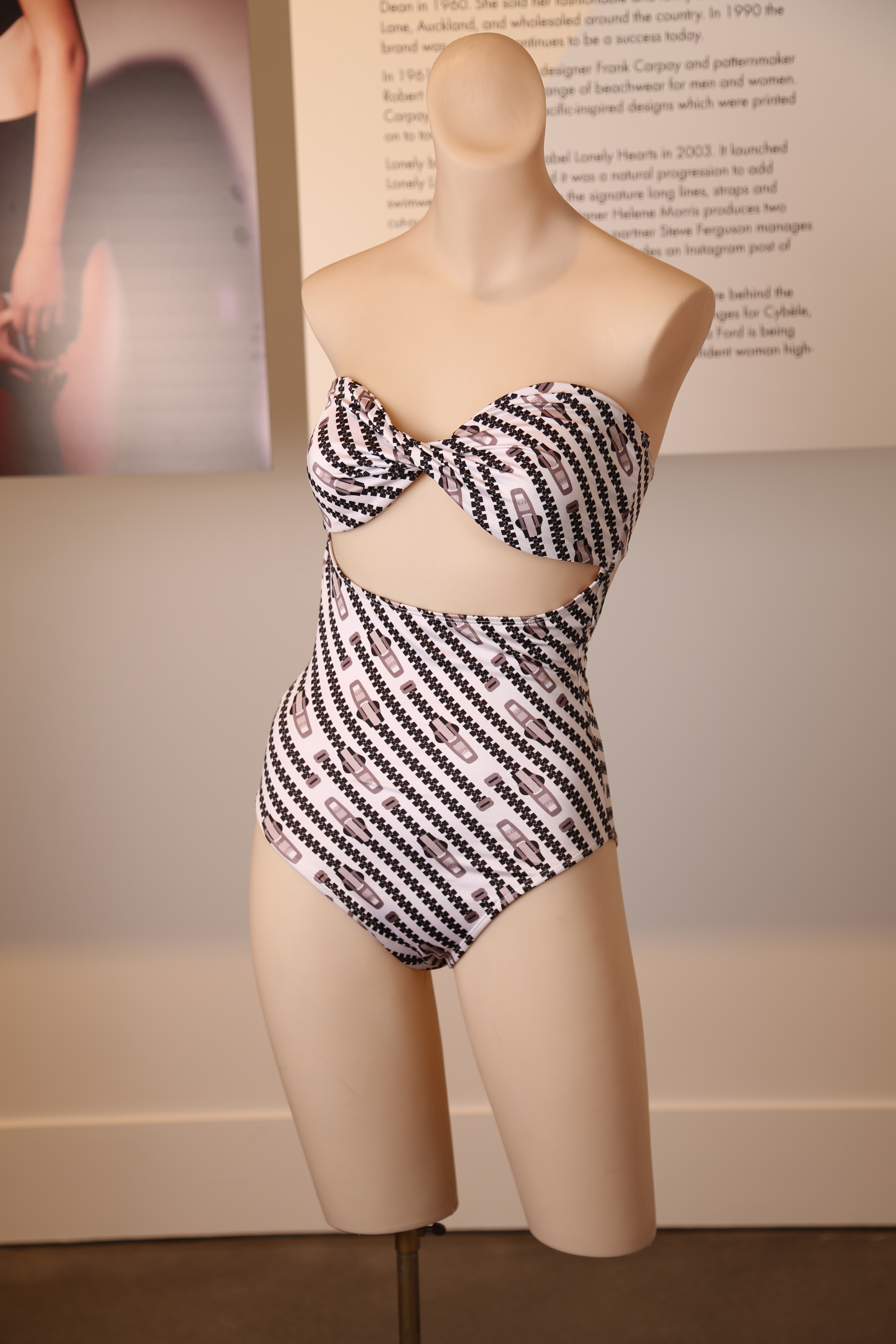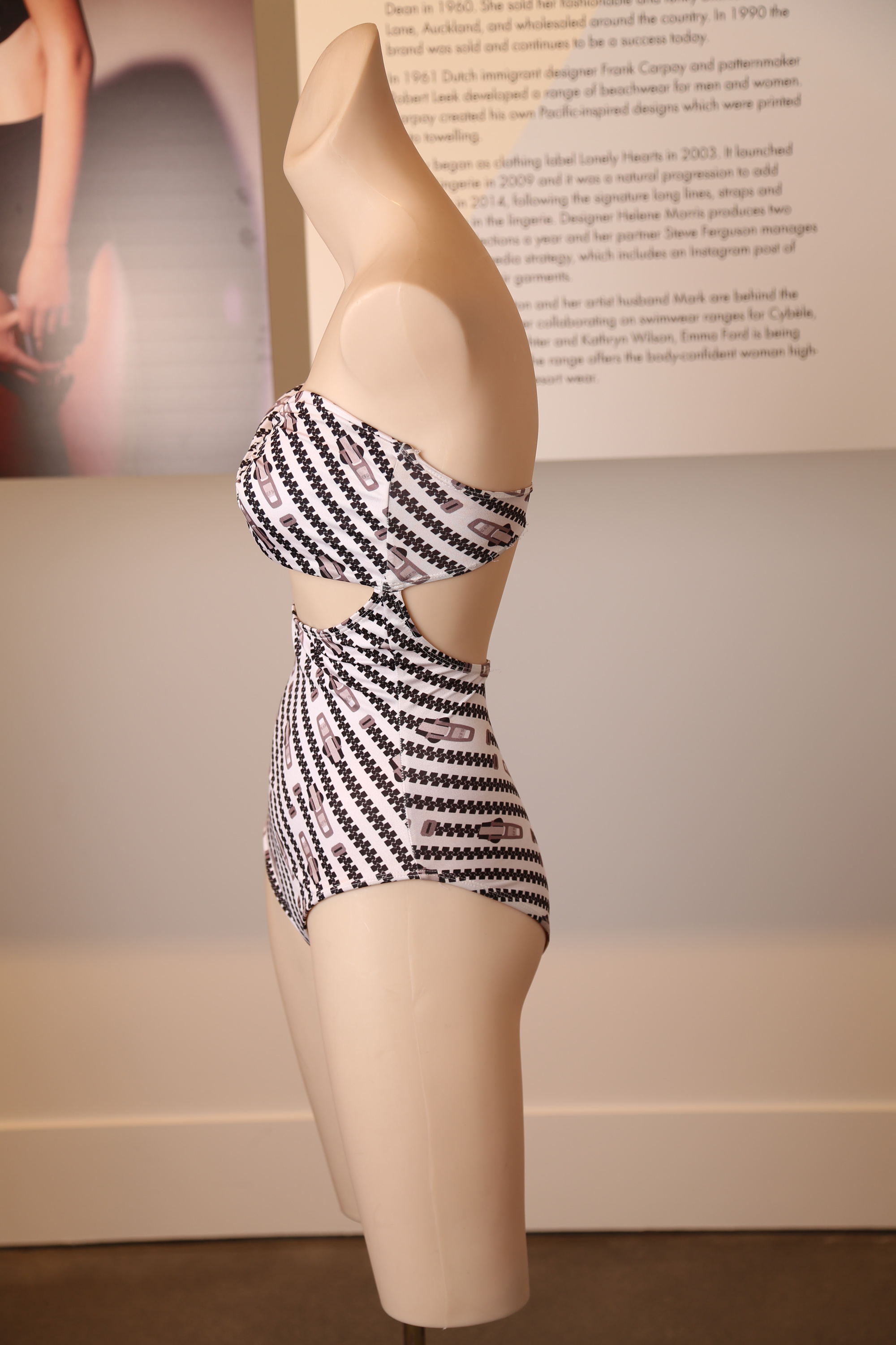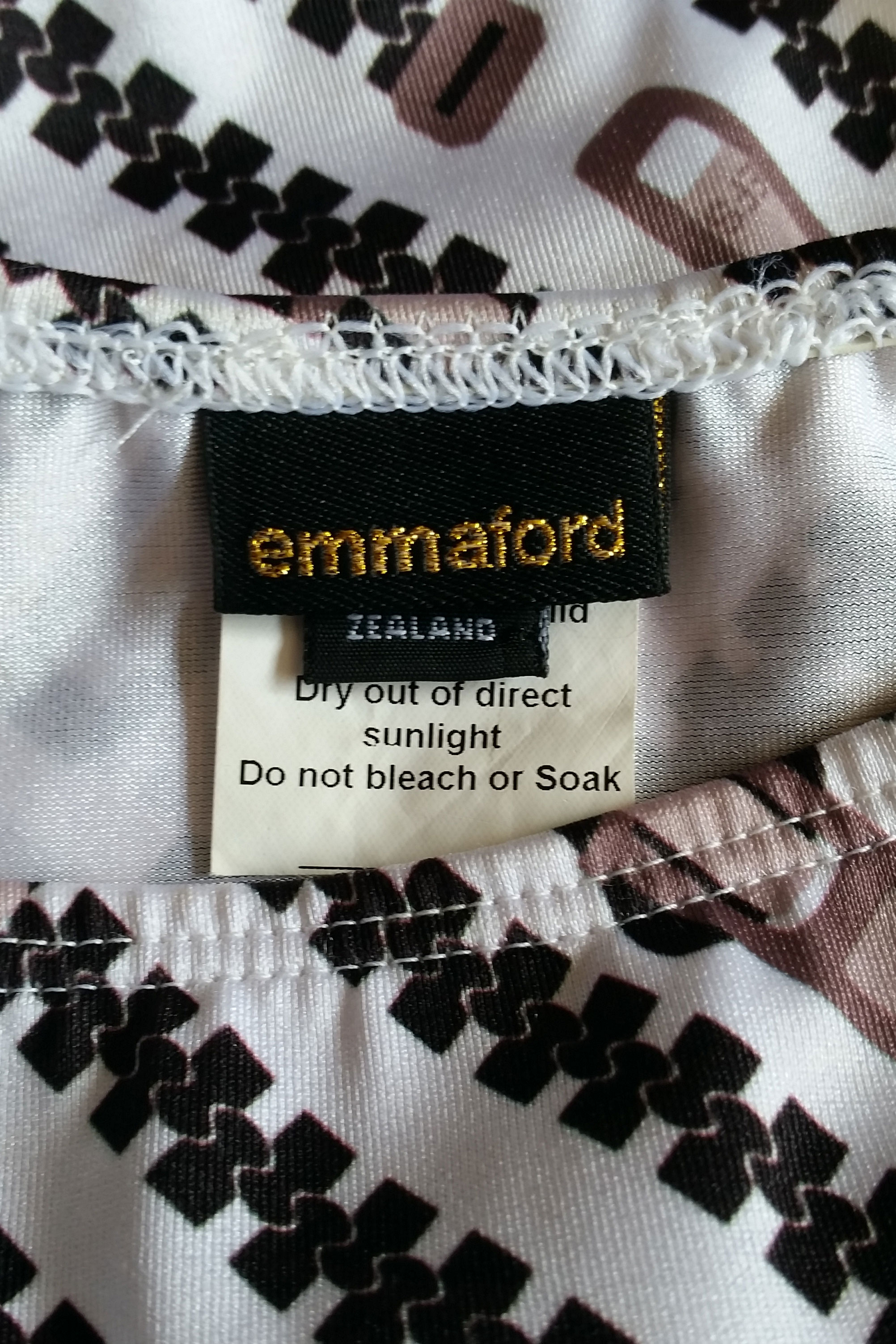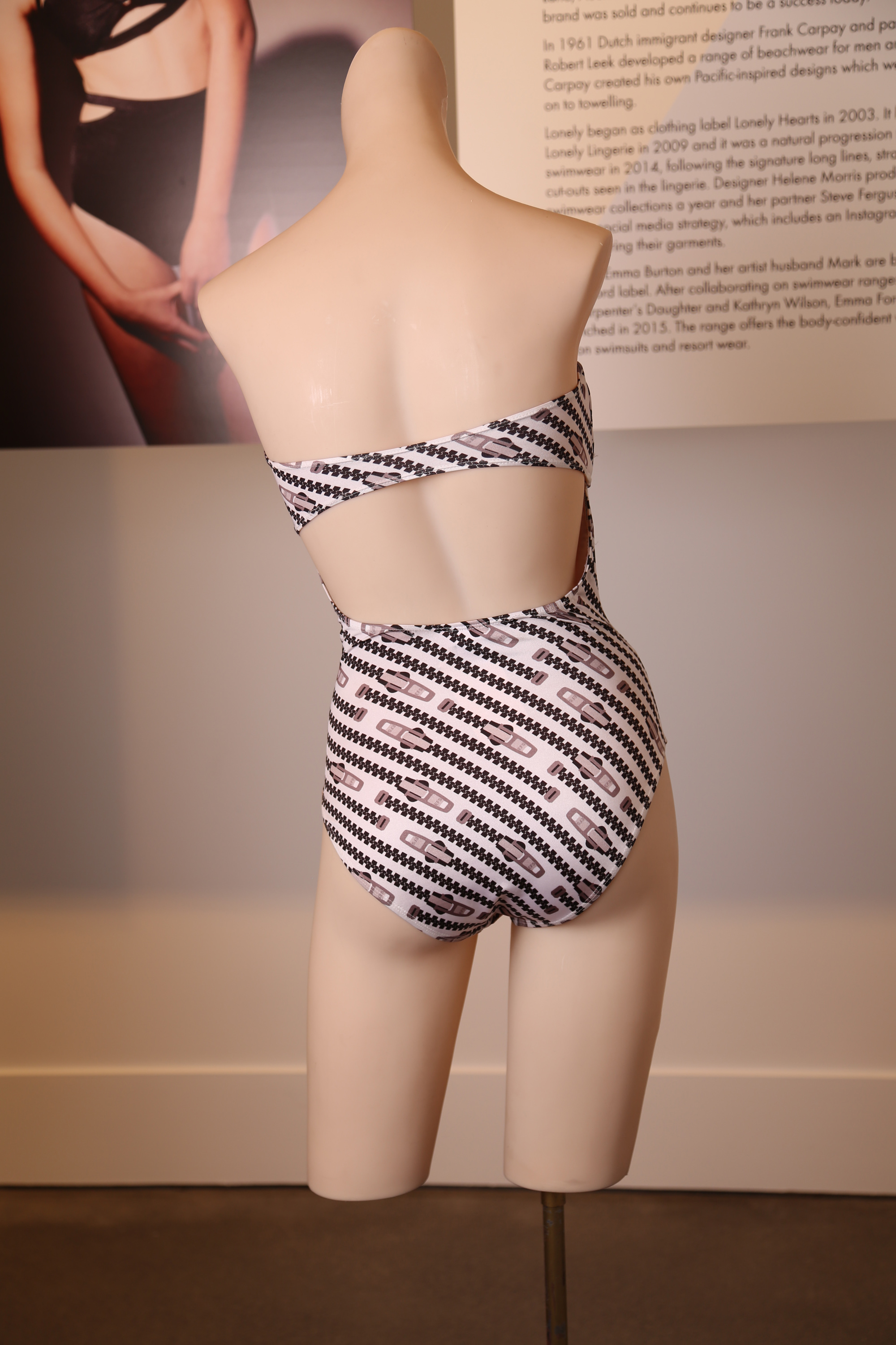 This swimsuit was made in New Zealand by Emma Ford. If you look closely with the magnifying glass you will see that the zips in the print have EFS for Emma Ford Swimwear printed on them in the place that you would usually find a YKK for example. YKK are the largest zip manufacturer in the world.