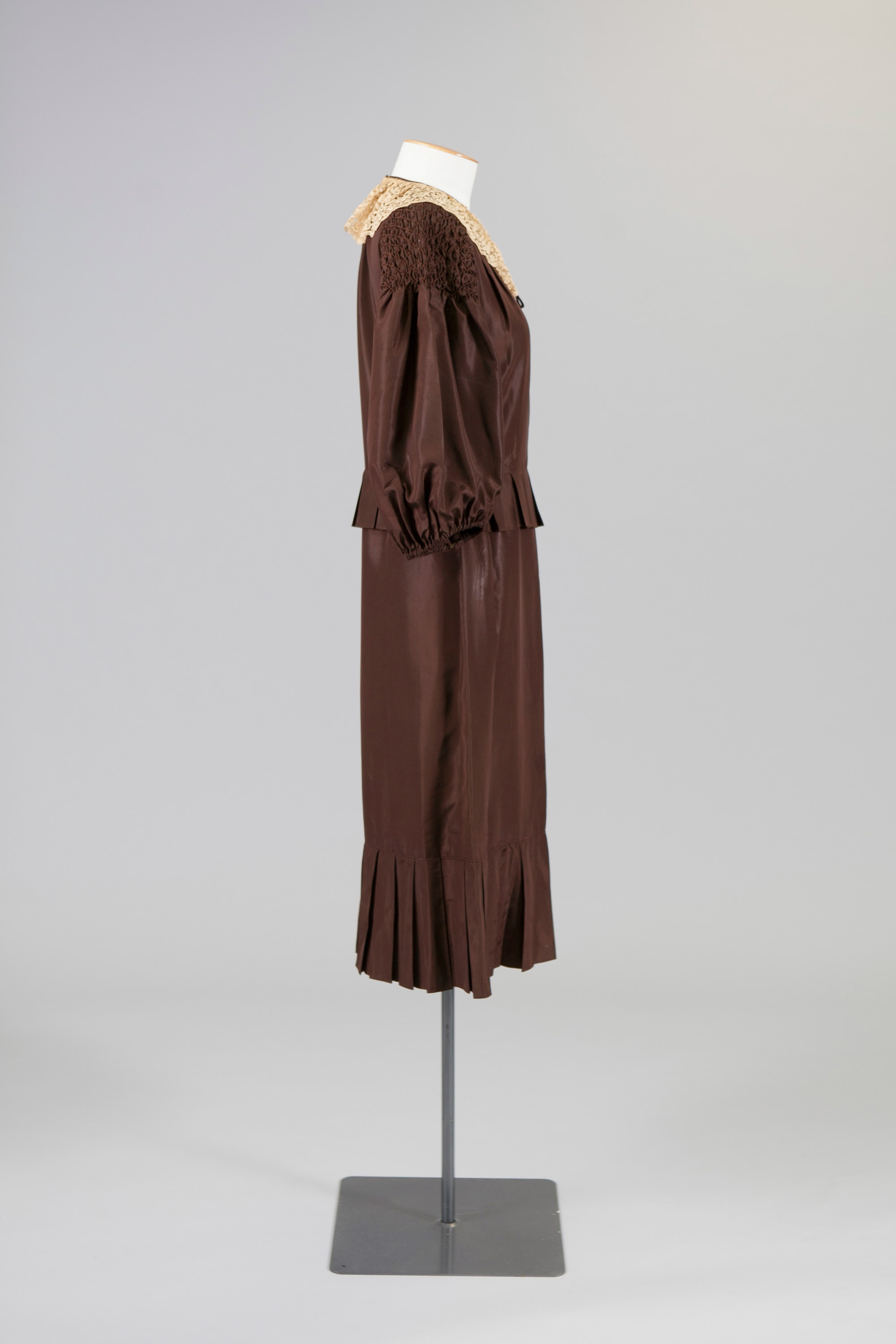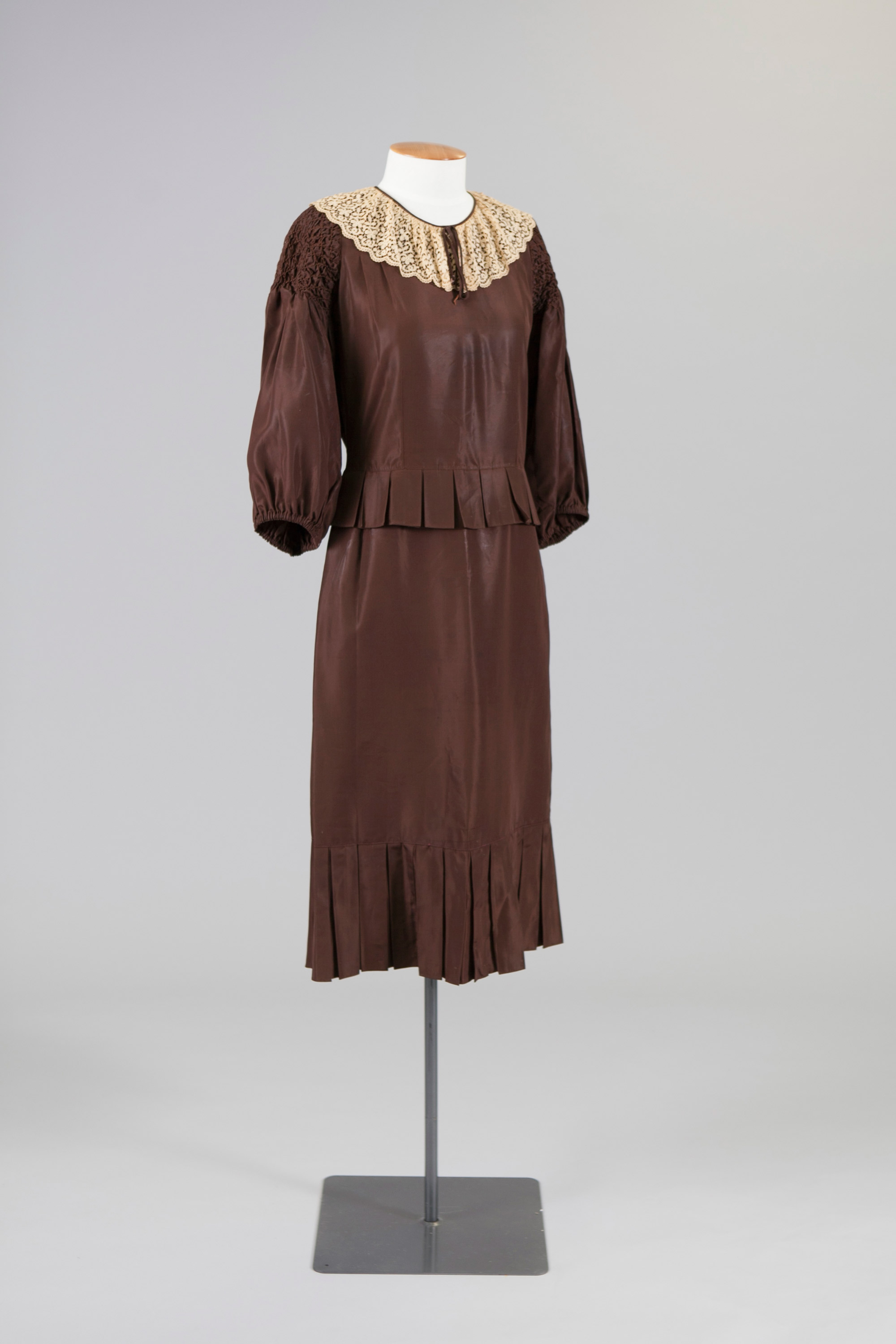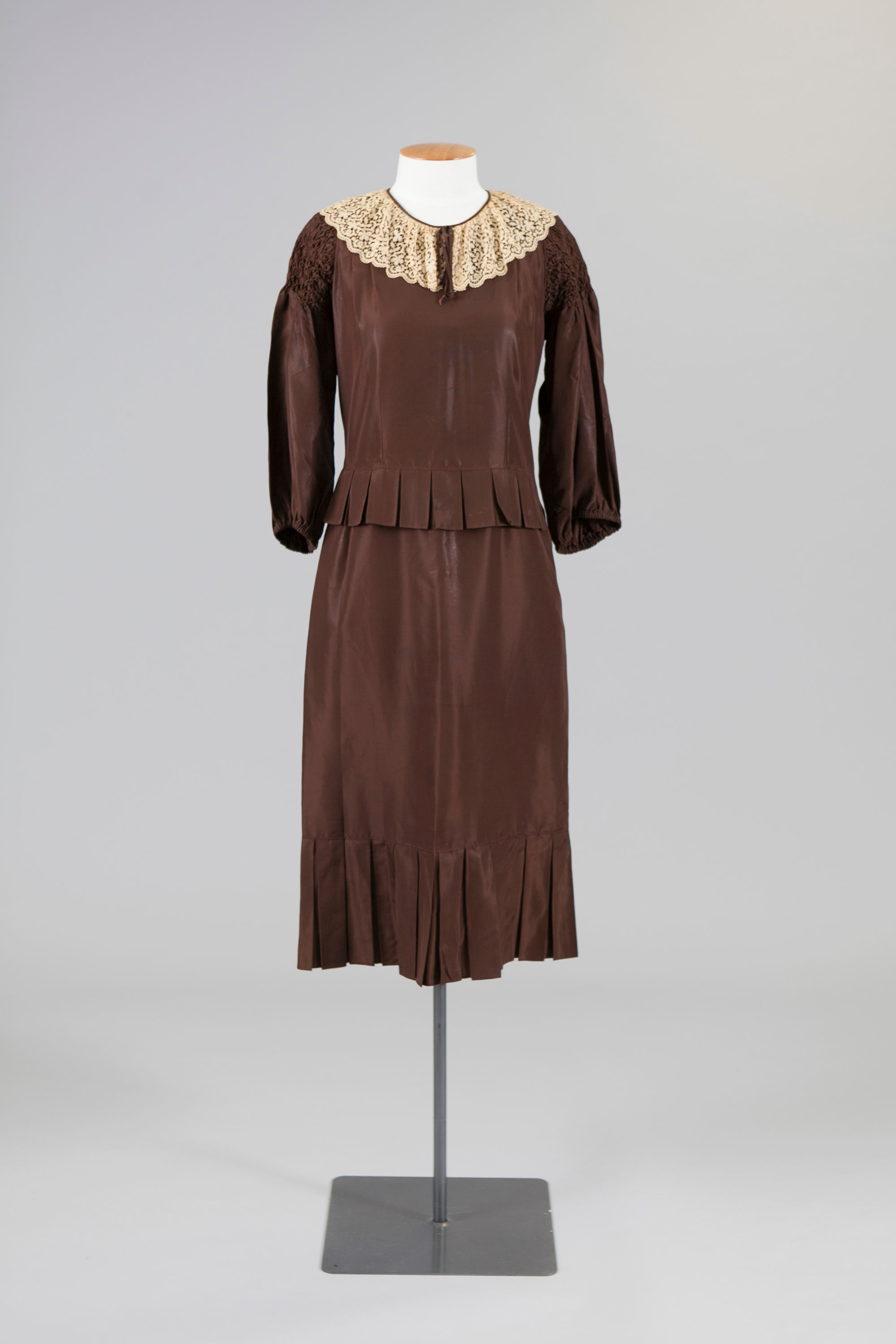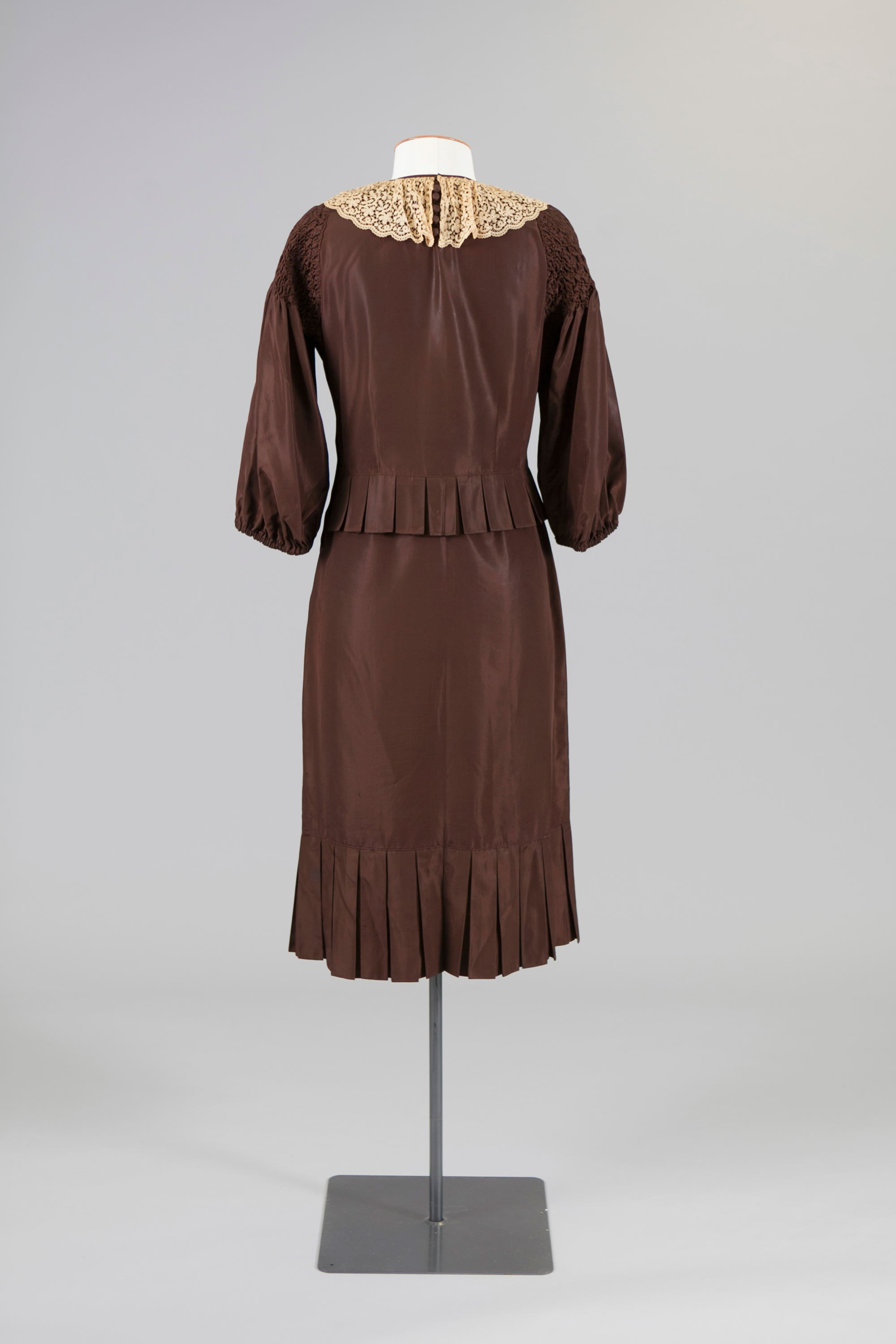 Taffeta dress with cream lace collar