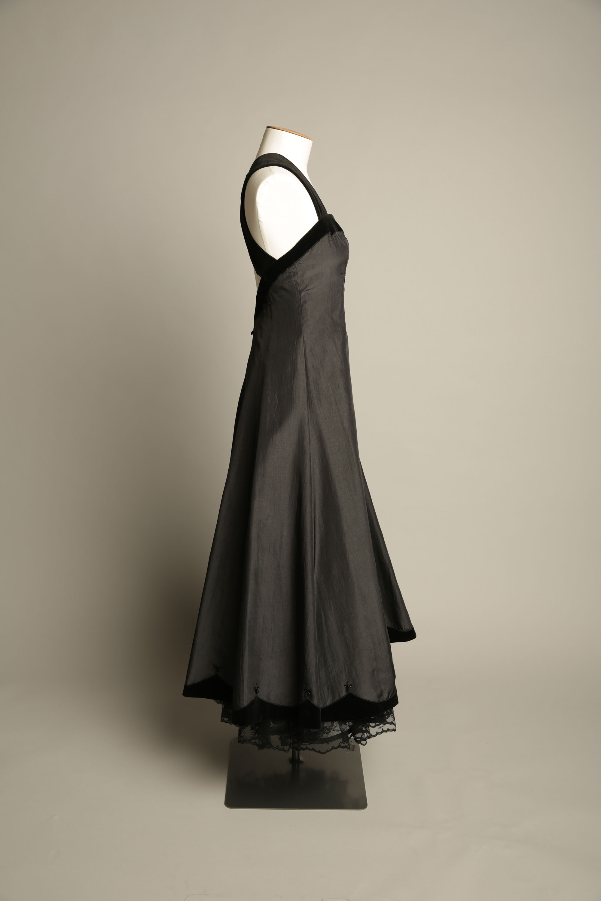 Taffeta and German cotton velvet (dress), lace and tulle (petticoat)