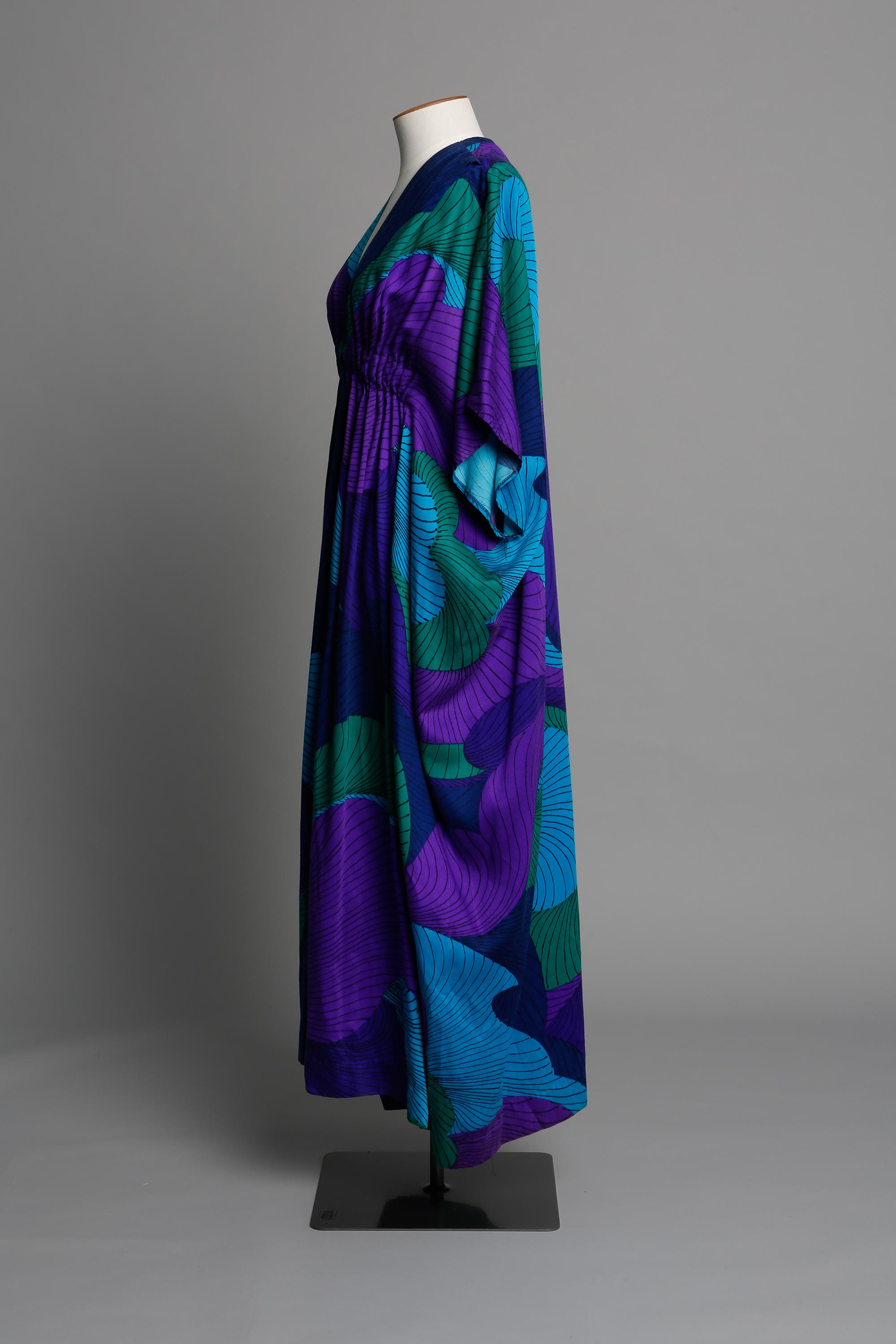 Eloise Watts was 54 in 1970 and an hotelier for most of her working life. She married Victor Watts, an expatriate East Londoner, who became a highly respected liquor industry stalwart, well-known locally and abroad. Throughout the 1960s and 1970s they ran the Civic Tavern in Auckland’s CBD, establishing its London Bar, a jazz hub with a great variety of punters and “one of the most completely furnished cocktail lounges in the country” (Auckland Tourist Times). When Eloise's daughter died suddenly, she set about raising their young granddaughter Vicki, integrating the business around family life. Dinner parties, golfing, conferences away and endless dancing were memorable highlights of the 1970s. Eloise’s wardrobe was confidently polished, representing versatility without extravagance, and was often admired. Her approach was no doubt grounded in wartime and Great Depression experiences of thrift and adaptability. The influence of her two French grandmothers’ flair for dressing and their sage advice was immeasurable. Eloise embraced their belief that, “Everything must match darling!” Read more about 1970s fashion in the New Zealand Fashion Museum publication