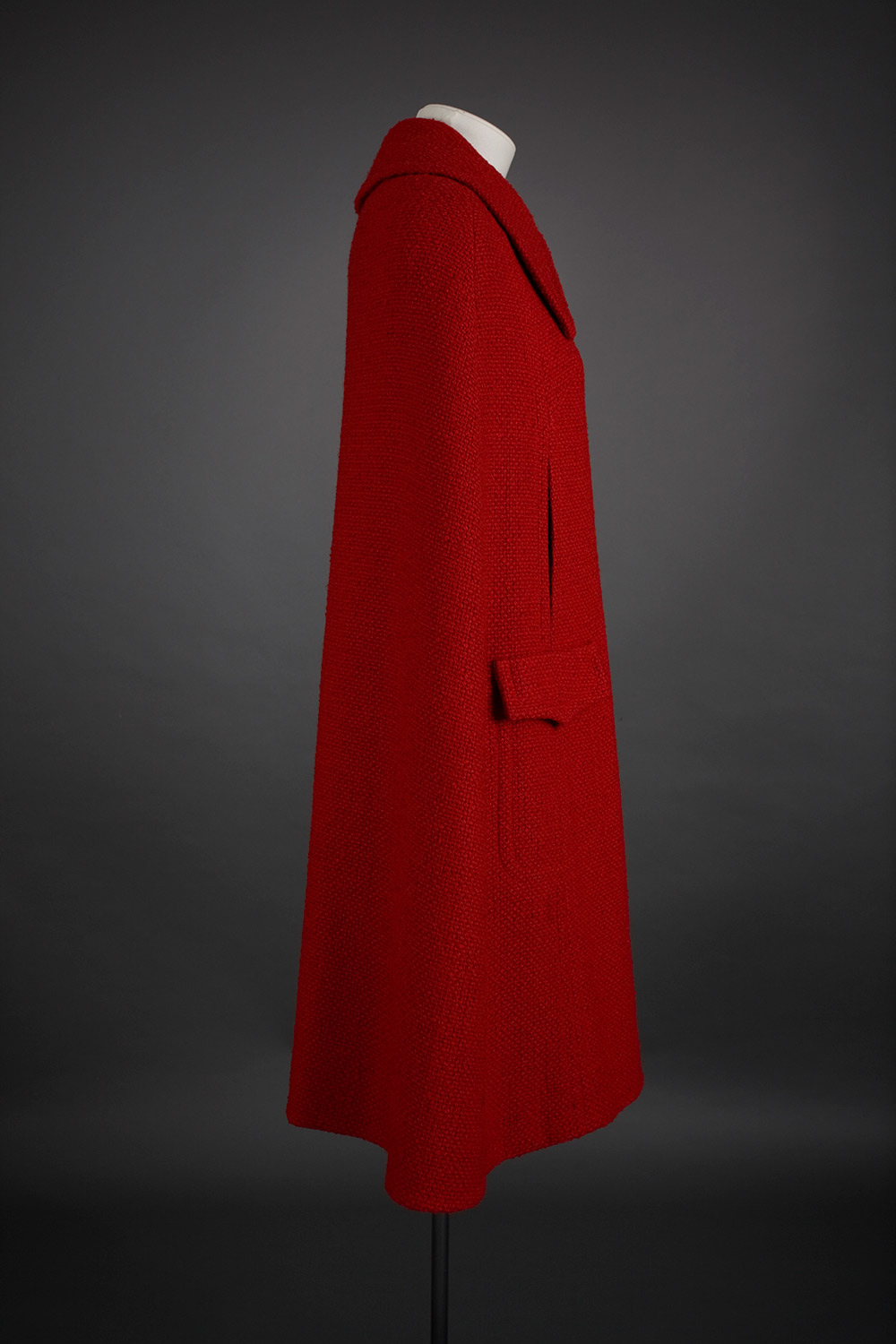 This garment was purchased originally at Ballantynes in 1967. It has been shortened later by two inches so that it could continue to be worn with good grace as fashion lengths changed. Read more about Gus Fisher and the El Jay label in the New Zealand Fashion Museum publication Looking Terrific: The story of El Jay.