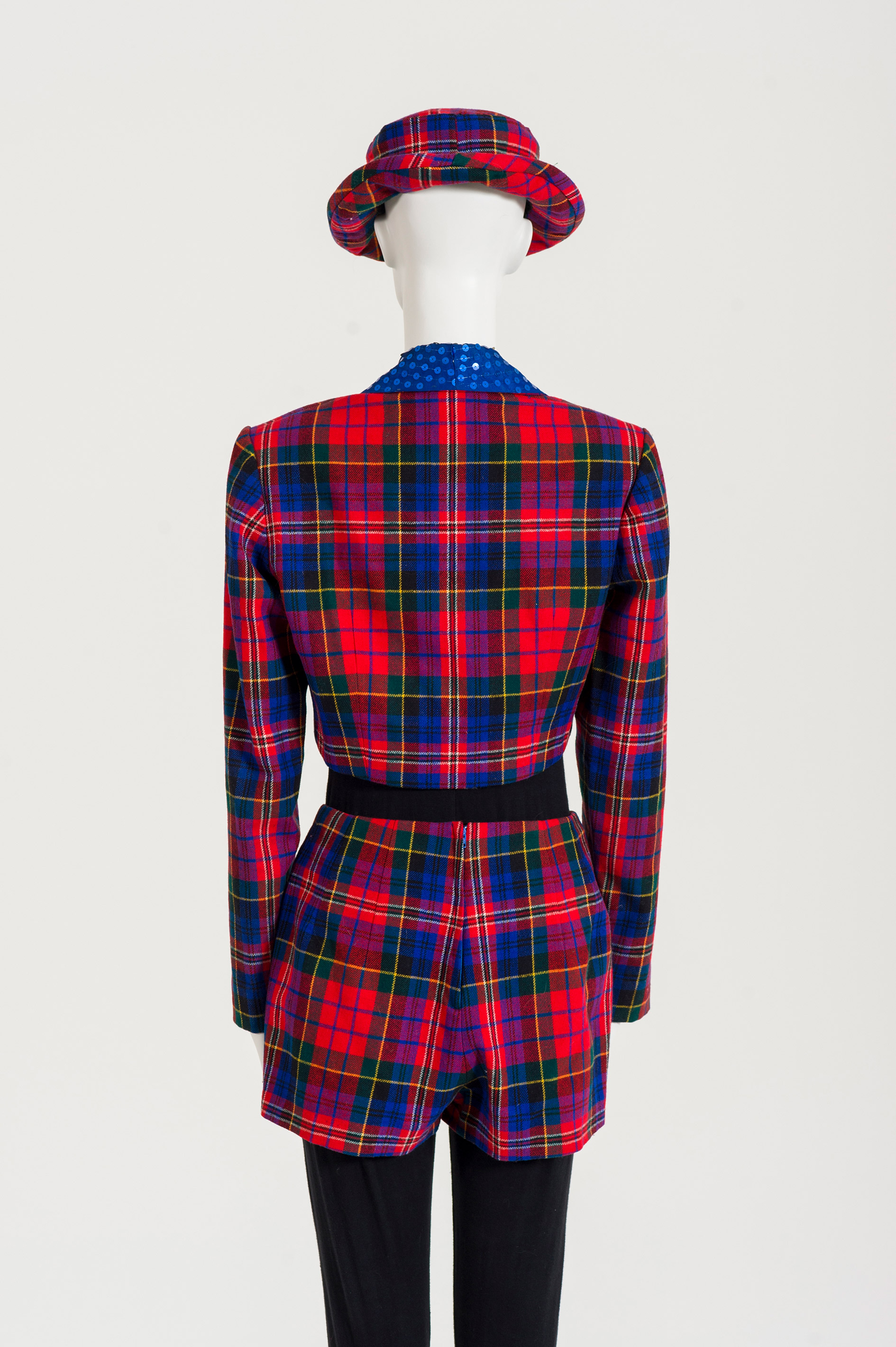 Sarah Chisnall first entered the Benson & Hedges Fashion Design Awards in 1989, and in 1991 she won the Young Designer Award with this tartan ensemble. Sarah designed under the label Sugoi, which she sold in the Christchurch boutique, Sugoi Hot Couture, that she owned with her mother Janet.