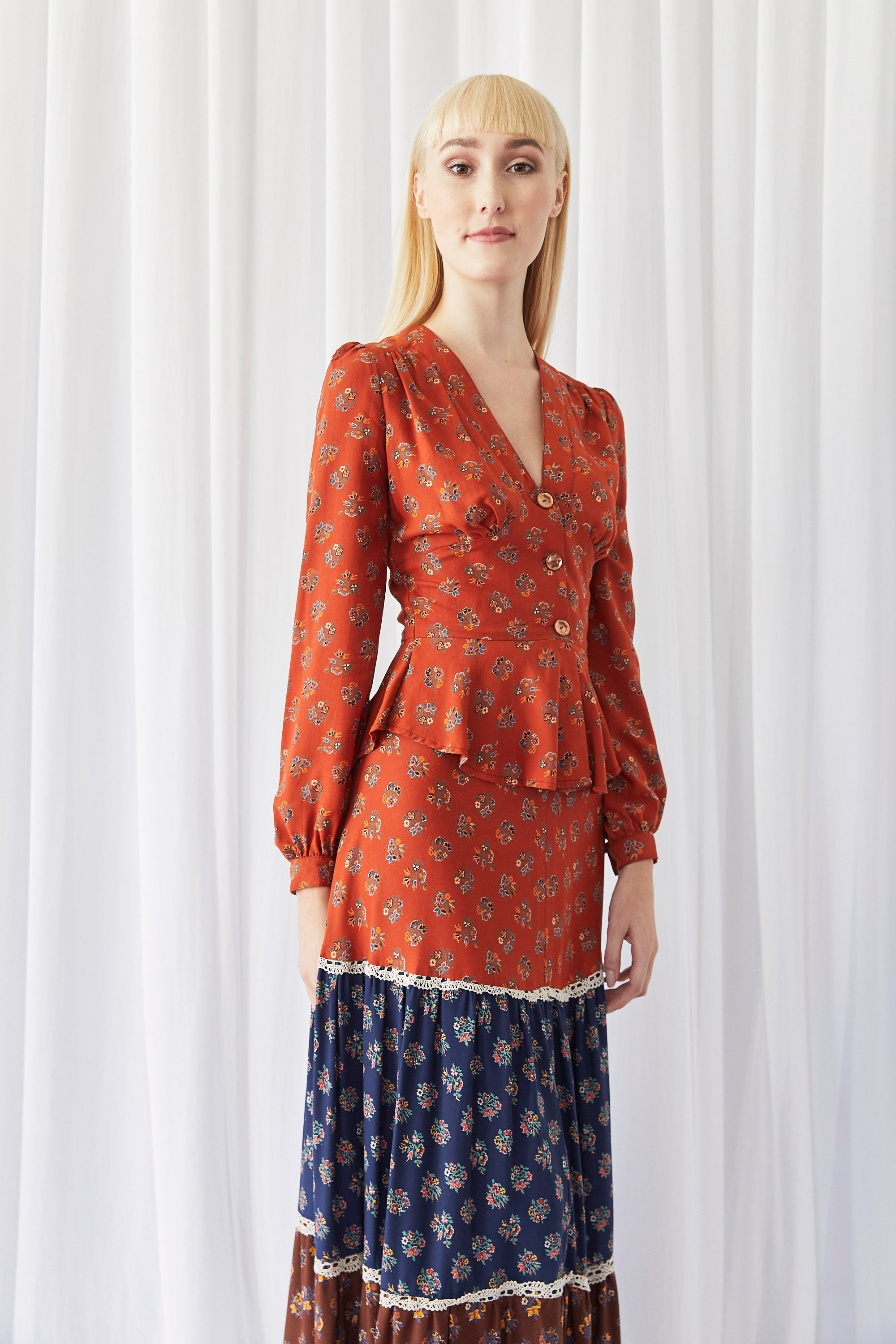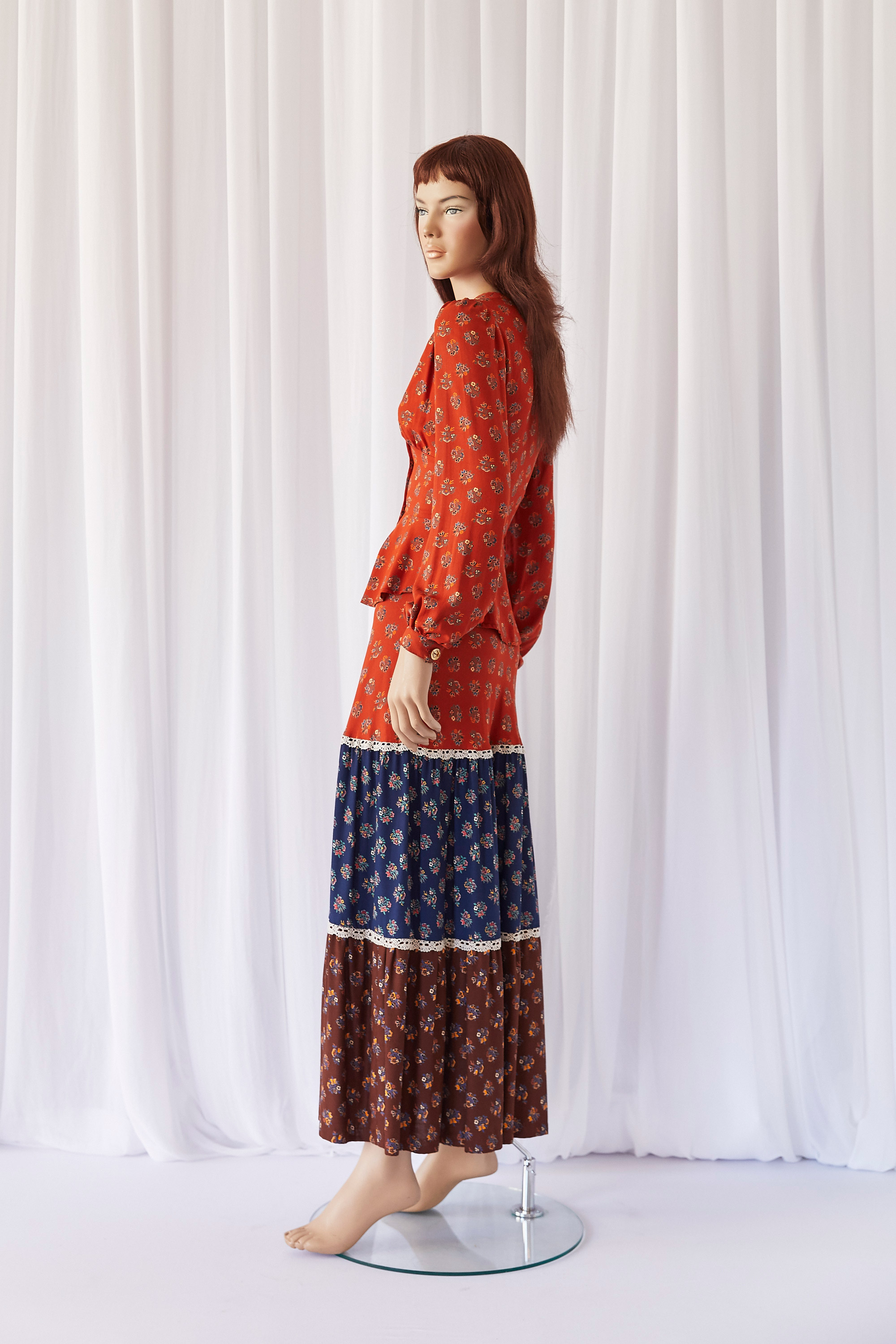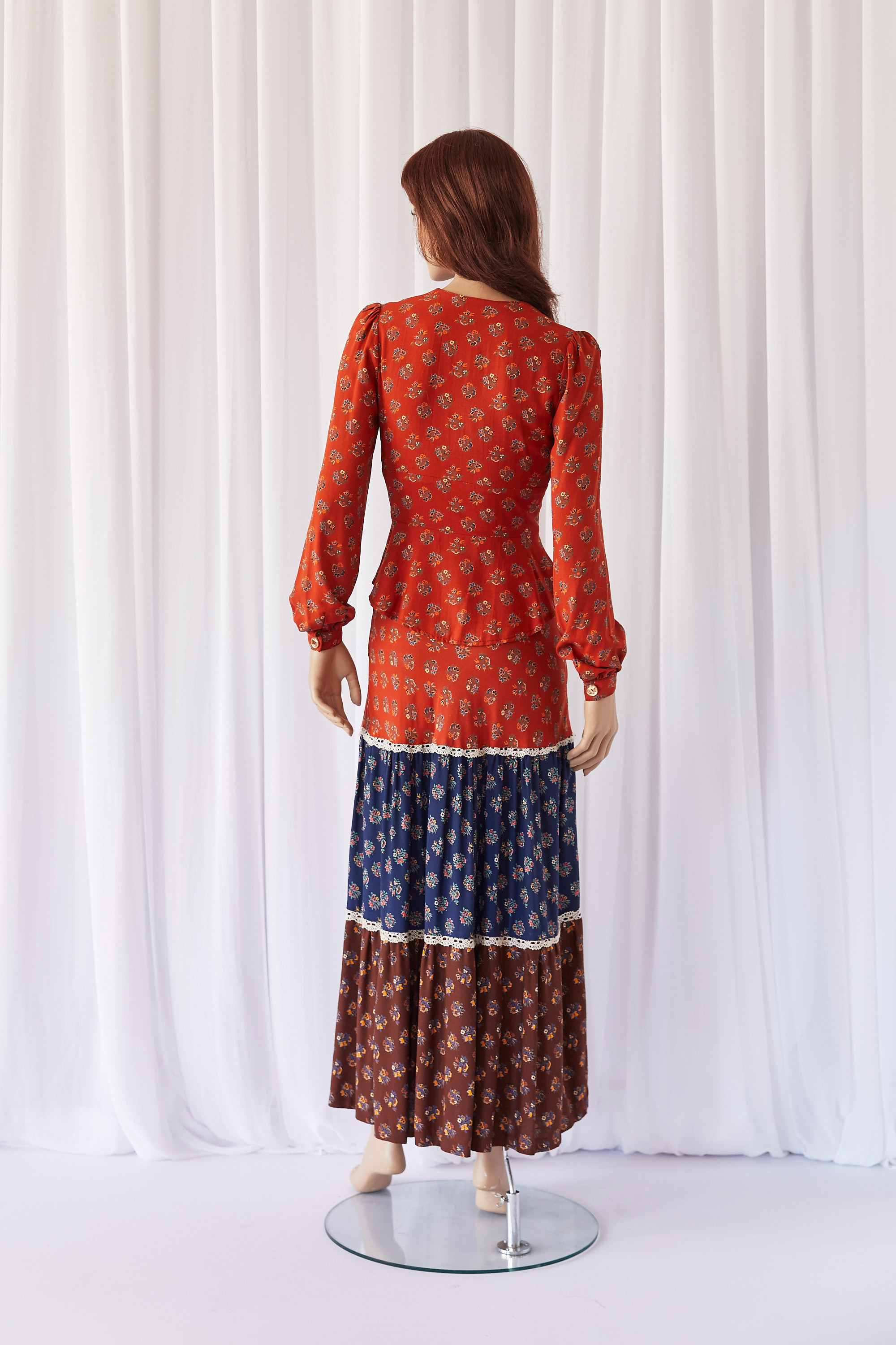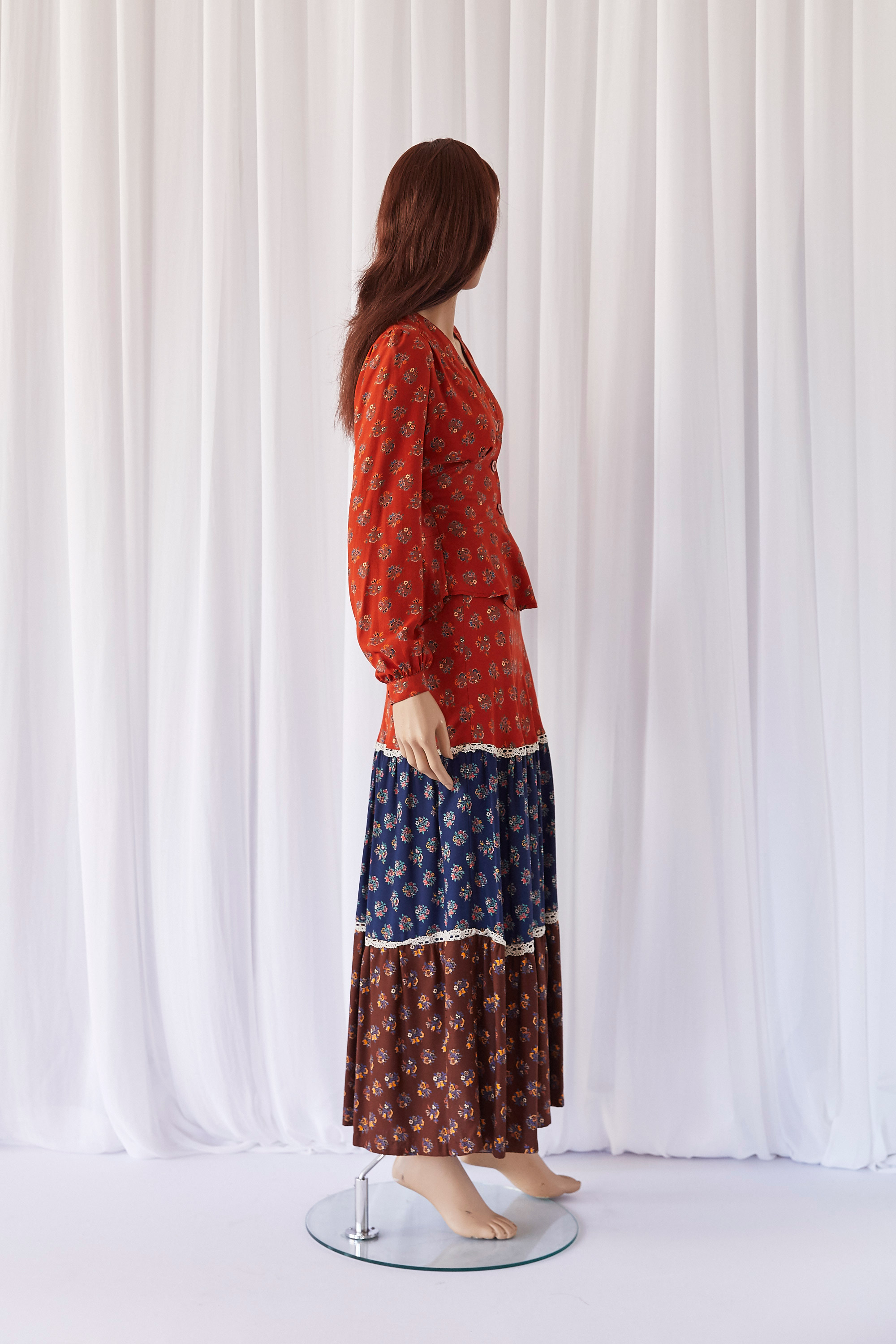 Tiered skirt and fitted blouse