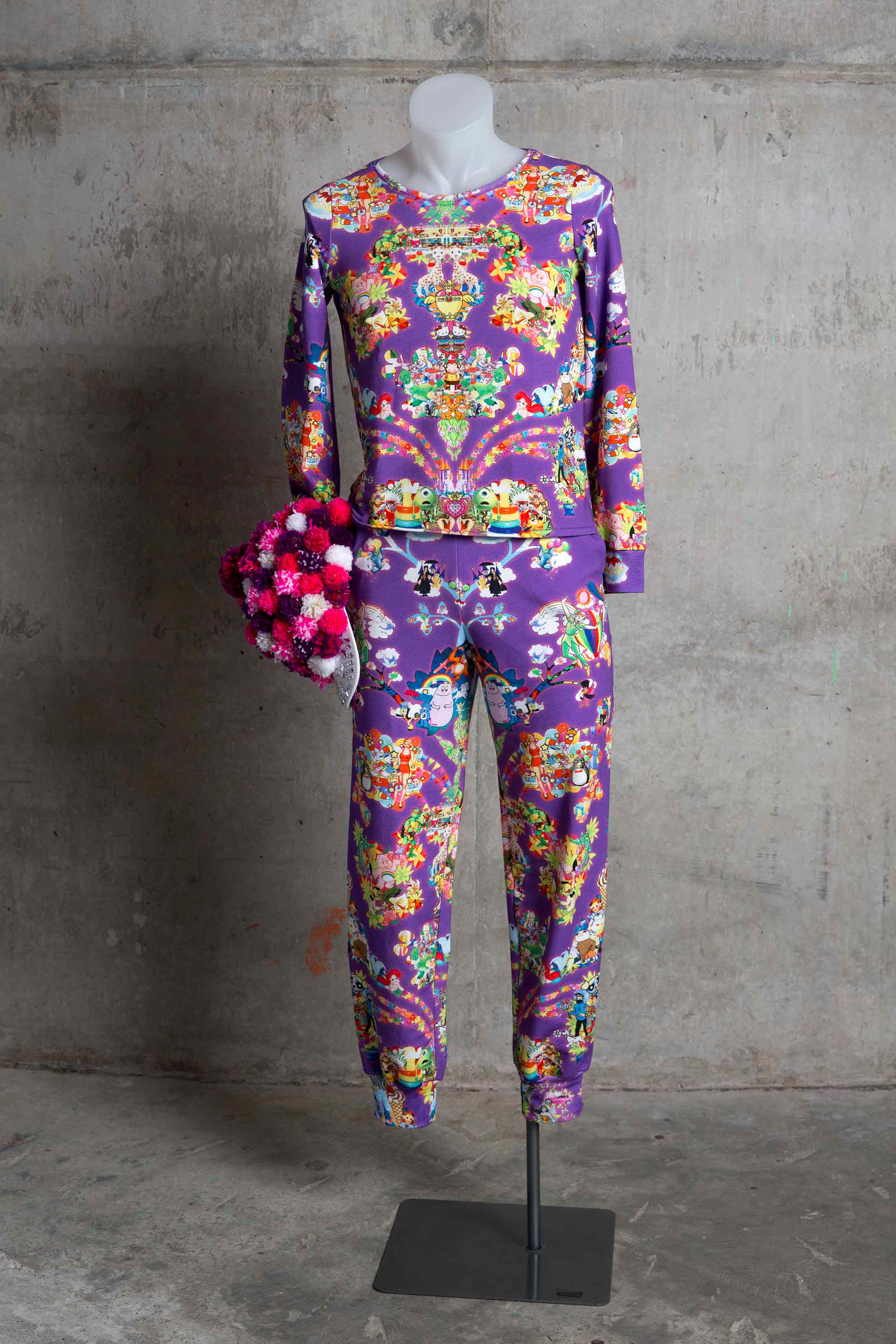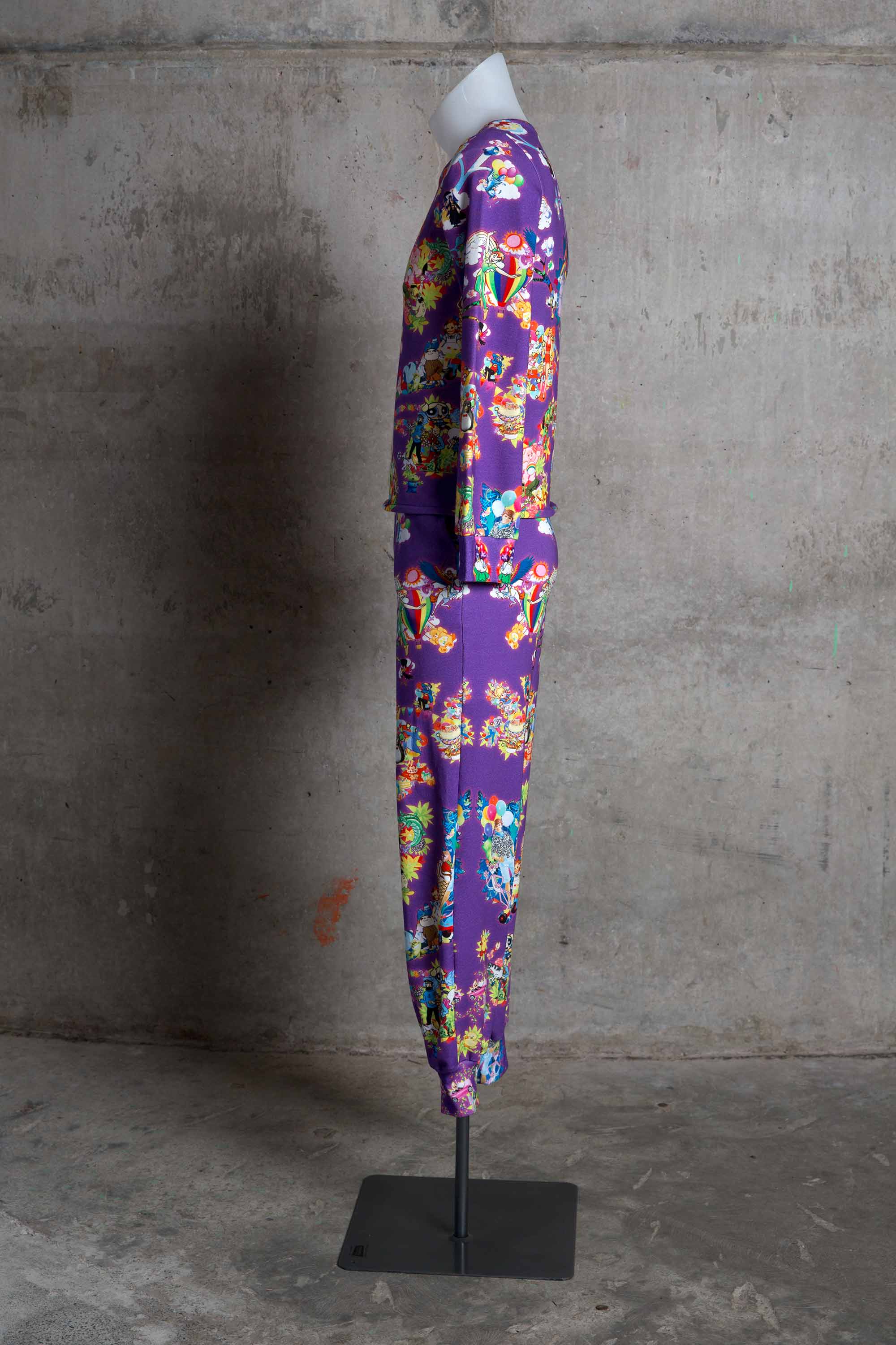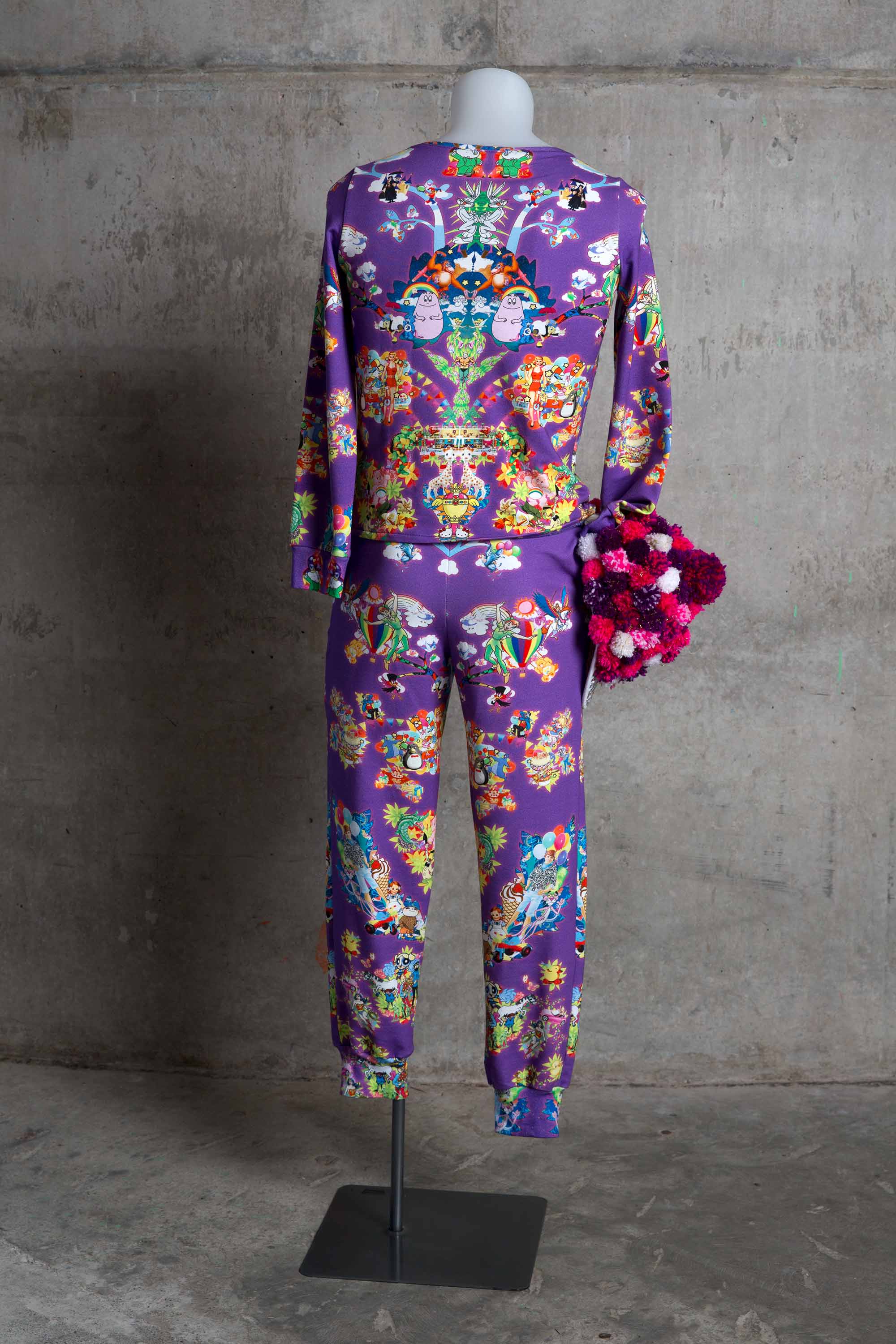 The tracksuit is made from a symmetrical digital print.