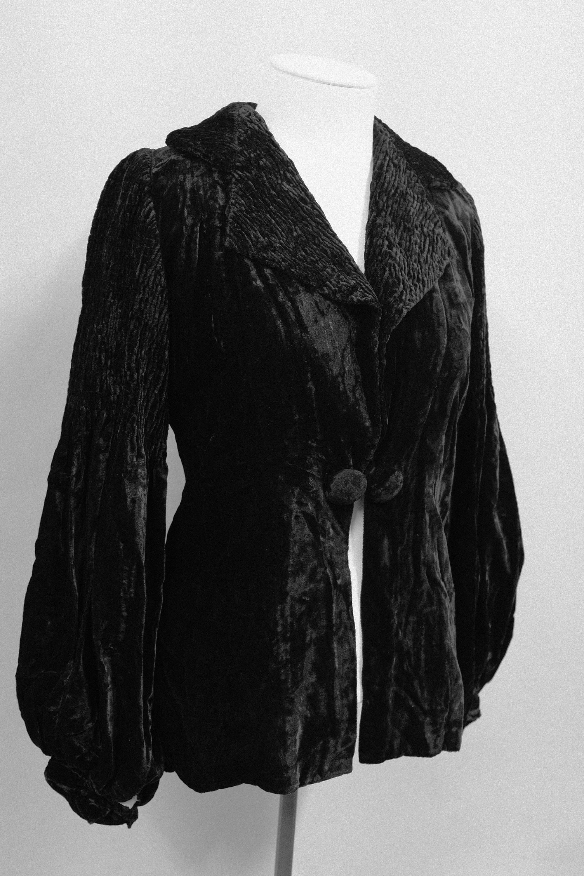 Velvet jacket with self-covered buttons