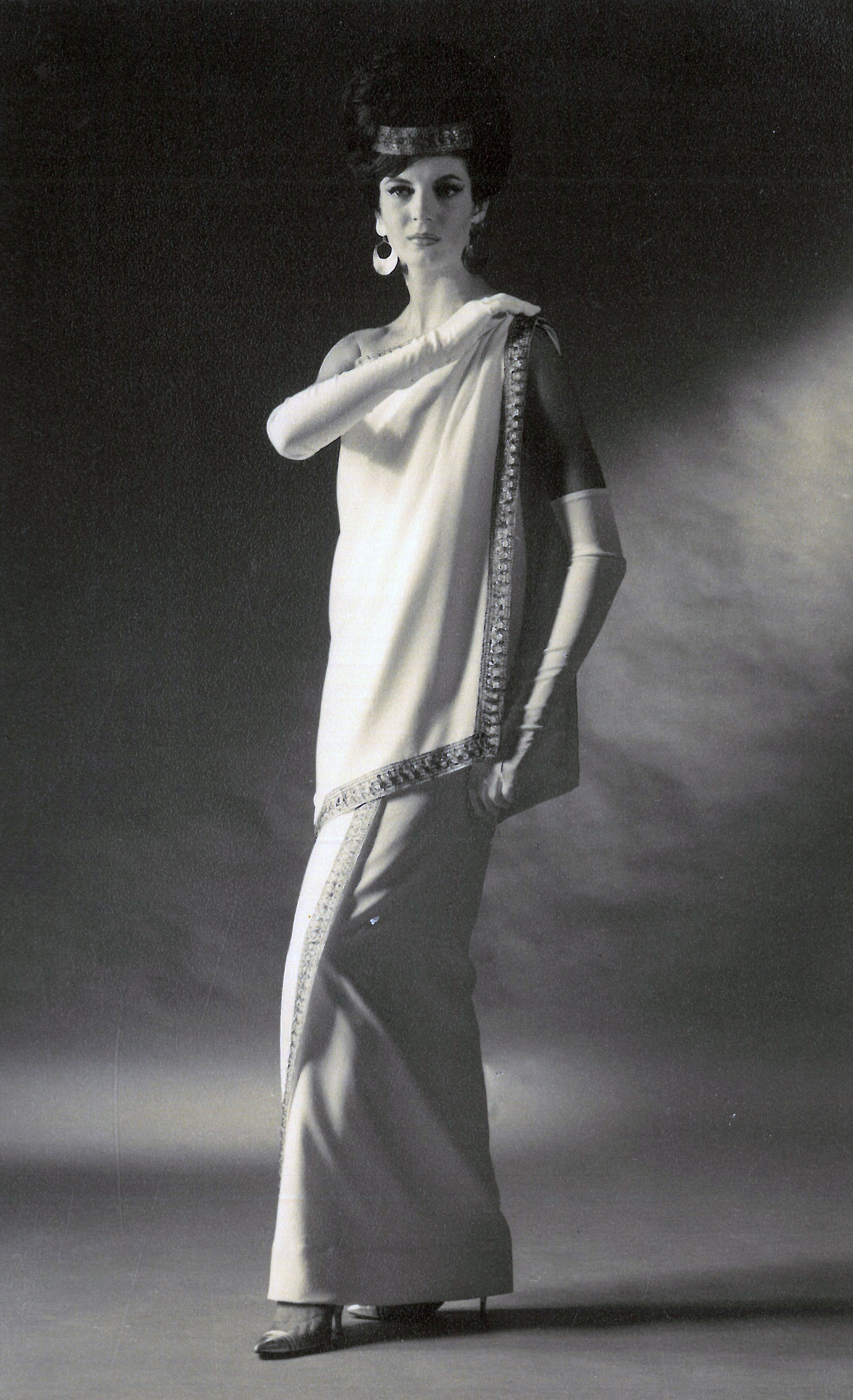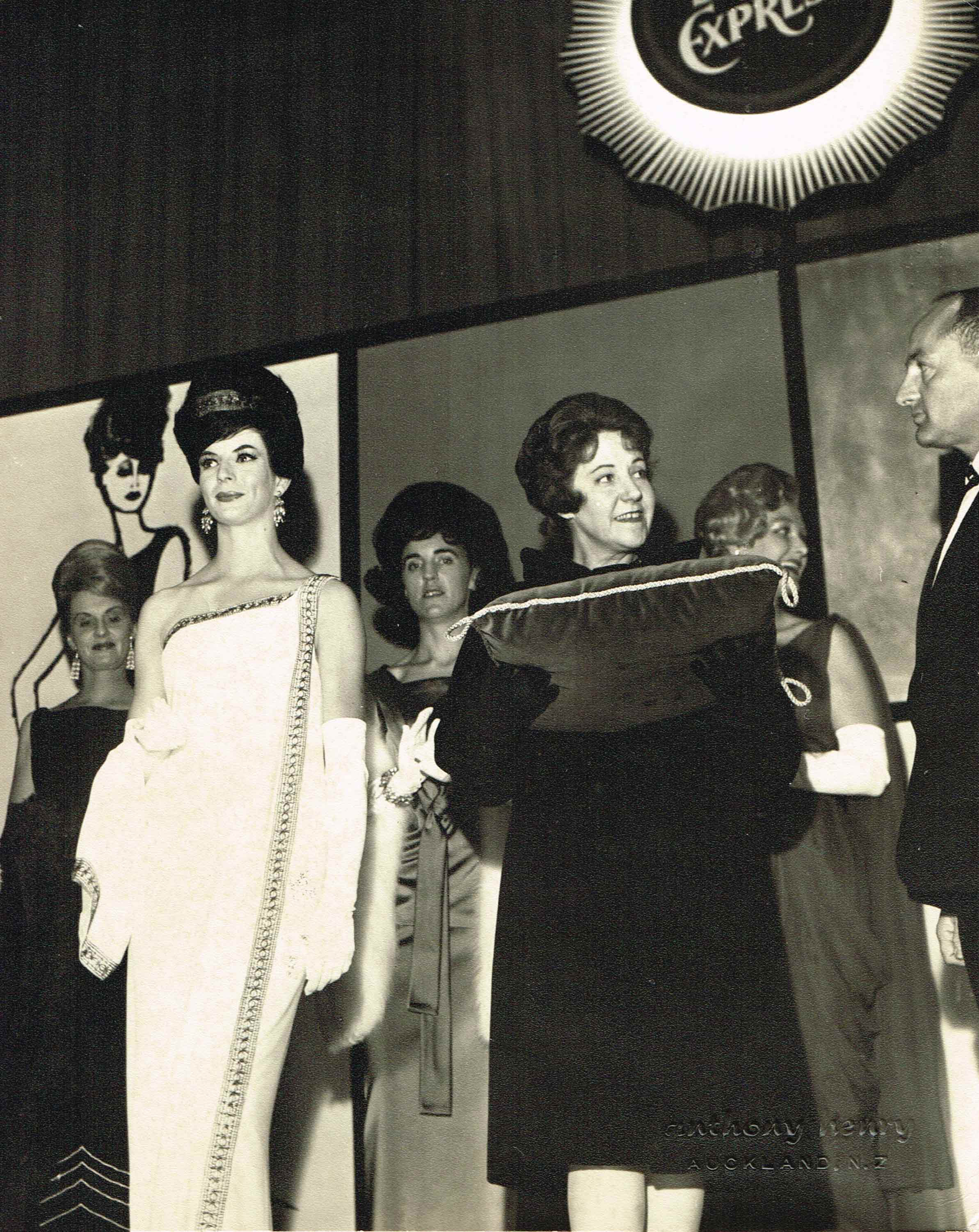 Peggie Wilson established a deportment and modelling school in central Auckland in 1960 with her husband Len. Under her expert guidance, many Academy of Elegance students went on to achieve success in the world of modelling. Peggie won a number of fashion design competitions in Australia and New Zealand. This gown, Venus, won the Golden Shears Fashion Design Competition in 1962.