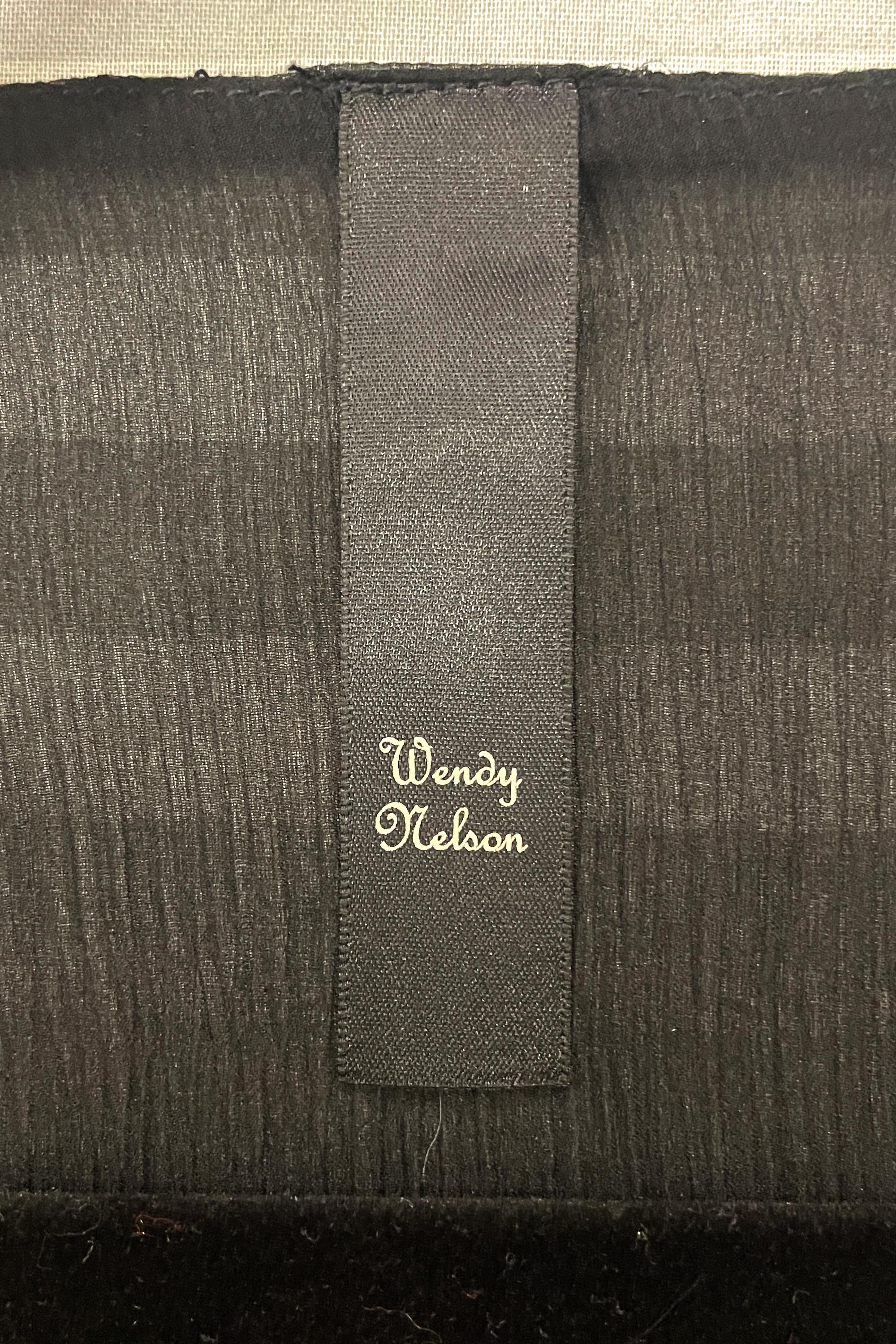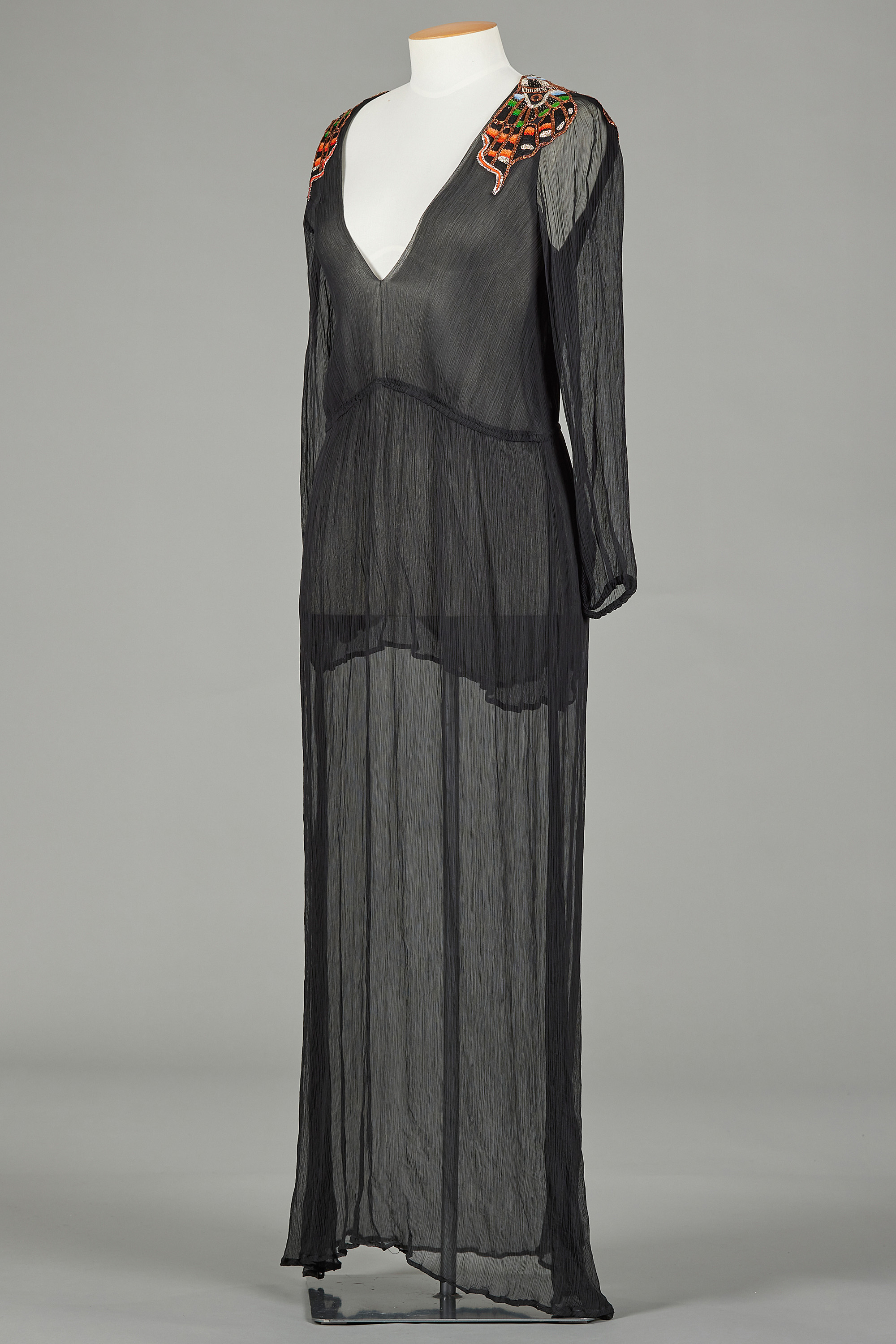 Wendy Nelson black crinkle silk dress with butterfly beading, 2024