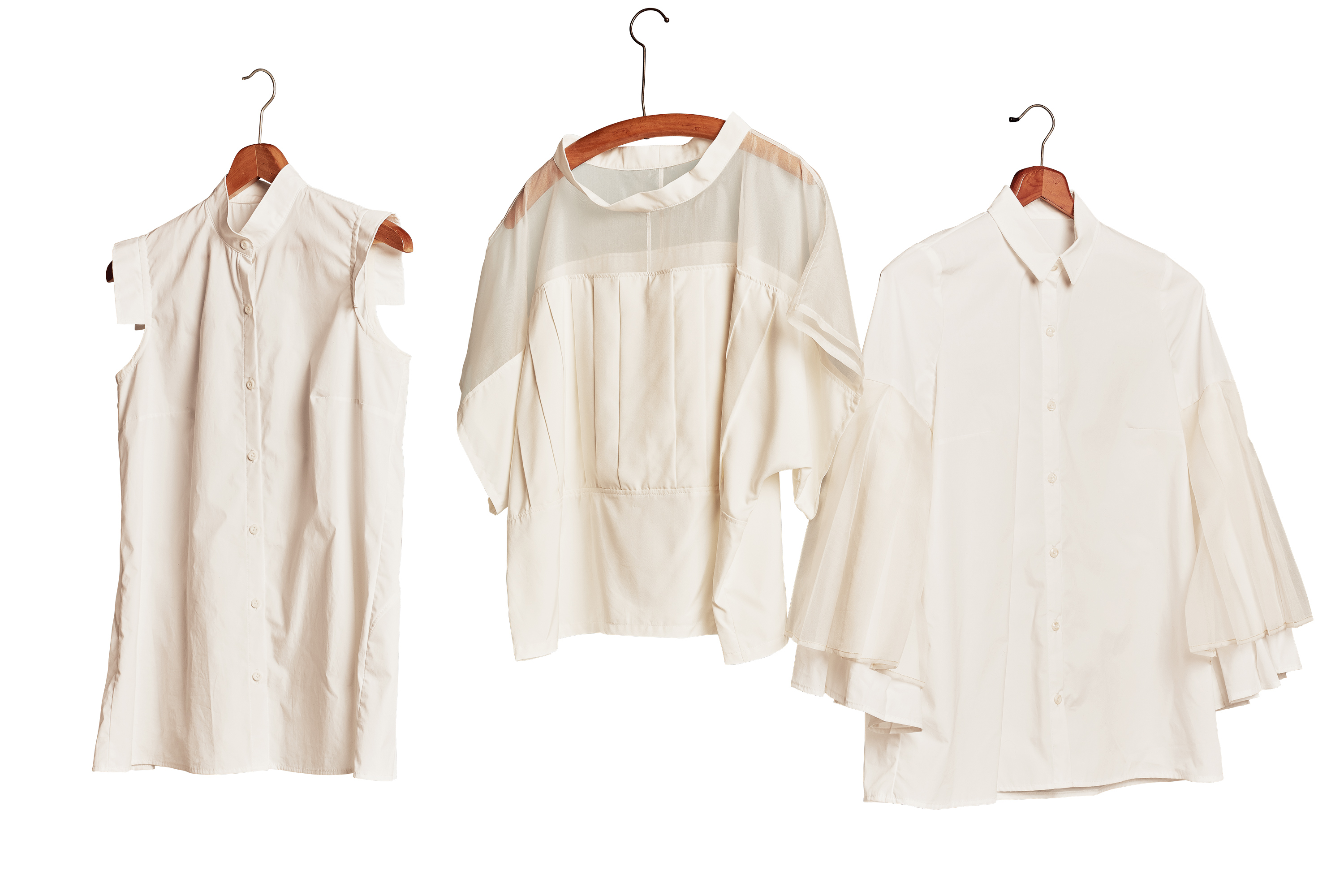 White cotton and silk organza shirts