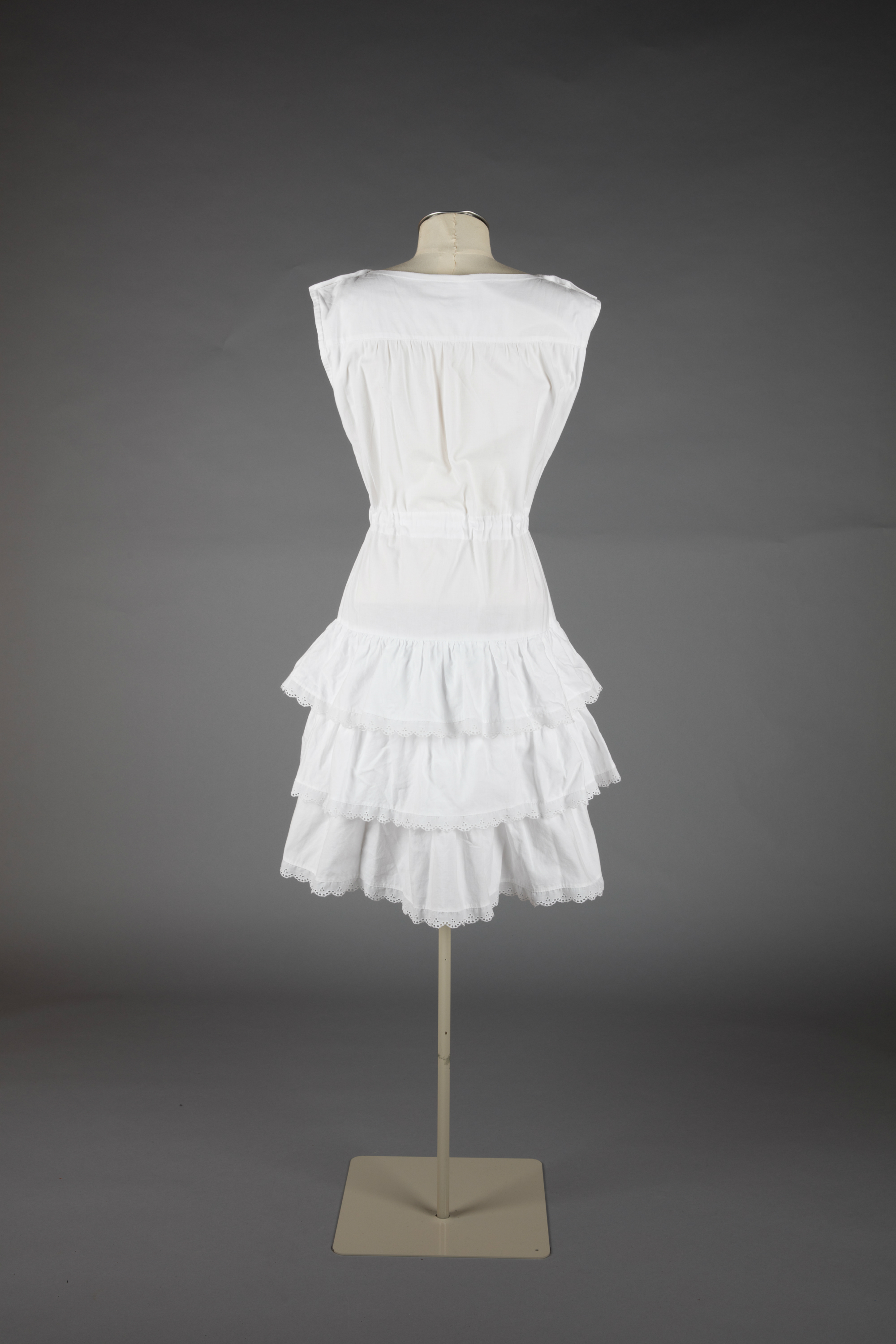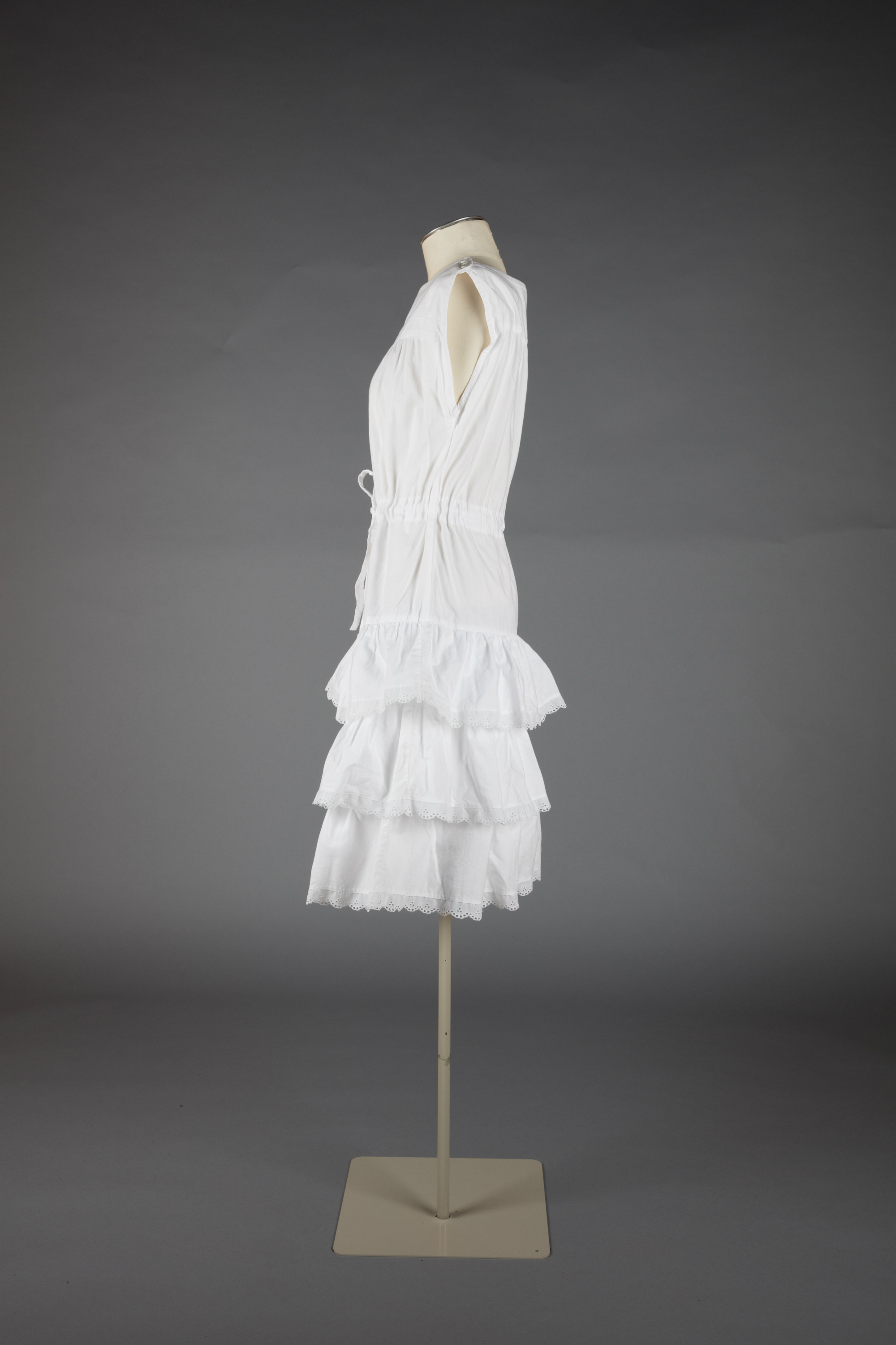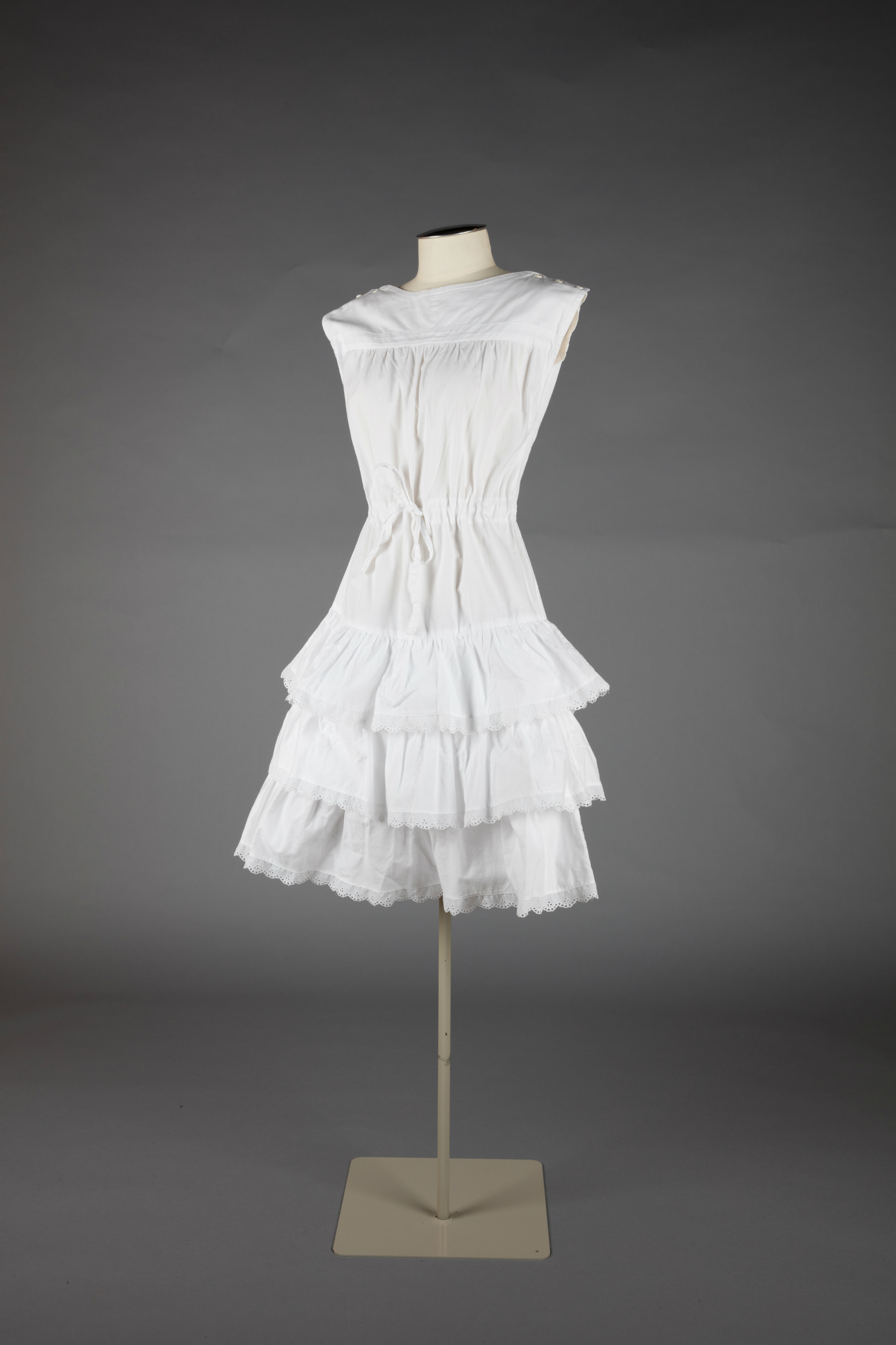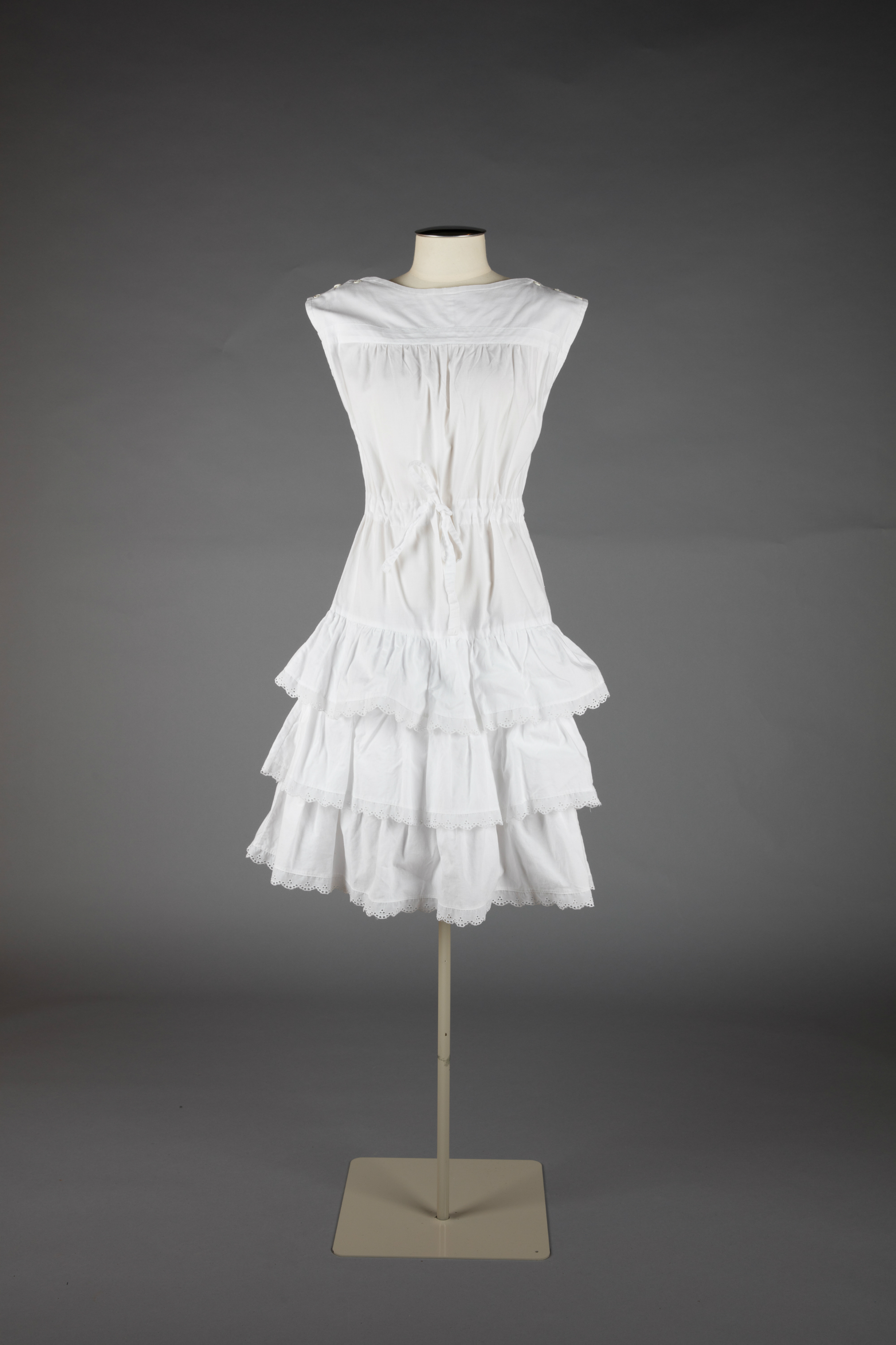 White cotton day dress with broderie anglaise trim