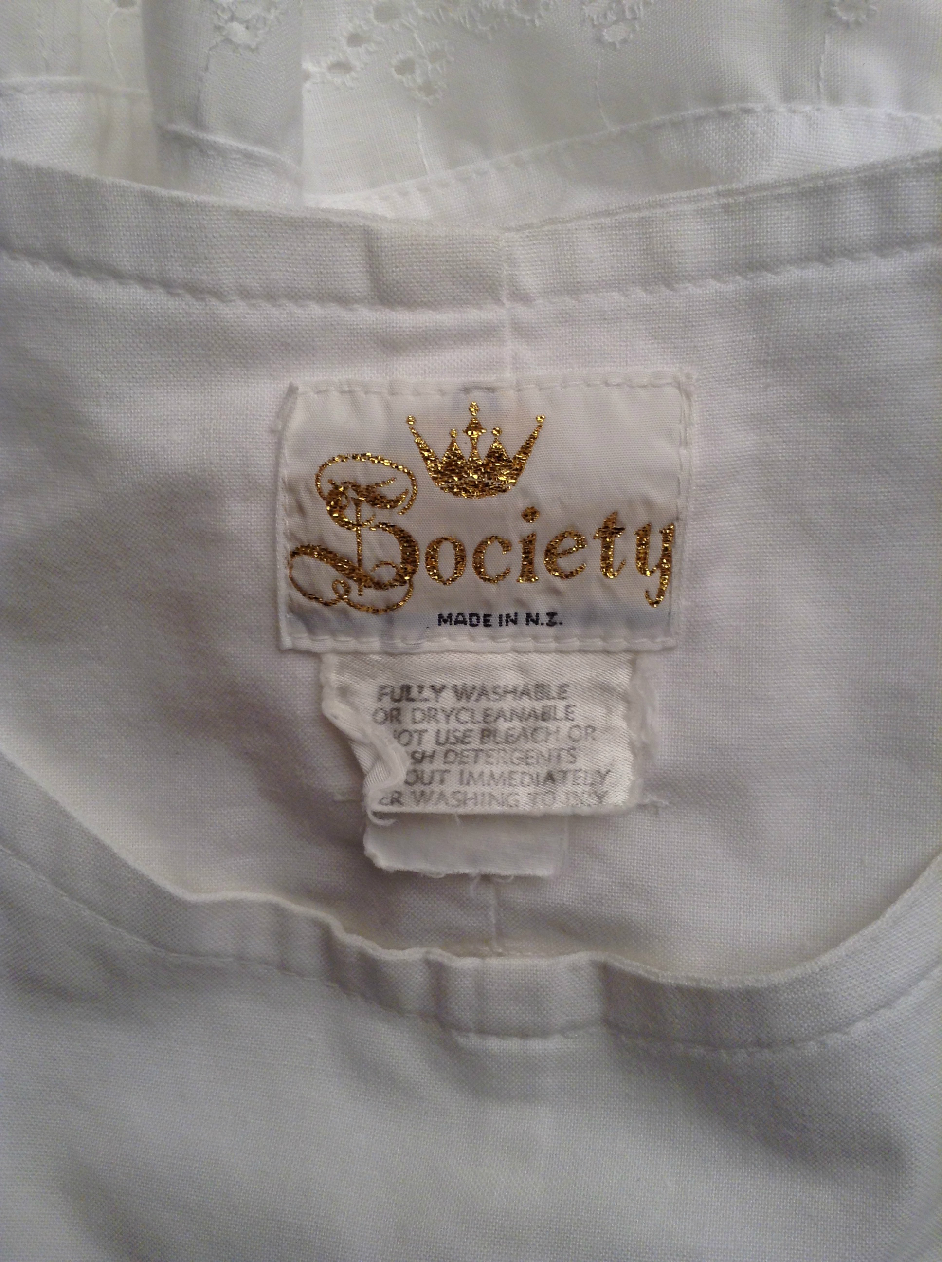 Hilaire Field bought this Society dress in the 1980s in the Hamilton branch of The DIC. She loved the tiers of fabric with broderie anglaise.
