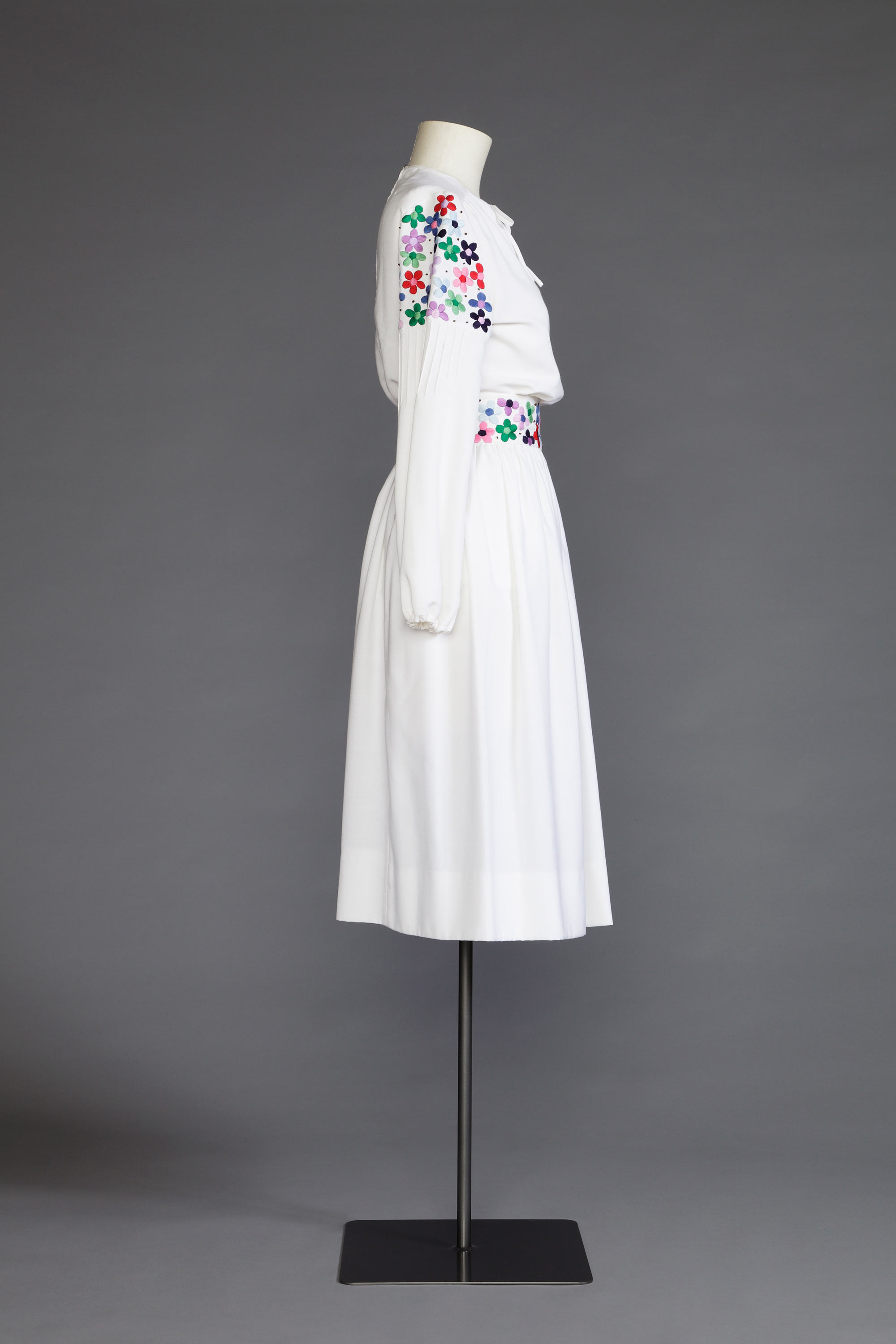 The simple design complements the exquisite and fashionably 1970s folk-themed hand embroidery. Growing up in Germany, Karla had an interest in what people were wearing from an early age and began to make her