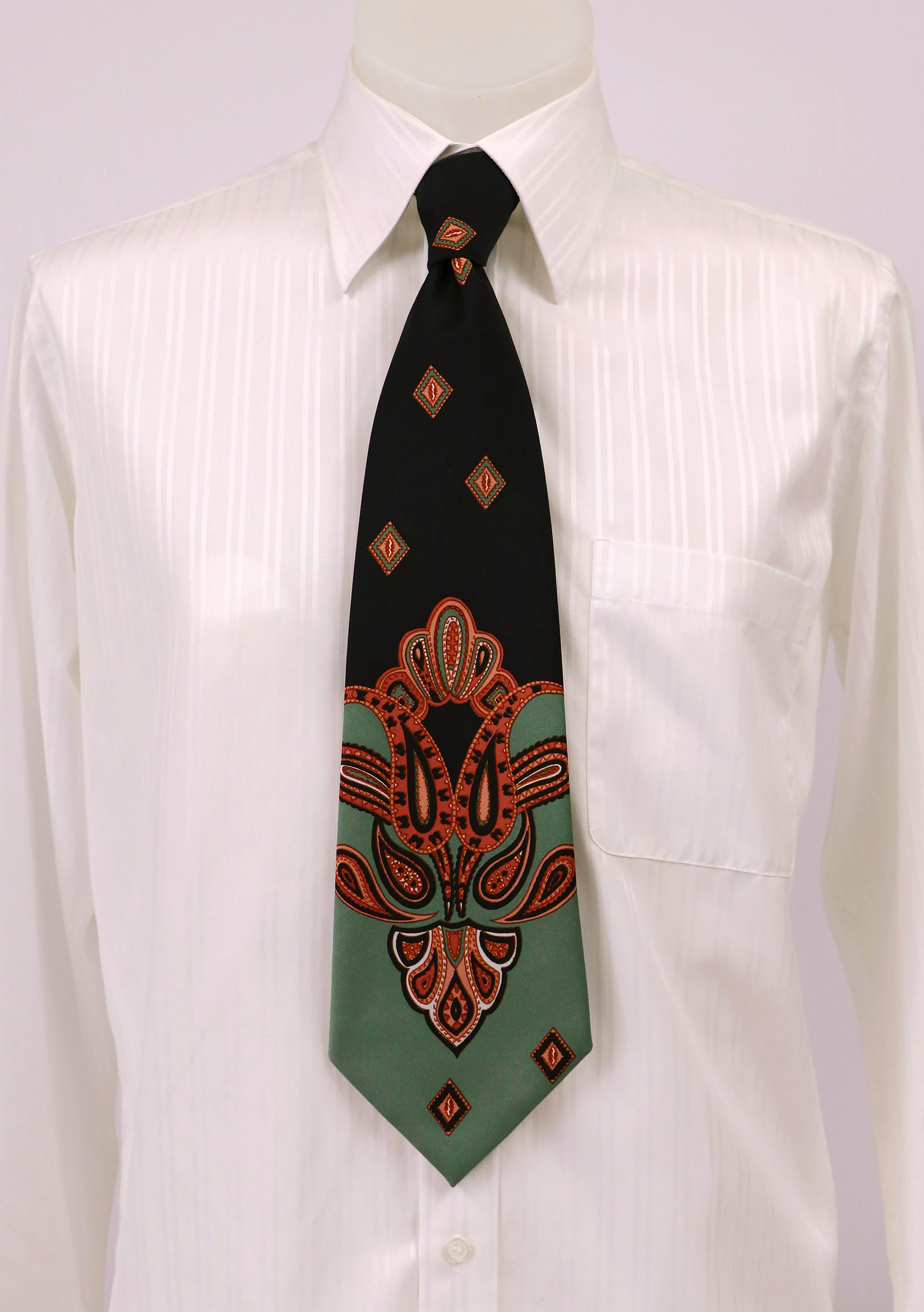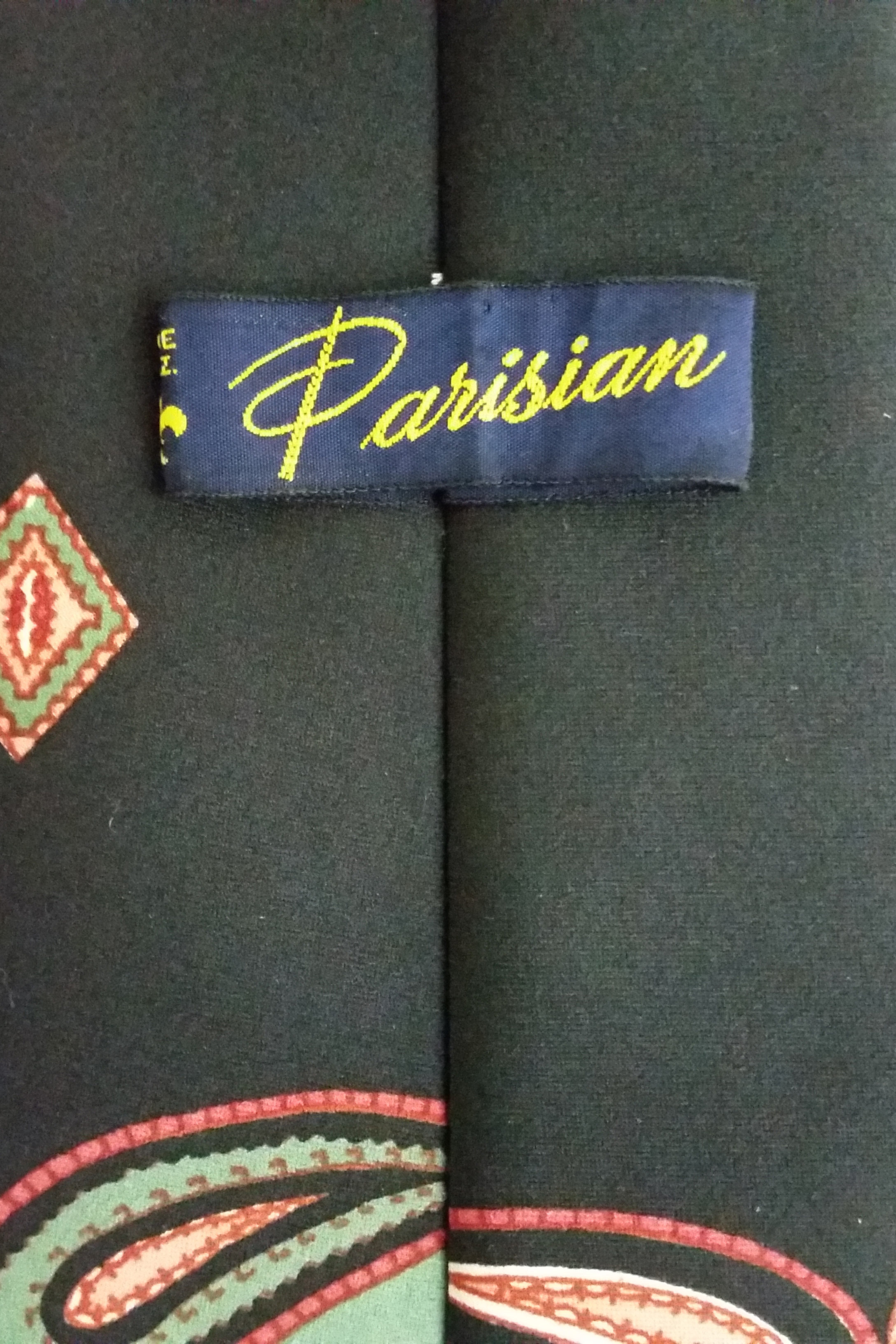 Ties grew wider and wilder as the 1970s progressed. This tie by Parisian features both the bright, heavily patterns of the era, and the width.