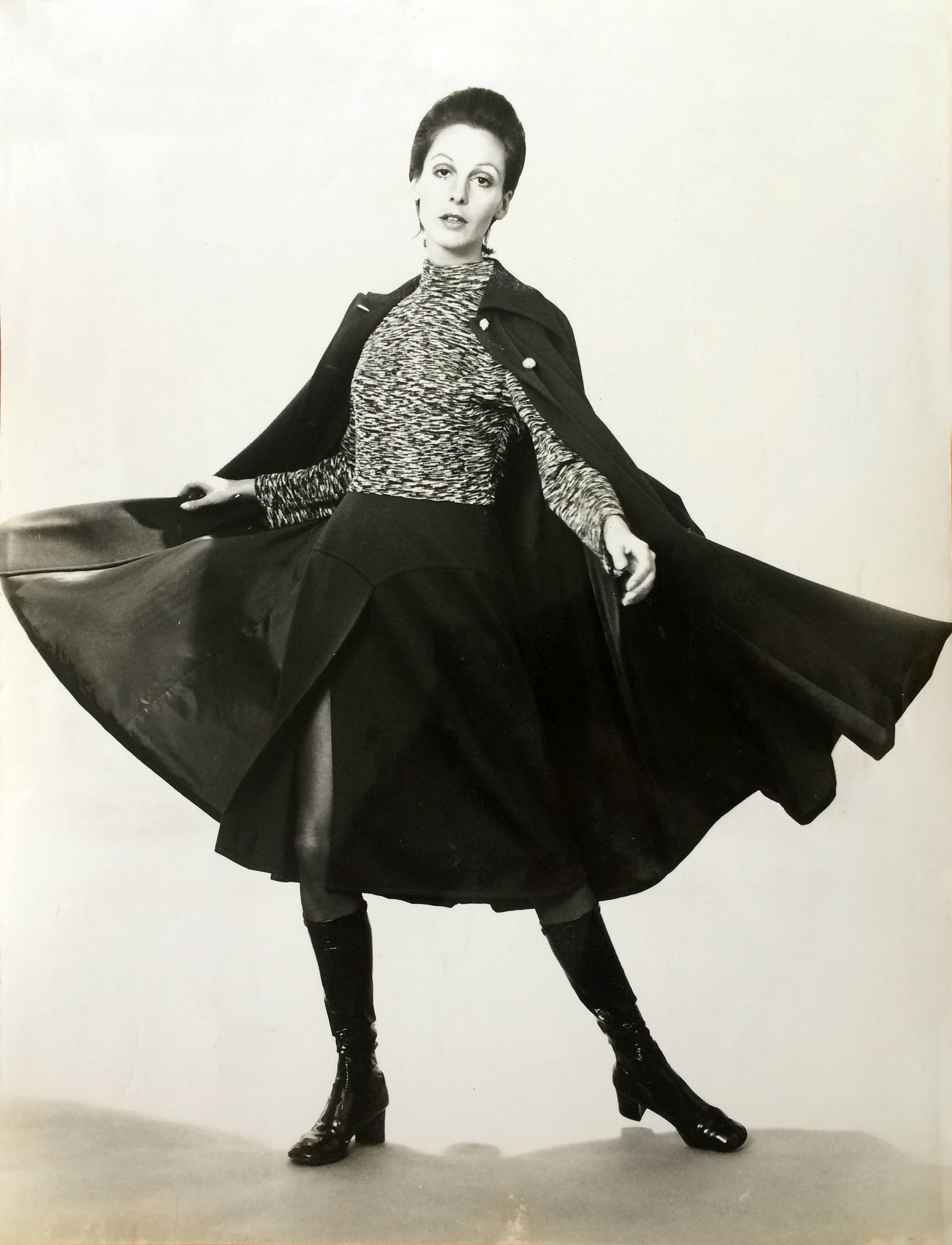 Maurice Mihotich of Miss Deb won the Eve Magazine Fashion Award in 1970 with this ensemble in 1970. "The midi had just come out and we won with a cape, top and midi skirt in brown wool jersey produced by a New Zealand mill." Anne McClurg modelled the winning outfit.
