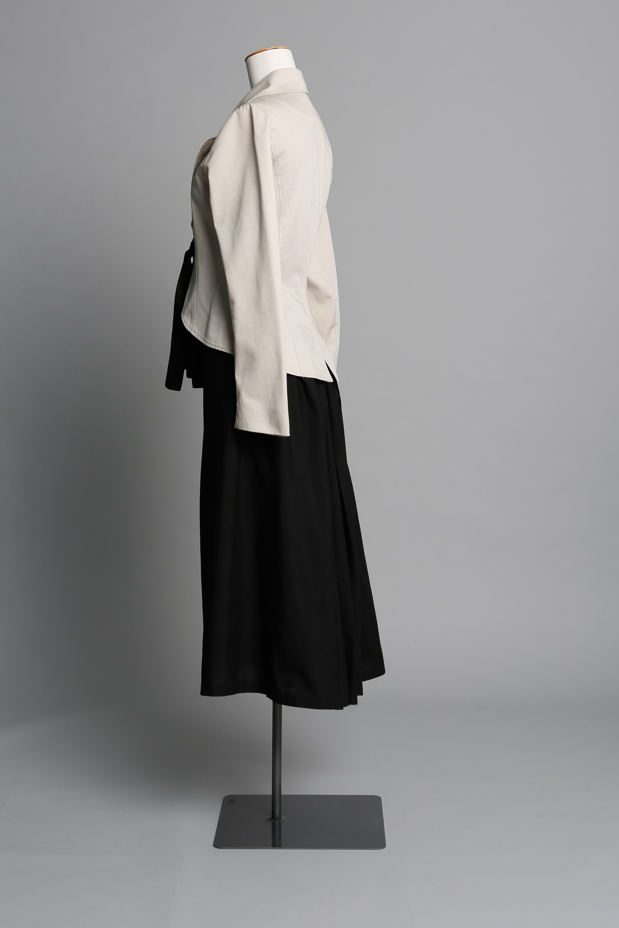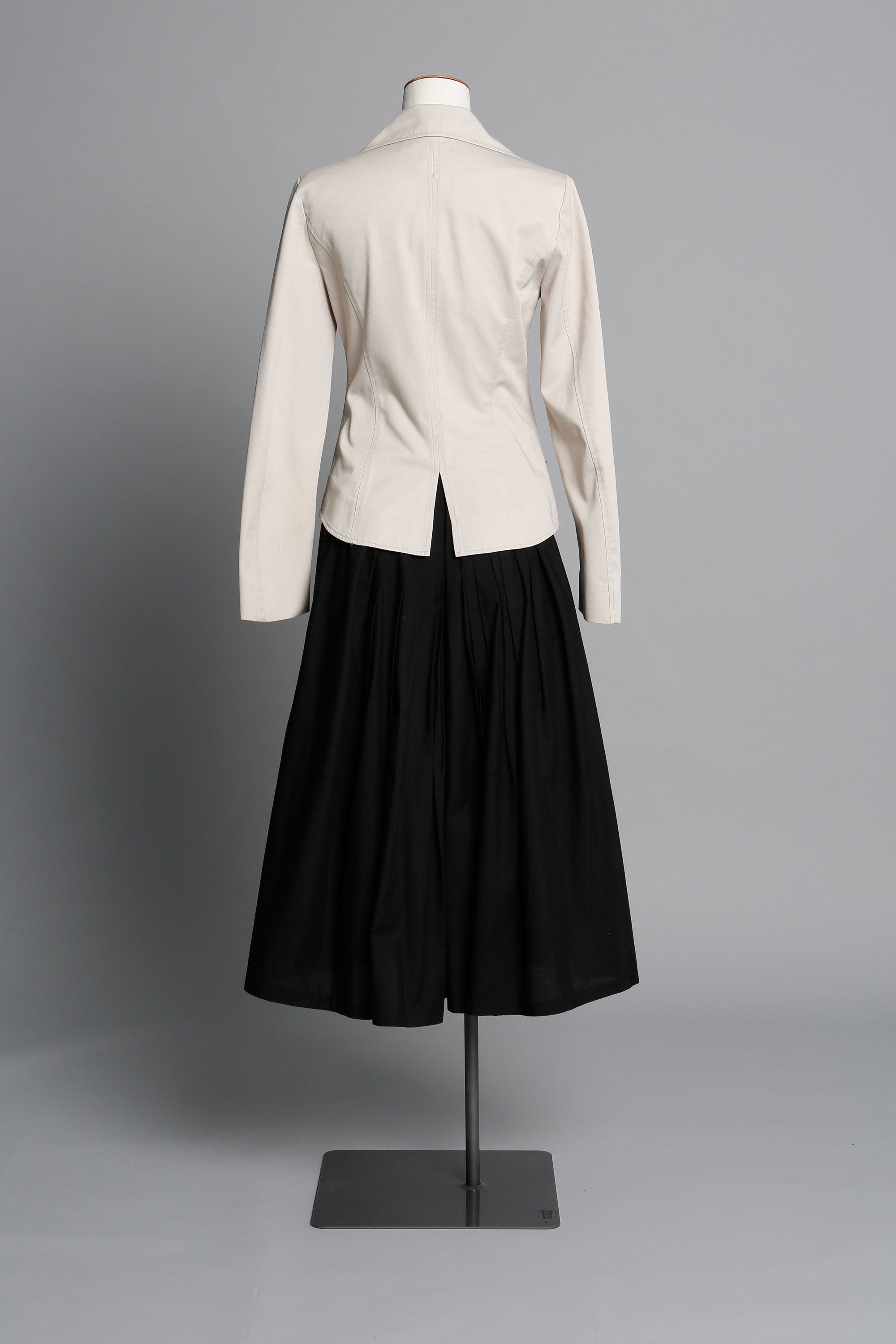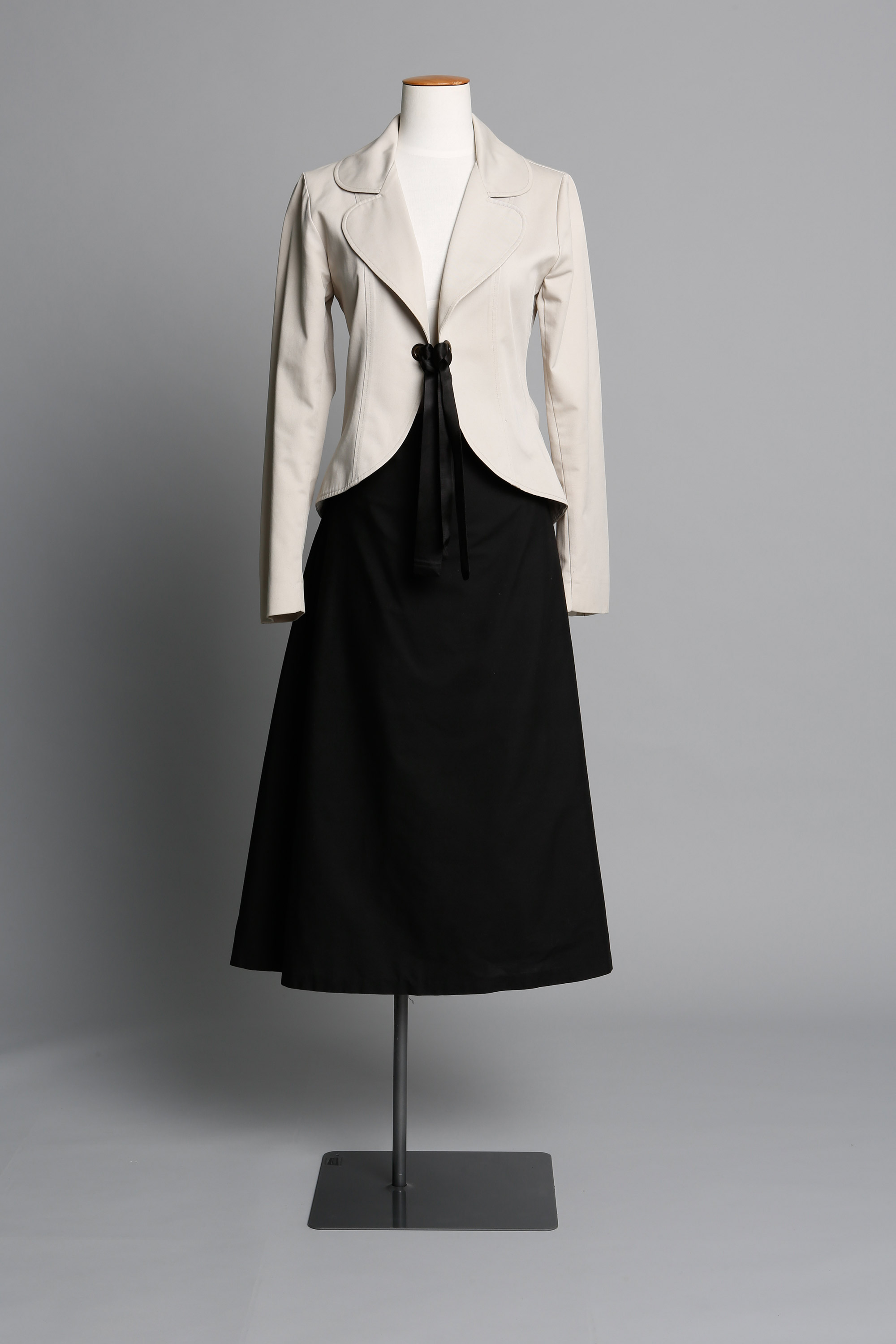 WORLD cream jacket with ribbons & a black skirt, 1997