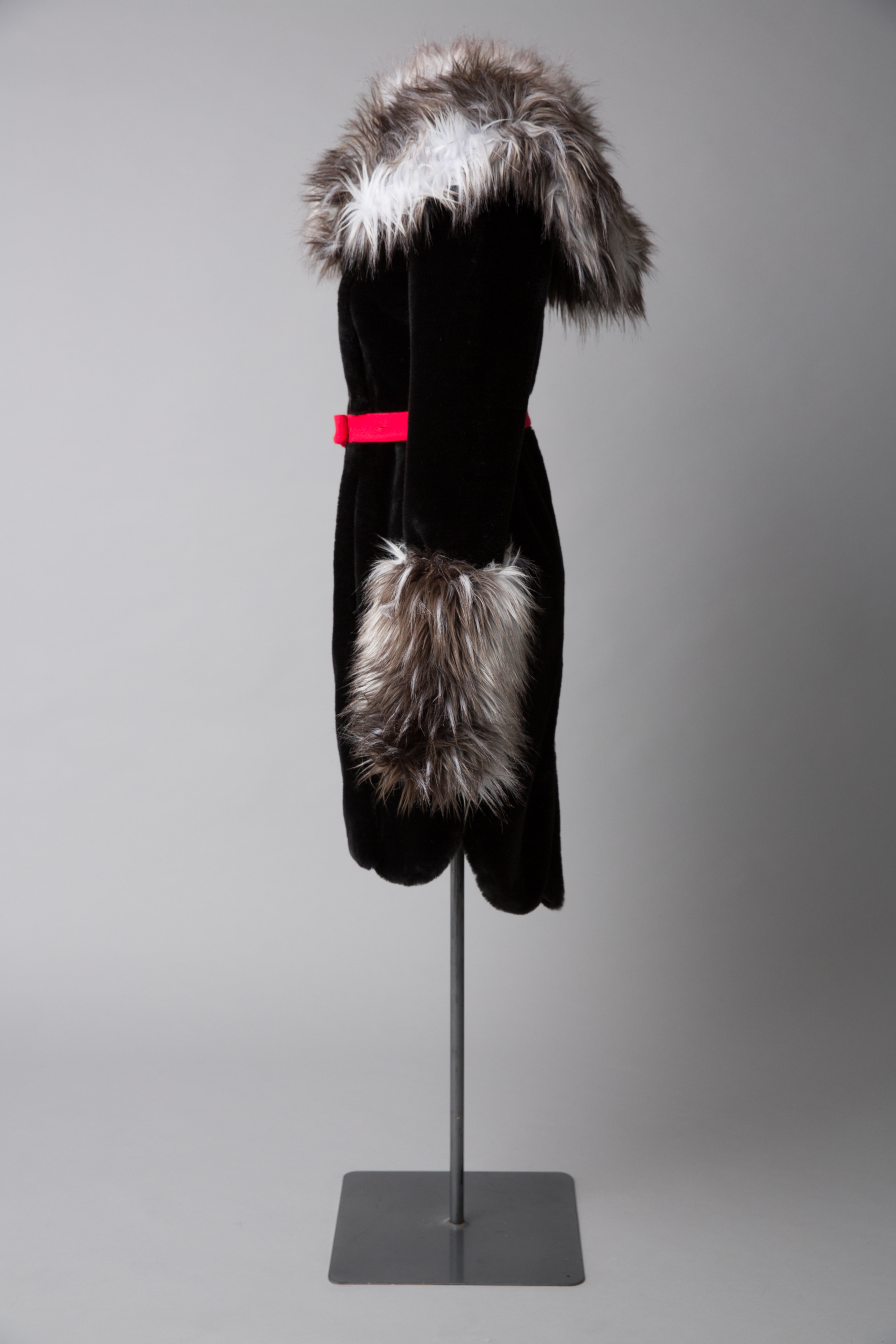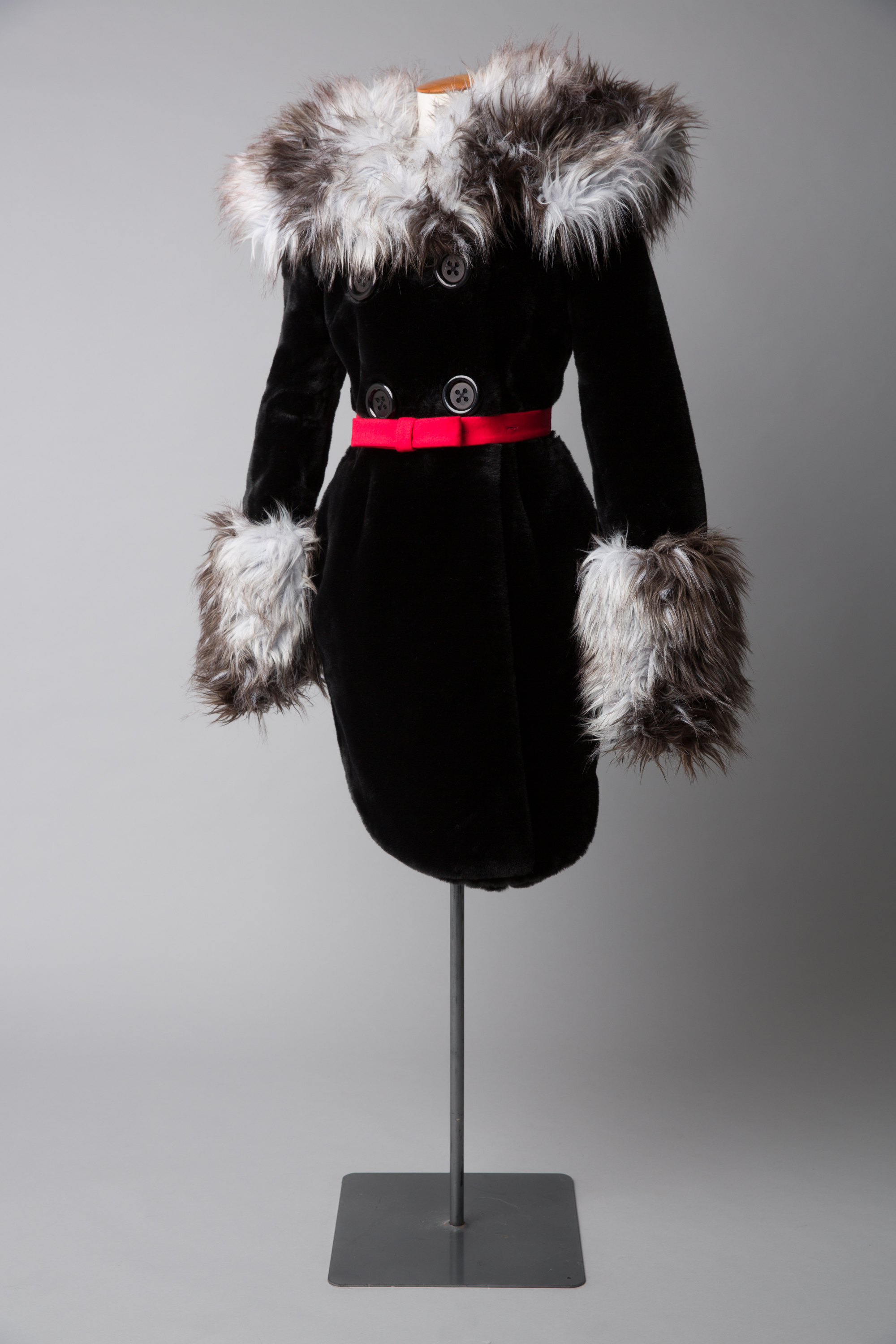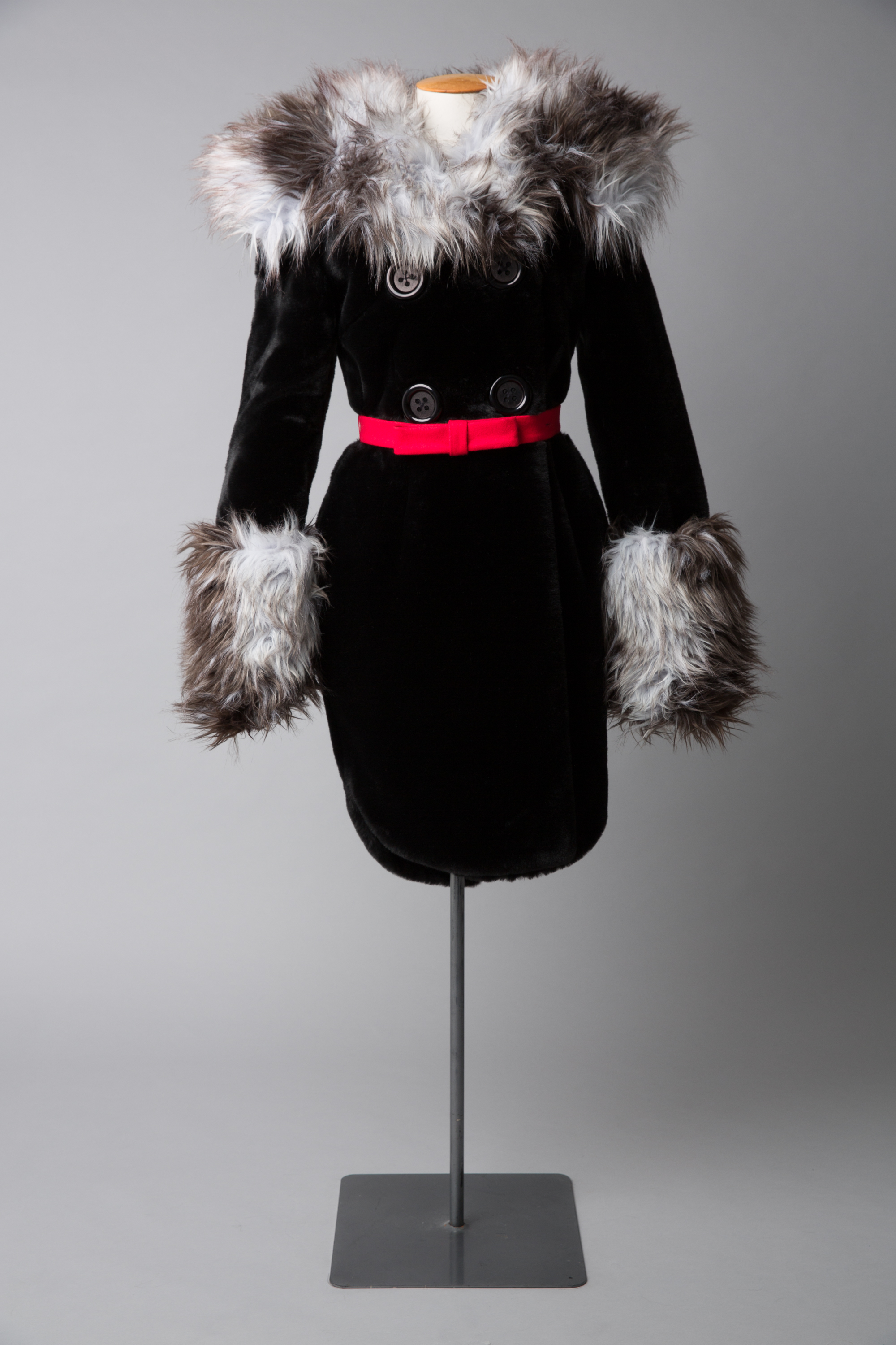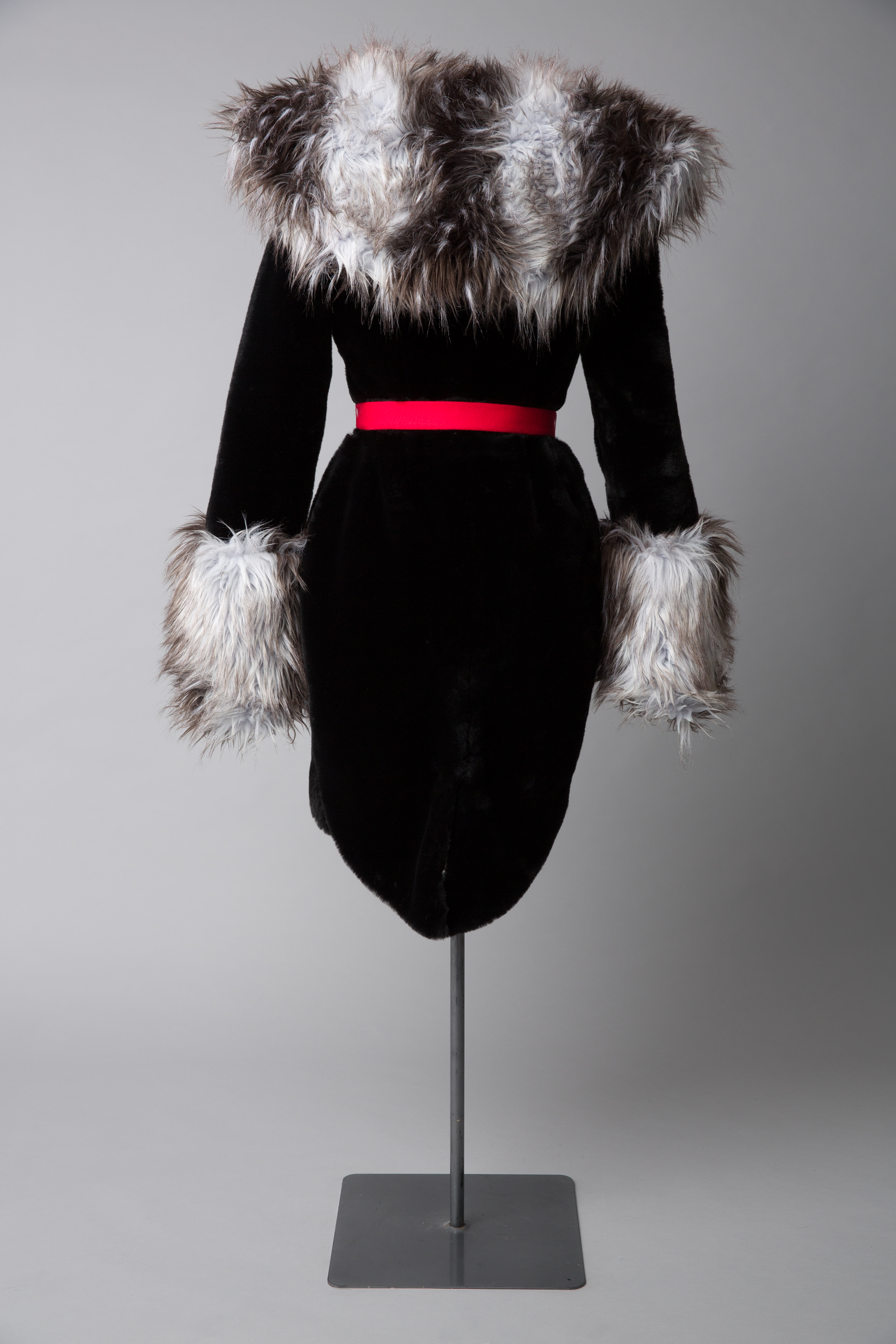 WORLD faux fur coatdress with red felt bow belt, 2011