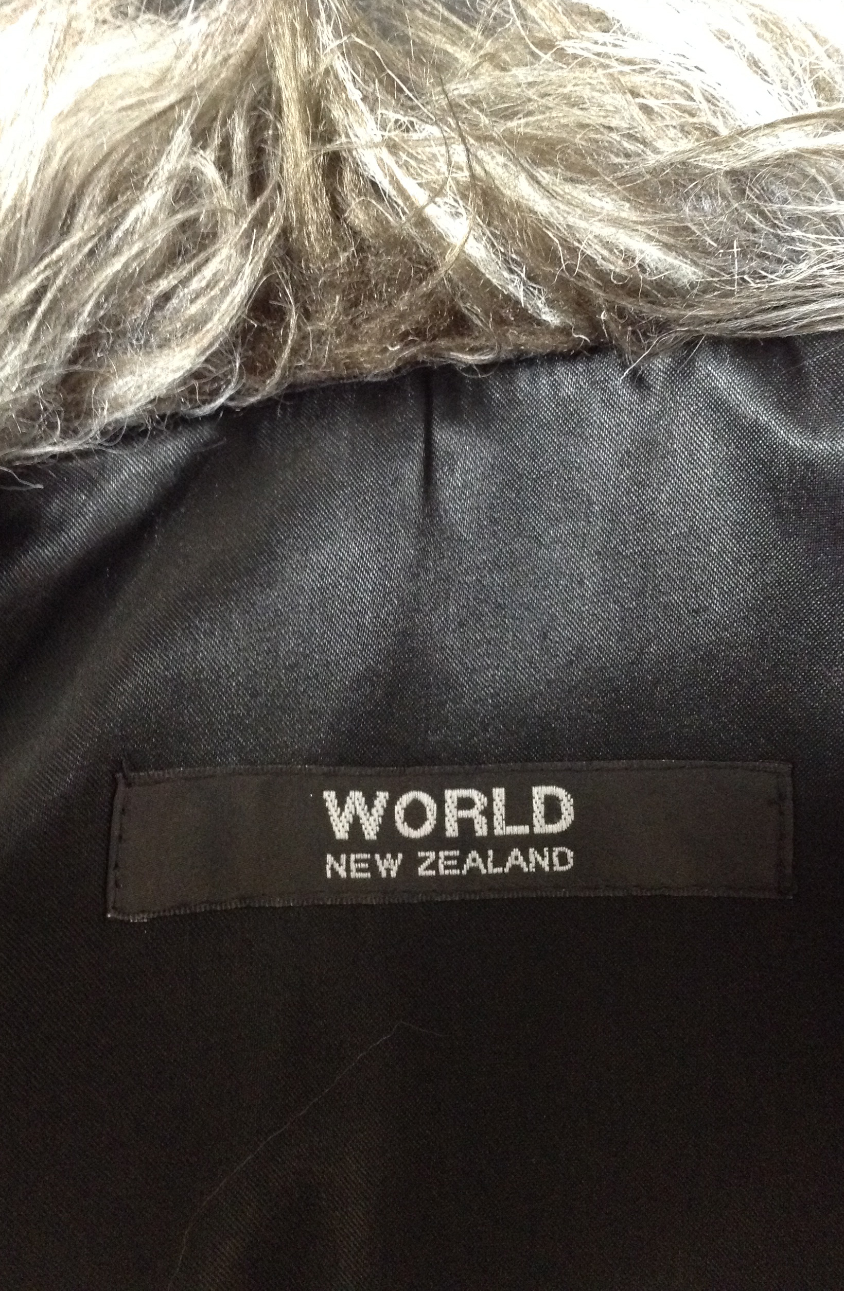 The WORLD label is known for their artistic and avant-garde take on fashion. This coatdress shows their love of fun fabrics such as faux fur and has a bright pop of colour to add interest. It was first show at New Zealand Fashion Week in 2011 as part of the finale for the tv program, New Zealand's Next Top Model.