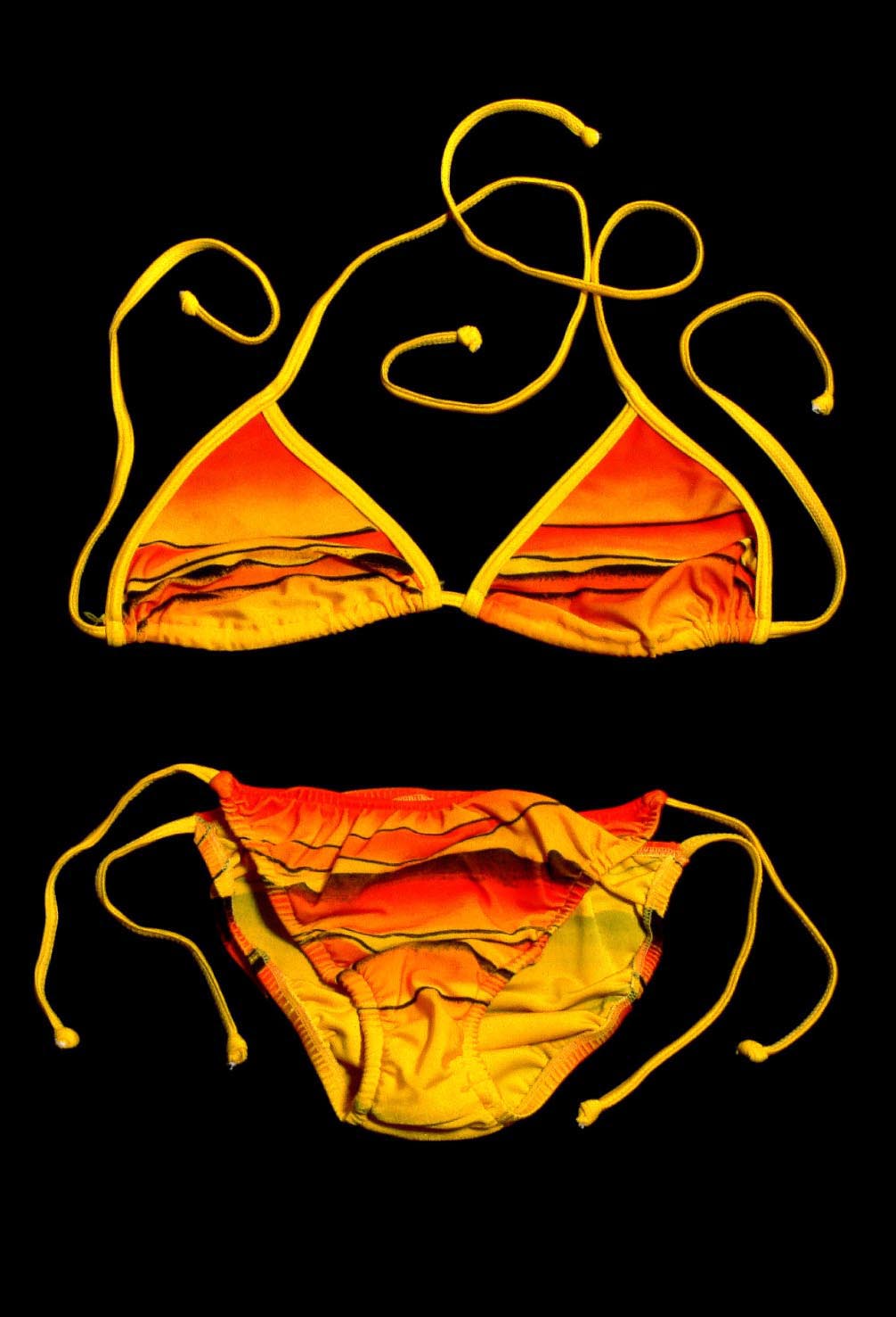 Yellow and orange landscape print bikini
