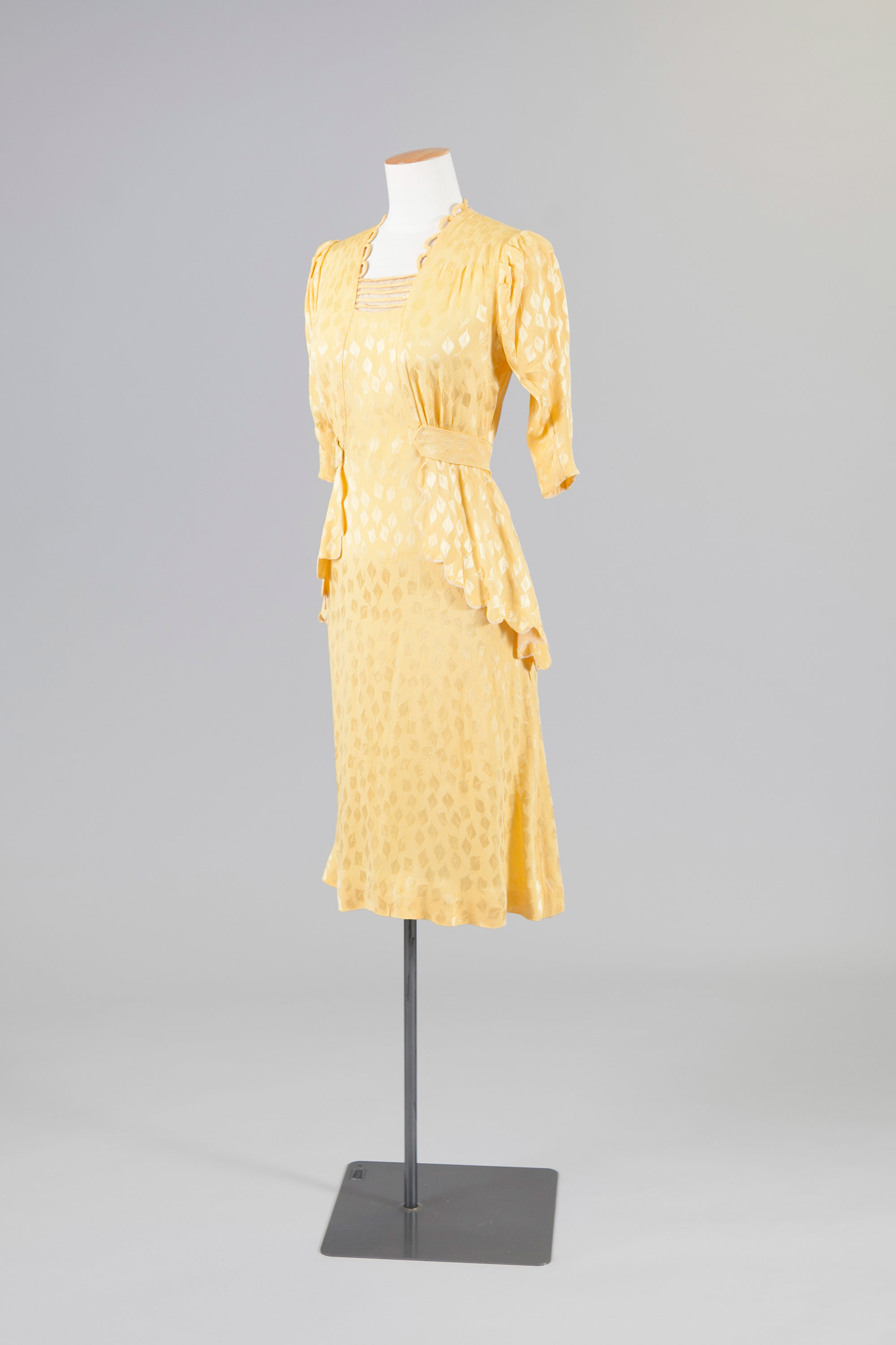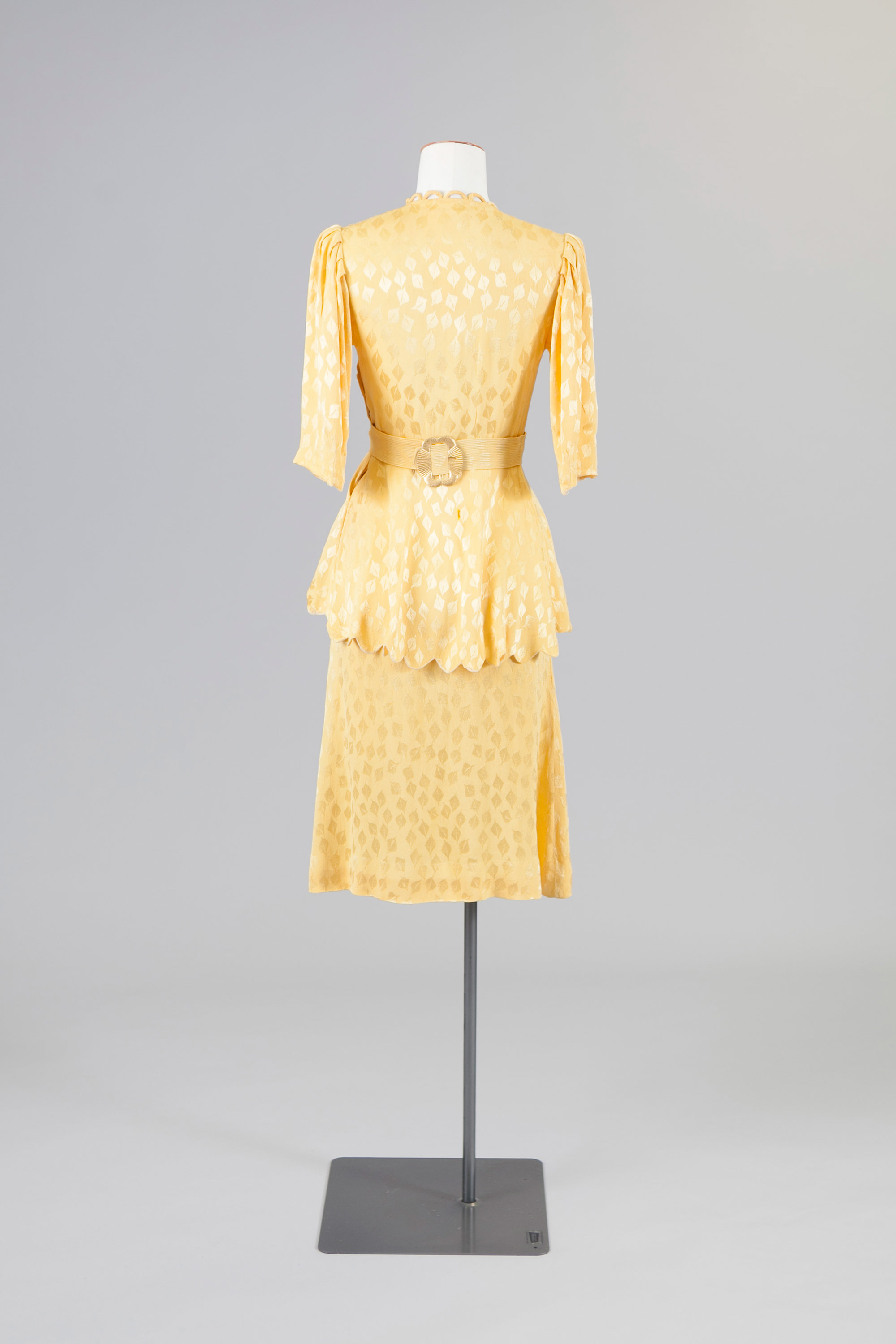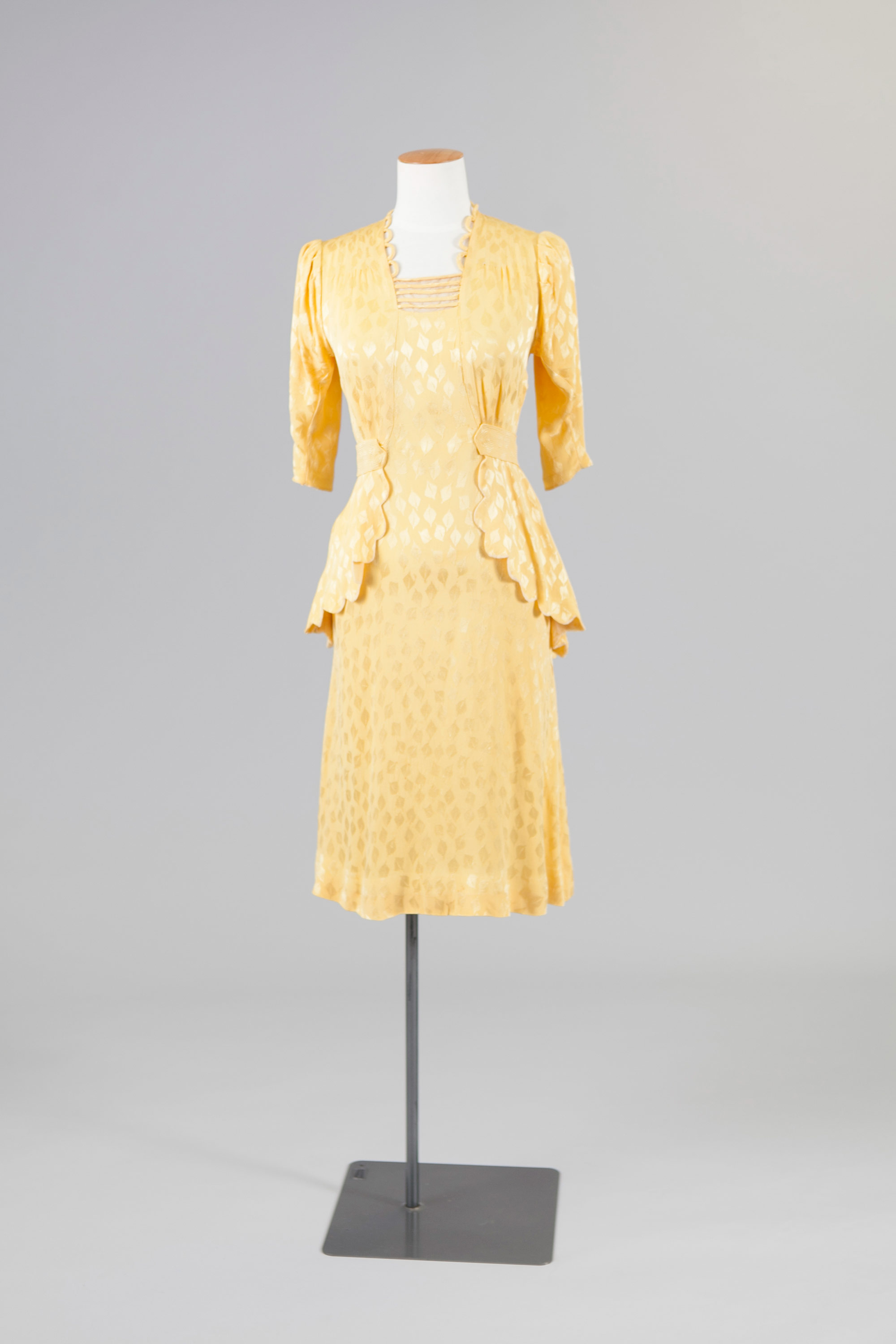 Peplums were popular in the 1940s. Wartime fabric shortages and austerity measures precluded anything too fancy and the addition of a modest peplum made a simply cut garment look less severe.