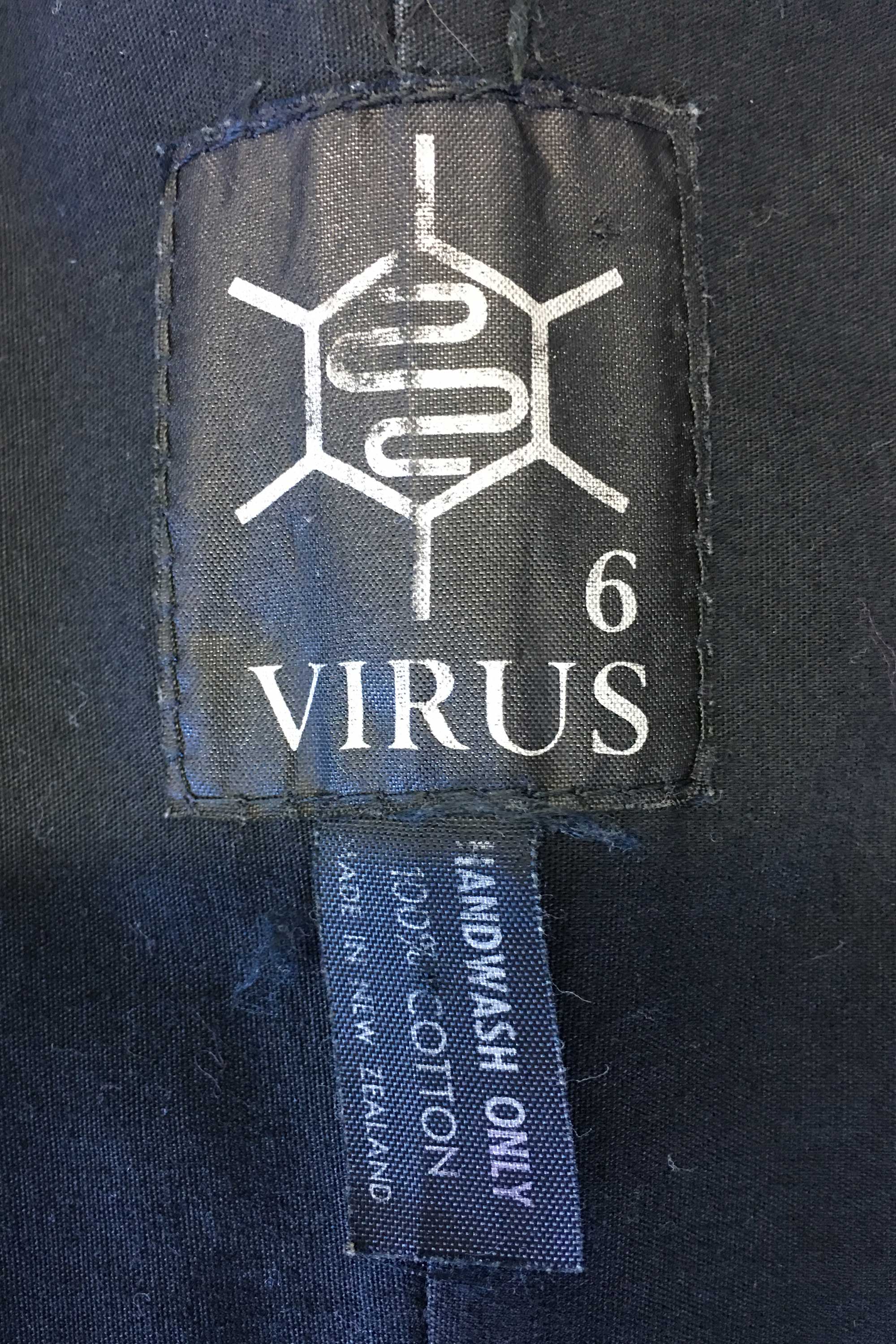 Mike Brookfield and Rik Read started the fashion label Virus in 1986. The printing studio was located in Cross St with the label sold from a nearby upstairs shop that fronted onto Karangahape Road in Auckland. The shop was called Beast and was established by Mike's sister, Alice and Footeprints designer, Adrienne Foote.