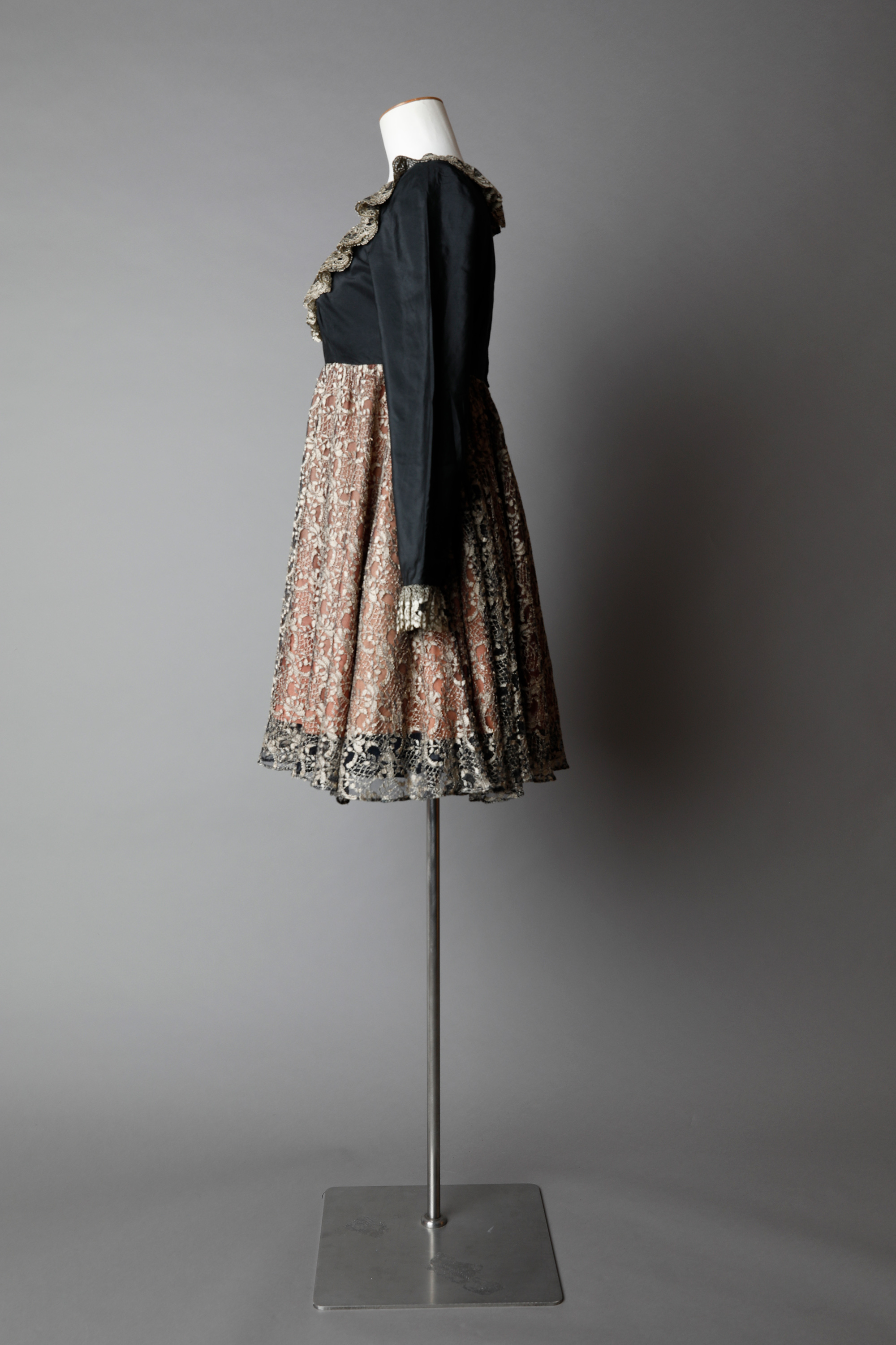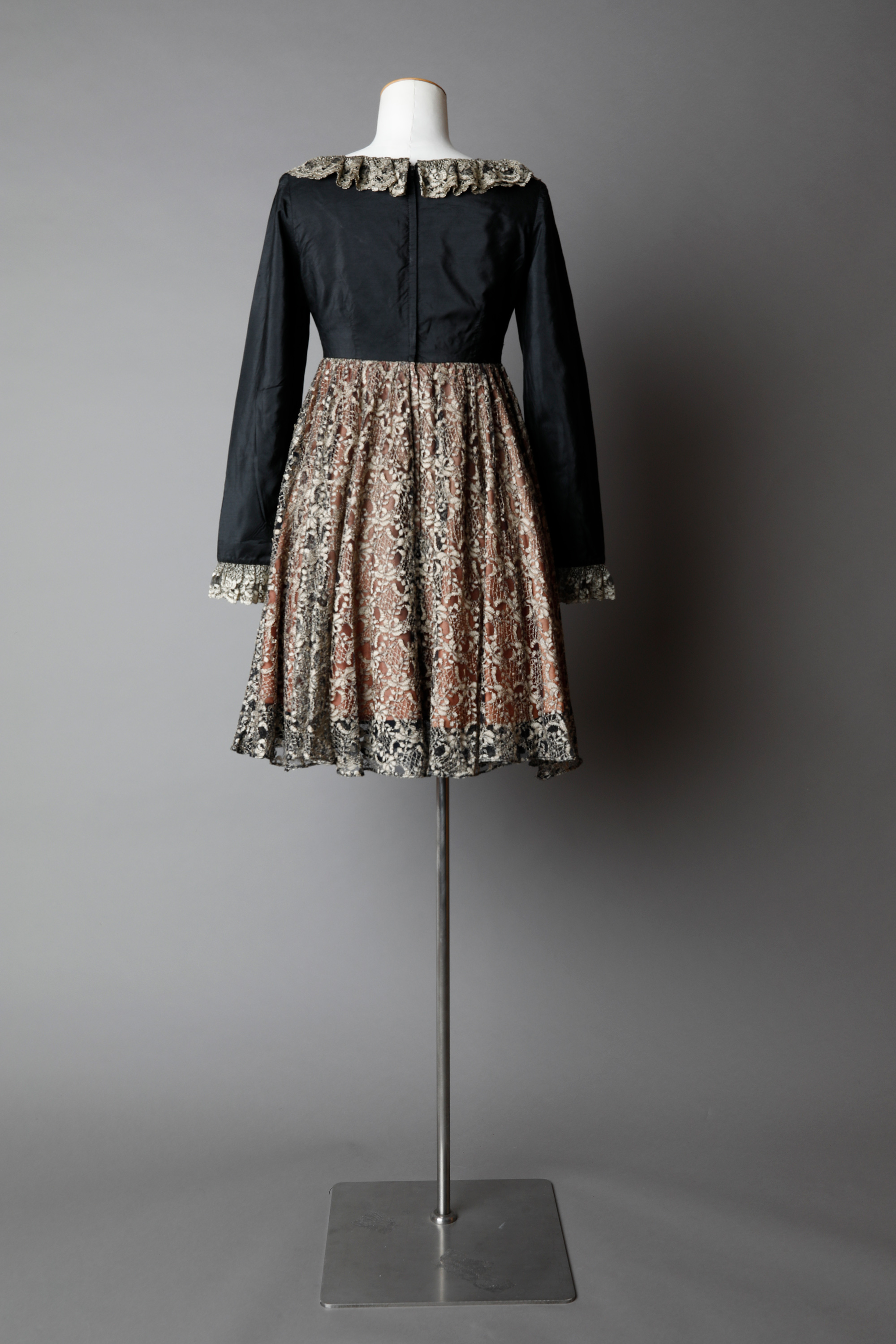 Dress with ruffled neckline & cuffs