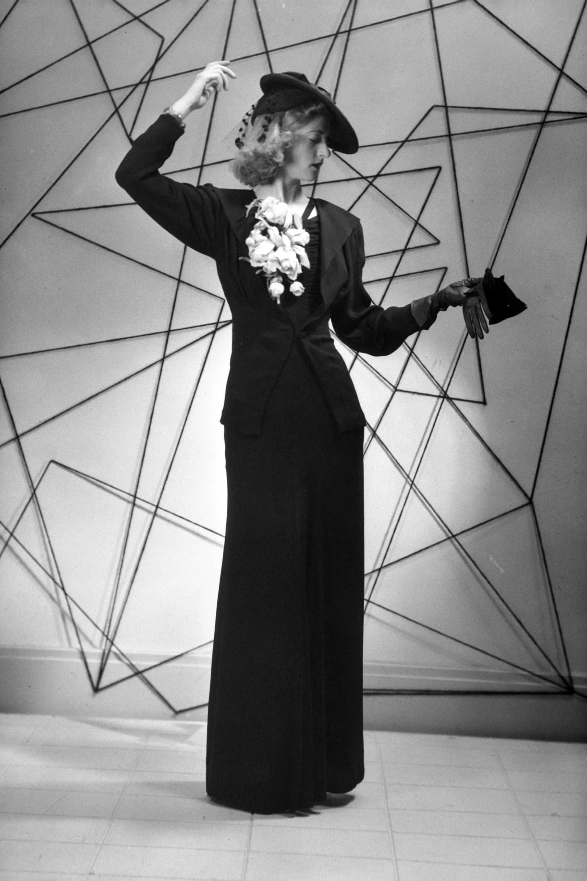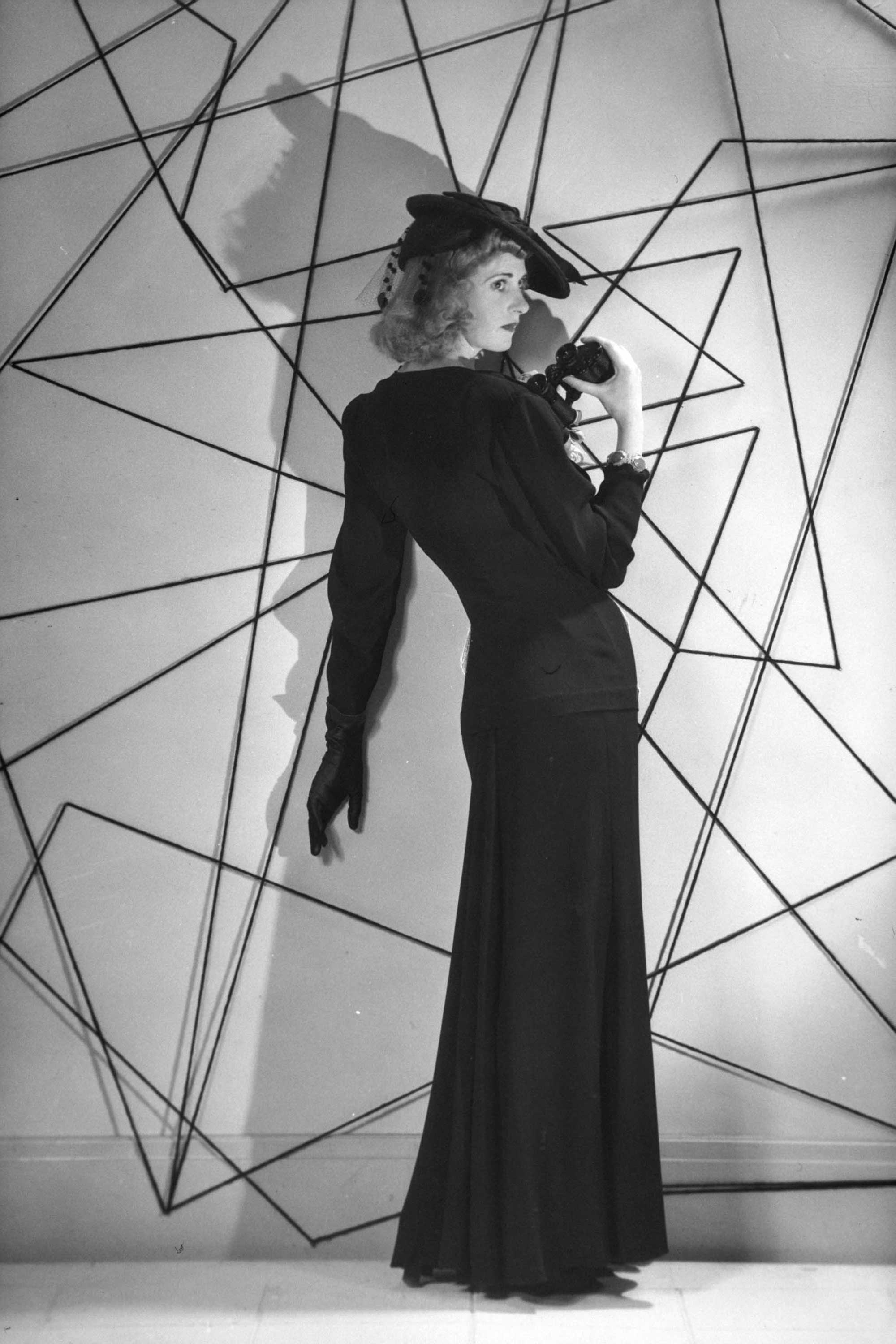 These shots of a Milne & Choyce evening gown exemplify Clifton Firth's use of architecture and graphic imagery, particularly Bauhaus design, in his portraiture photography.