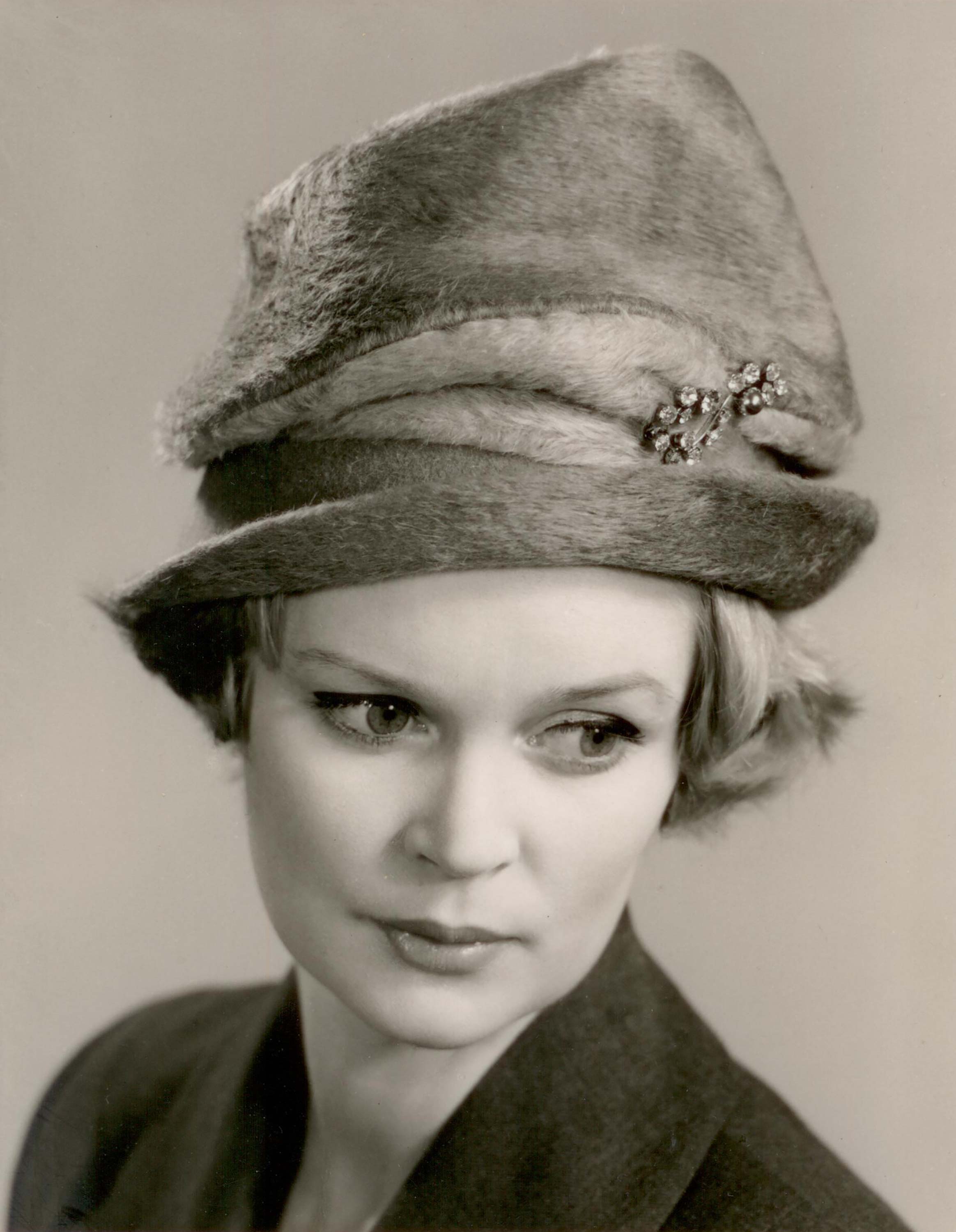 Fur felt model hat with sparkle pin